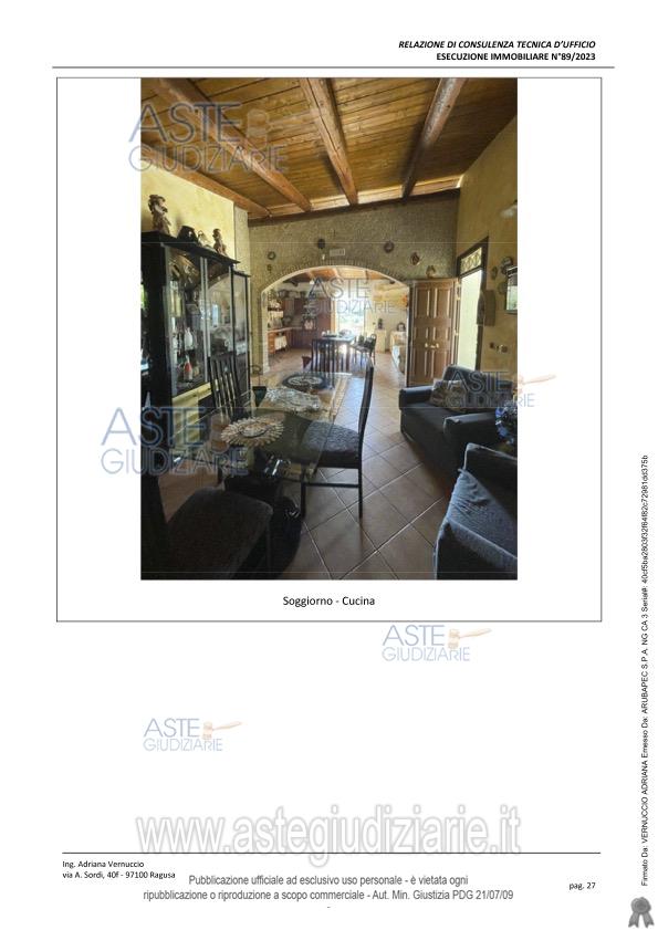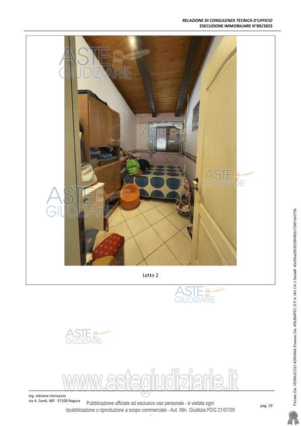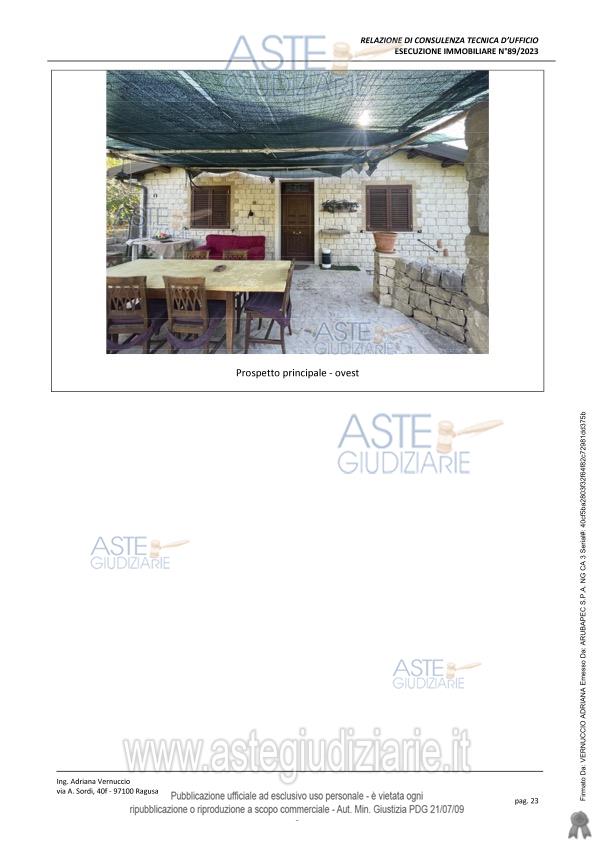 Vendita all'asta Senza incanto, con gara telematica sincrona mista - LOTTO UNICO: Lotto unico costituito da un fabbricato a piano terra, di superficie lorda di 91 mq, consistenza 5 vani e suerficie catastale 132 mq. Prezzo base € 70.500,00 (offerta minima € 52.875,00). Data vendita 22/05/2026 ore 16:30. Giudice Antonio Pianoforte. Professionista delegato alla vendita Avv. Giovanna Floriana Pelligra - Email "studiolegalepelligra@gmail.com". Custode Giudiziario Avv. Giovanna Floriana Pelligra - Email "studiolegalepelligra@gmail.com"; Tel. 0932865137. Rif. Tribunale di Ragusa - Espropriazione immobiliare (cartabia) n. 89/2023
