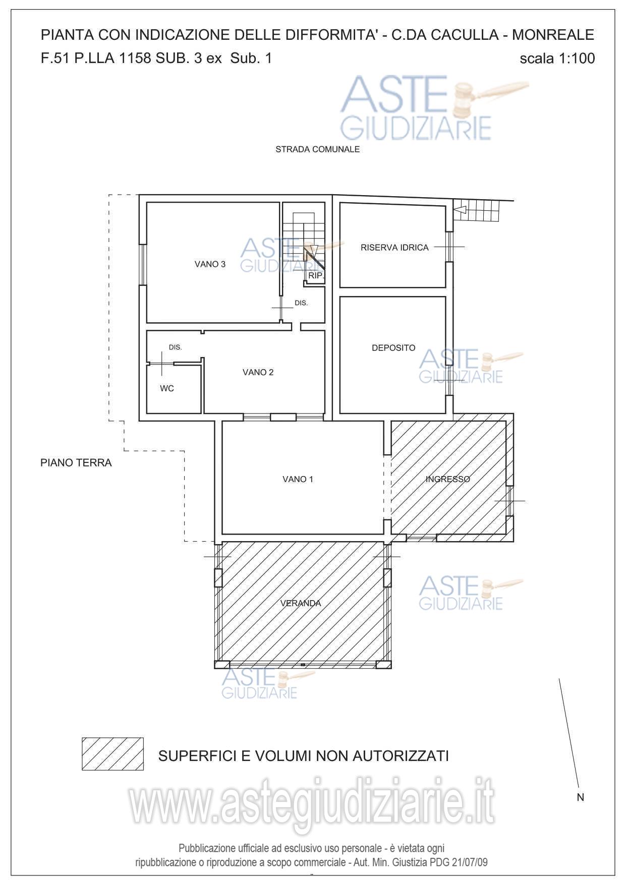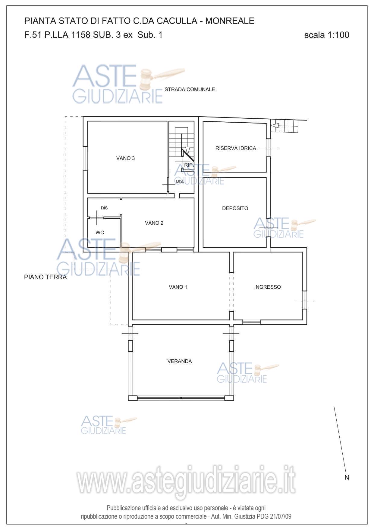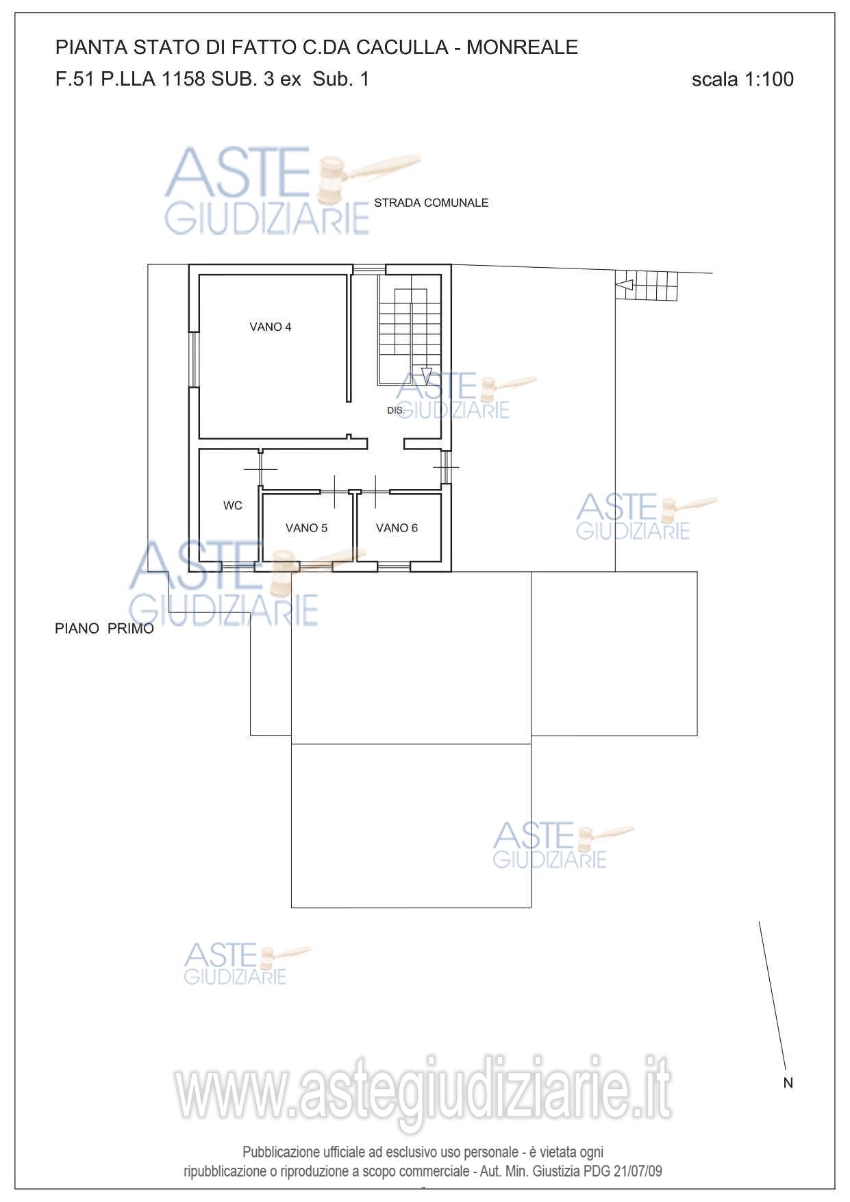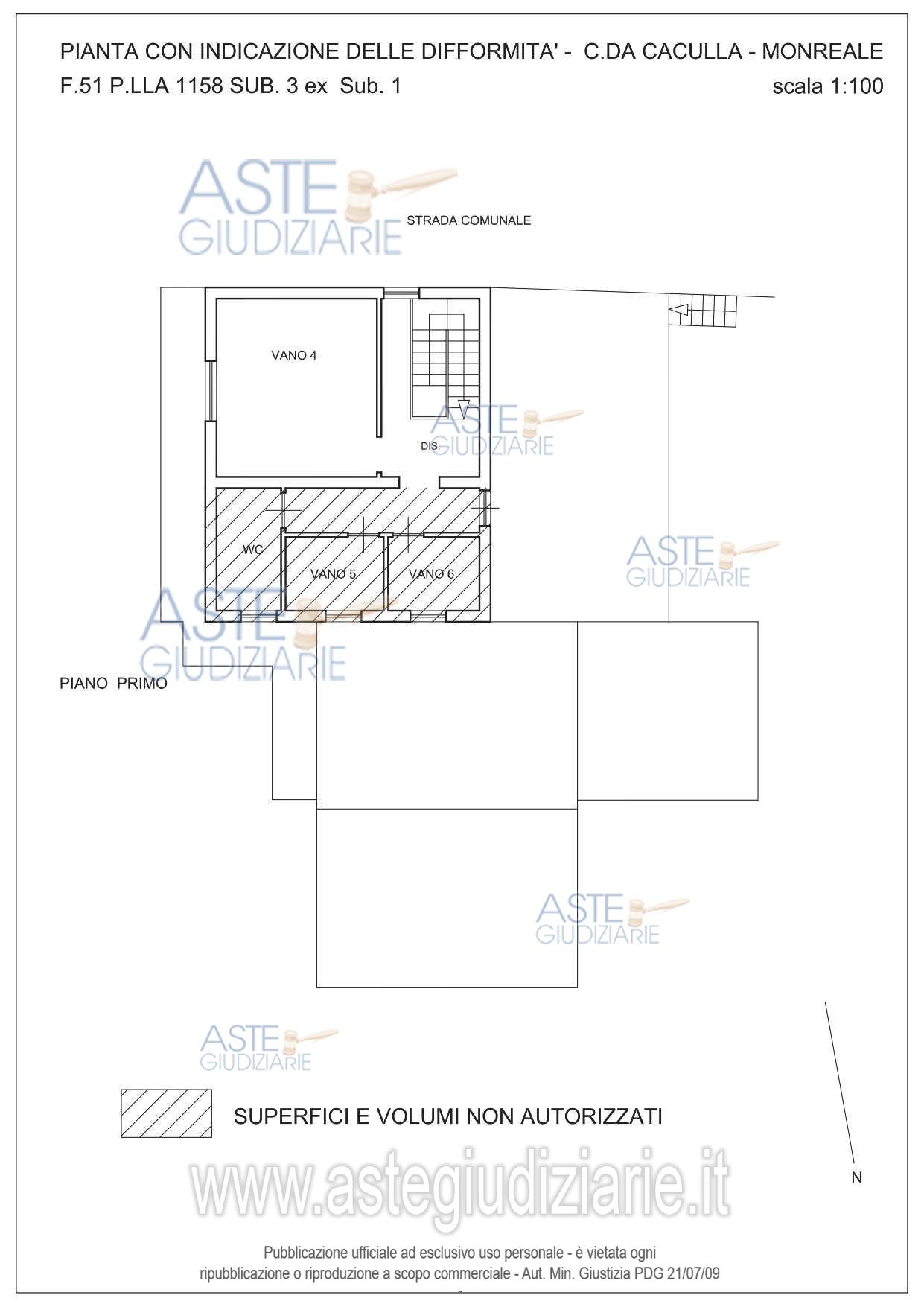 Vendita all'asta Senza incanto, con gara telematica sincrona mista - LOTTO UNICO: fabbricato monofamiliare, oggi unità collabente classificato nella categoria catastale F/2, ubicato in Monreale (PA), Contrada Caculla s.n.c., piano terra e piano primo con appezzamento di terreno limitrofo, destinato catastalmente a vigneto, oggi non coltivato e ricoperto da vegetazione spontanea, mq 780. Prezzo base € 8.800,00 (offerta minima € 6.600,00). Data vendita 07/05/2026 ore 10:30. Giudice Fabrizio Minutoli. Professionista delegato alla vendita Avv. Maurizio Pizzuto - Email "pizzuto.maurizio@libero.it"; Tel. 091362563. Custode Giudiziario Avv. Maurizio Pizzuto - Email "pizzuto.maurizio@libero.it"; Tel. 091362563. Rif. Tribunale di Palermo - Esecuzione immobiliare post legge 80 n. 115/2020