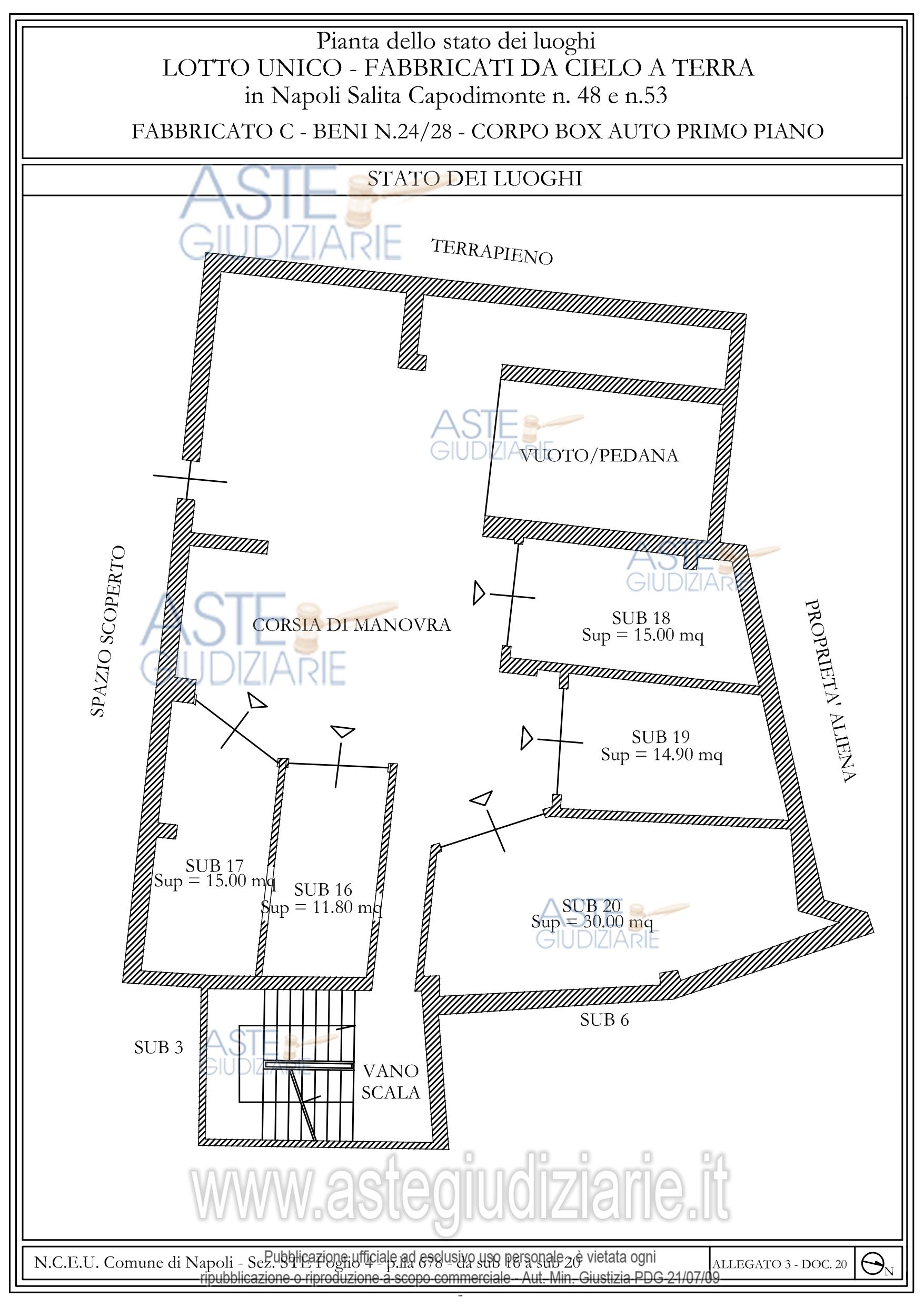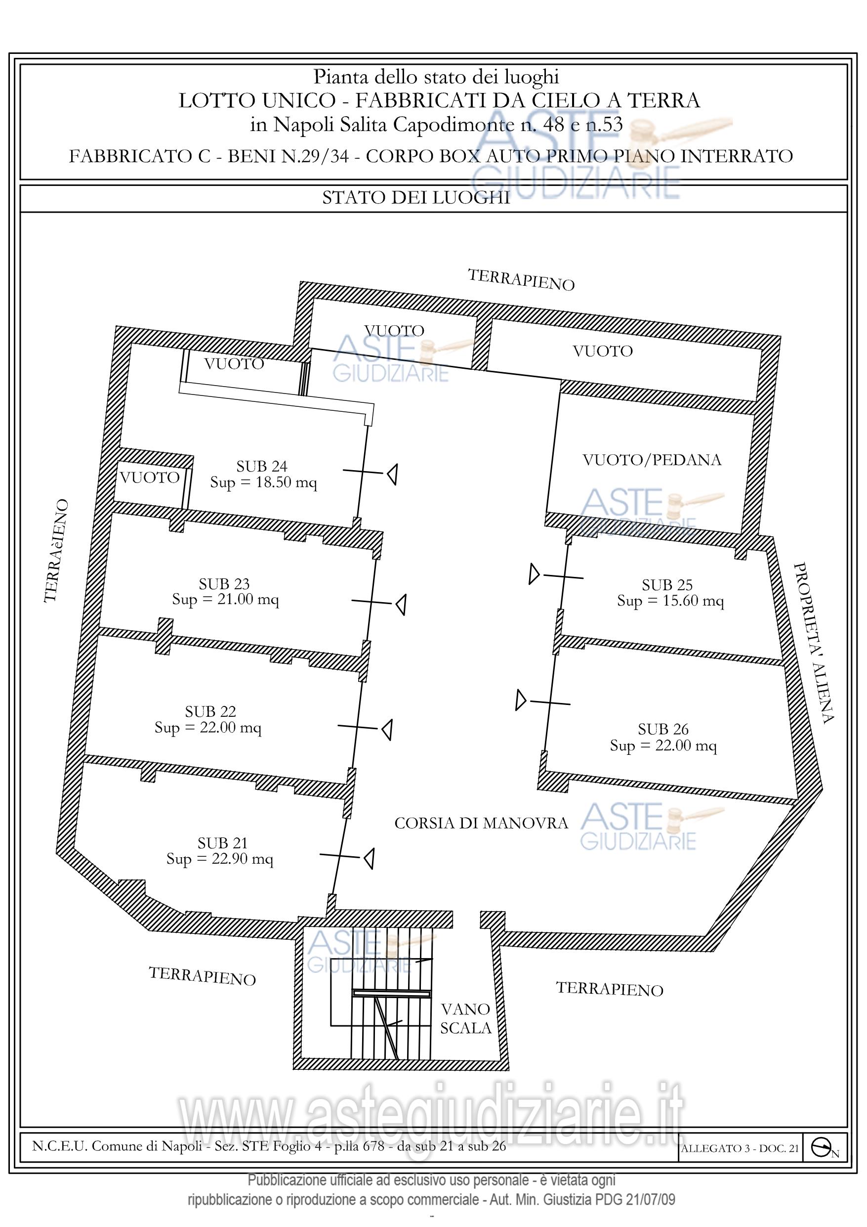 Vendita all'asta Senza incanto, con gara telematica asincrona - LOTTO UNICO: Lotto unico: FabbB accesso da Sal. Capodimonte composto da 3 terranei adibiti ad ab 3 unità adibite ad ab. al P1-1 unità al P2 uso ab oltre lastrico di copertura al P3; Fabb. C composto da 2 unità imm al PT ora adibite ad ab da 1 locale deposito al PT da 1unità imm su 2 livelli tra PT e P1 da 3 unità imm. al P1 ora adibite ad ab. da 4 unità imm. al P2 ora adibite ad ab androne cortile giardino comune al P2 lastrico di cop al P3 rampa di accesso ai box 5 box al PT 5 box al P1 6 box al P1 sem7 box al P2 sem. Prezzo base € 540.000,00 (offerta minima € 405.000,00). Data inizio operazioni di vendita: 07/07/2026 ore 15:00. Giudice Laura Martano. Professionista delegato alla vendita Dott. Paolo Liguoro - Email "paololiguoro2007@gmail.com"; Cell. 3398776873; Tel. 0818990087. Custode Giudiziario Dott. Paolo Liguoro - Email "paololiguoro2007@gmail.com"; Cell. 3398776873; Tel. 0818990087. Rif. Tribunale di Napoli - Esecuzione immobiliare post legge 80 n. 285/2021