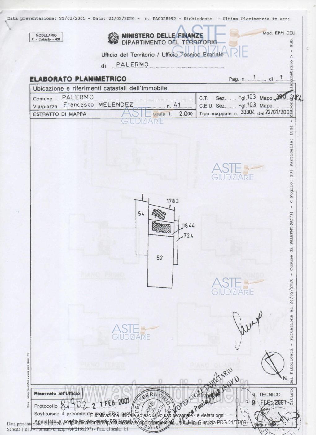 Vendita all'asta Senza incanto, con gara telematica sincrona mista - LOTTO 1: Quota di ½ di nuda proprietà e quota di ½ di piena proprietà di immobile facente parte di un edificio sito in Palermo, via Francesco Melendez n. 41 (Contrada Ciaculli), così composto: piano terra (locale di sgombero) e piano primo (appartamento), identificato in Catasto Fabbricati del detto Comune al foglio 103, particella 1844 sub 2, in corso di costruzione, Via Francesco Melendez n. 41 piano T-1. Prezzo base € 32.811,32 (offerta minima € 24.609,00). Data vendita 24/04/2026 ore 10:00. Giudice Valentina Imperiale. Professionista delegato alla vendita Avv. Marina Vajana - Email "avvmvajana.esecuzioni@gmail.com"; Tel. 091300764. Rif. Tribunale di Palermo - Contenzioso civile n. 5716/2023