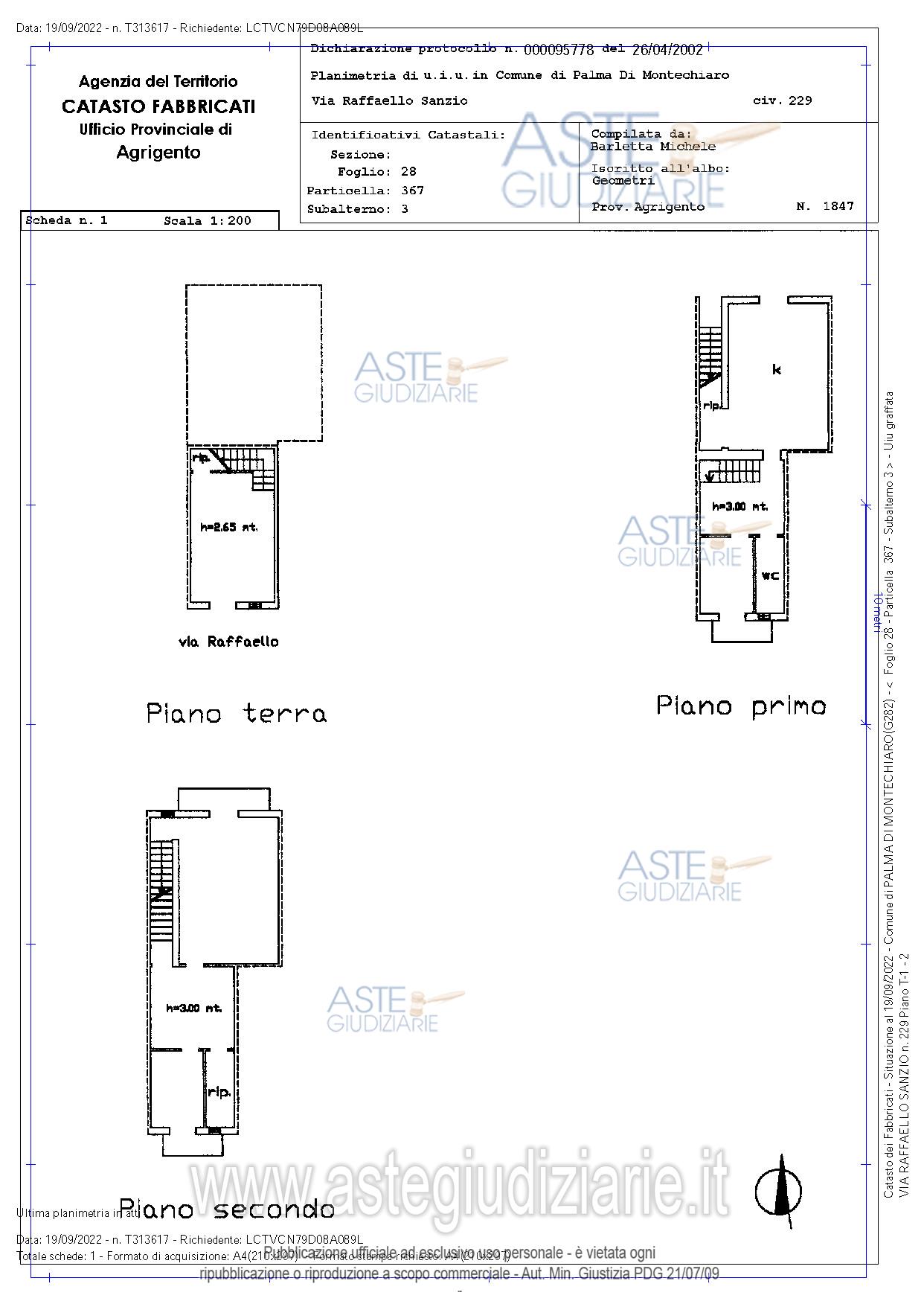 Vendita all'asta Senza incanto, con gara telematica asincrona - LOTTO 4: Full and perfect ownership of a building intended for residential use, arranged on four levels connected by an internal staircase, with the main entrance from Via Caravaggio No. 240, consisting of: a space used as a partially lofted warehouse, accessible through a metal opening on Via Raffaello on the ground floor; a kitchen/dining room, a bathroom, and a living room on the first floor; a living room, two bedrooms, a storage room, and a bathroom on the second floor; two main rooms and a small WC room on the third floor. Prezzo base € 32.640,00 (offerta minima € 32.640,00). Data inizio operazioni di vendita: 23/04/2026 ore 11:00. In caso di più offerte valide si procederà a gara che inizierà il 23/04/2026 ore 11:00 e terminerà il 30/04/2026 ore 11:00. Giudice Dott. Federica Verro. Professionista delegato alla vendita Dott. Cristina Zicari - Tel. 338 4033840. Curatore Dott. Cristina Zicari. Rif. Tribunale di Agrigento - Fallimentare (nuovo rito) n. 11/2022