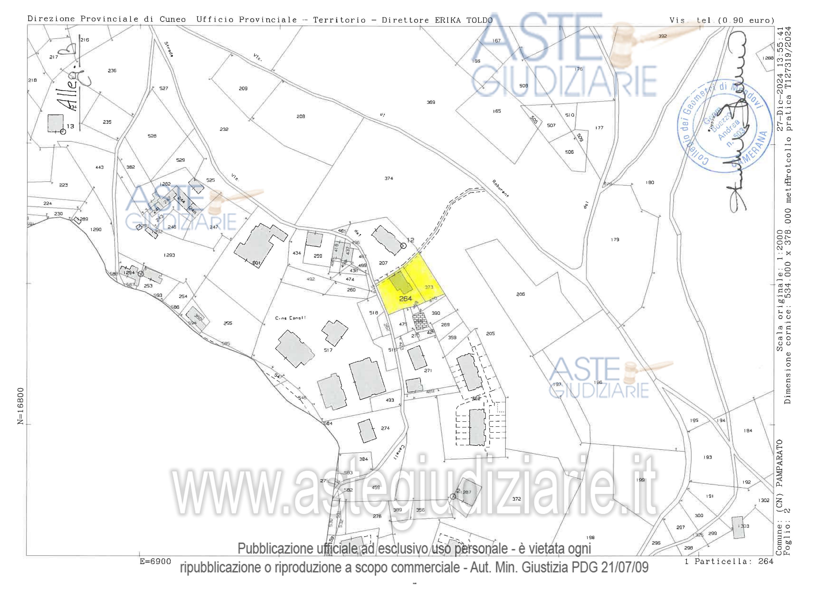 Vendita all'asta Senza incanto, con gara telematica asincrona - LOTTO UNICO: fabbricato in corso di ristrutturazione sito in Pamparato (CN), Via Canali n. 17, Fraz. Serra, con retrostante terreno. Prezzo base € 13.990,00 (offerta minima € 10.492,00). Data inizio operazioni di vendita: 18/06/2026 ore 17:30. Giudice Roberta Bonaudi.