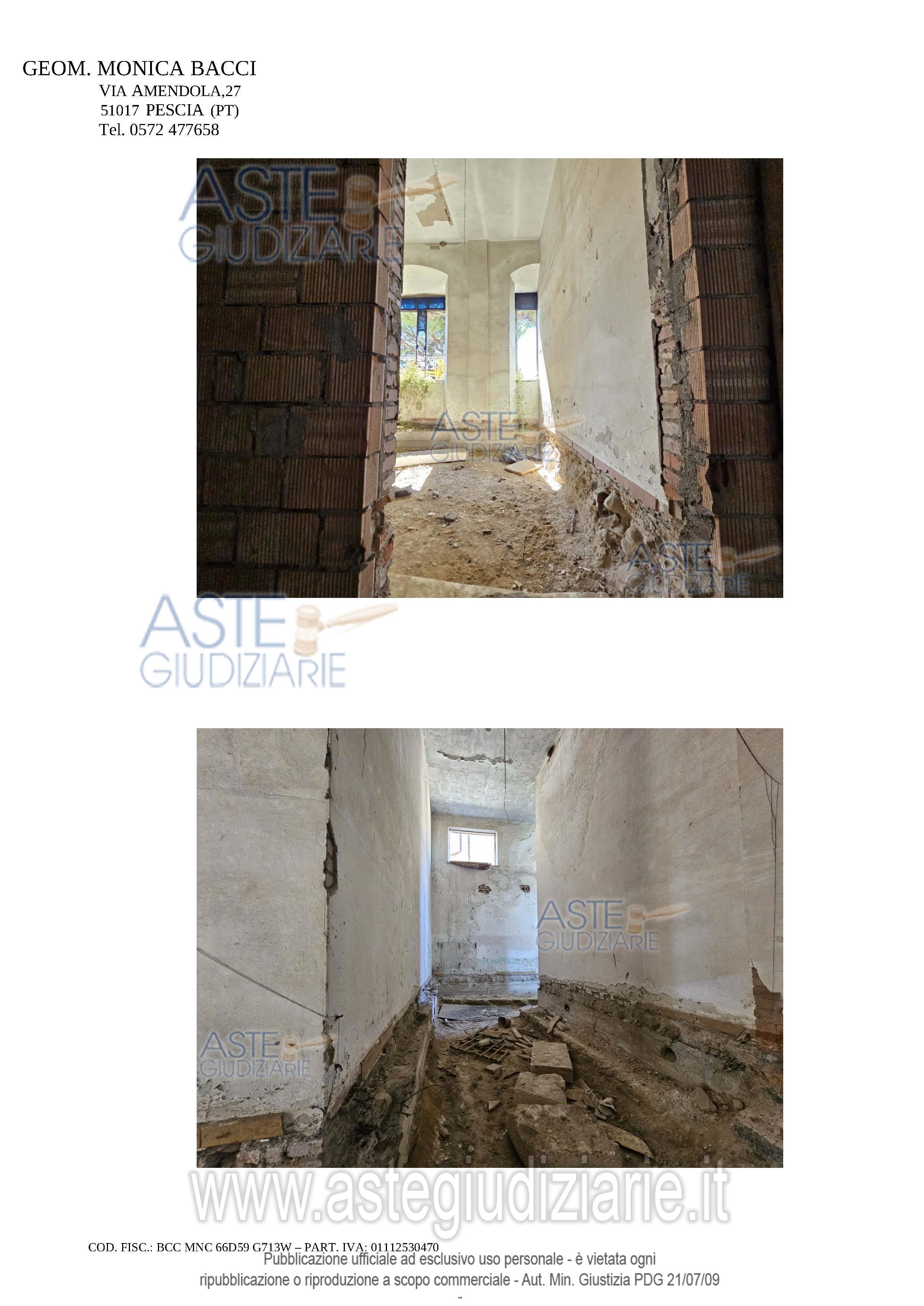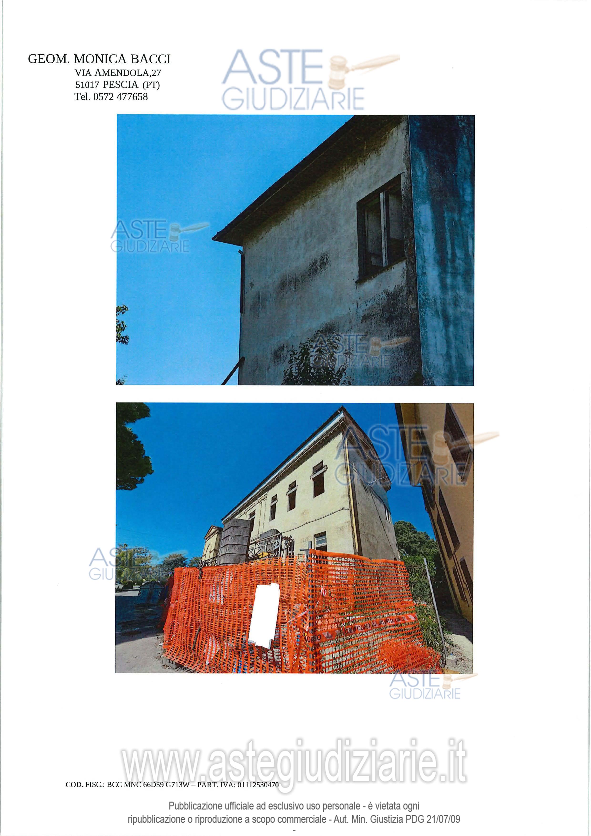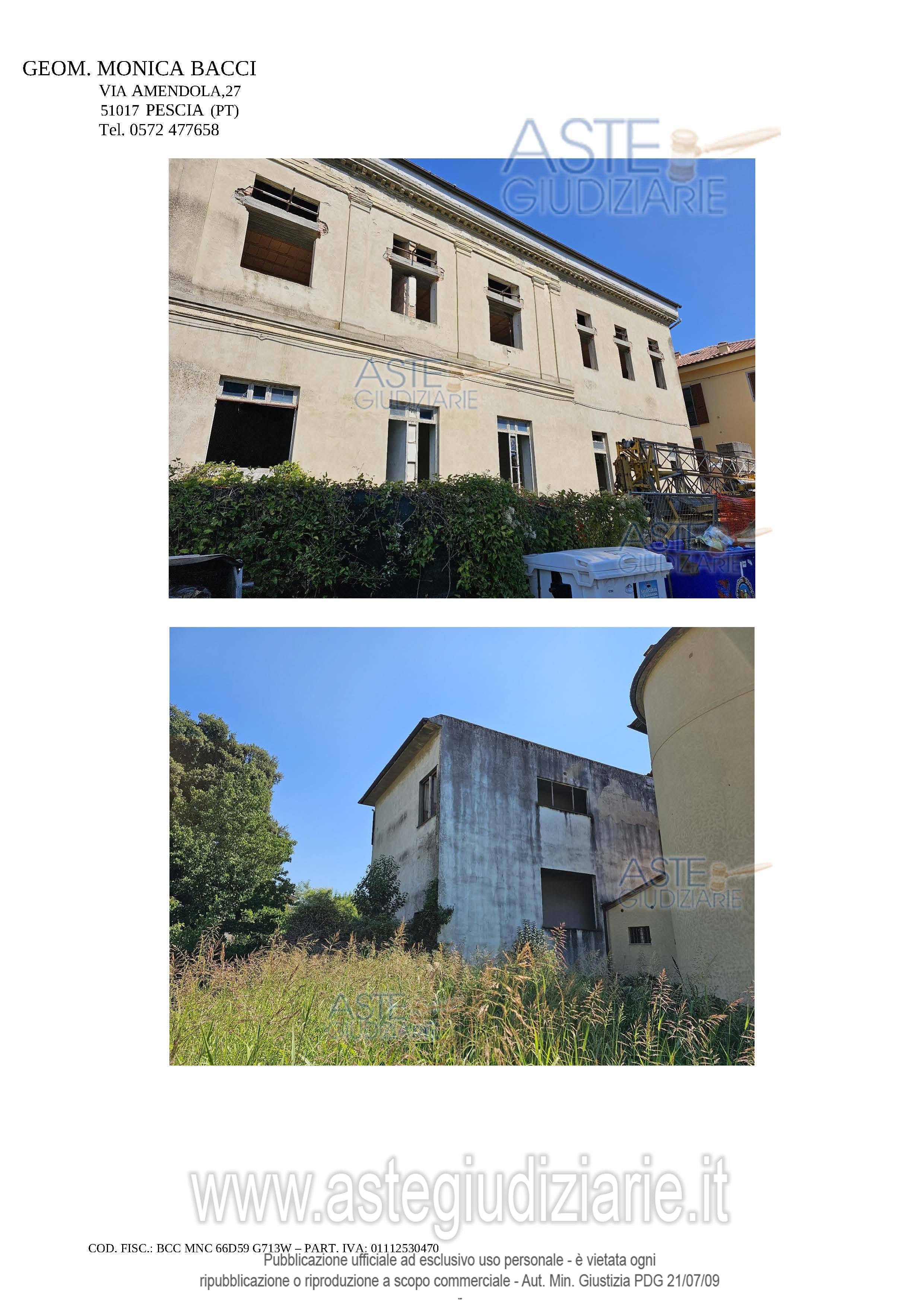 Vendita all'asta Senza incanto, con gara telematica asincrona - LOTTO 14: DIRITTI DI PIENA PROPRIETA' 1/1 sopra fabbricato già ad uso didattico, da terra a tetto, elevato di quattro piani fuori terra, attualmente in stato di completo abbandono, in parte parzialmente crollato ed in precarie condizioni statiche e manutentive, parzialmente interessato da intervento di ristrutturazione mai ultimato, con annessa corte esclusiva tergale. Prezzo base € 111.500,00 (offerta minima € 83.625,00). Data inizio operazioni di vendita: 08/05/2026 ore 14:30. Professionista delegato alla vendita Avv. Martina Torracchi - Tel. 0573367724. Custode Giudiziario Istituto Vendite Giudiziarie Srl - Email "prenota.pt@isveg.it". Rif. Tribunale di Pistoia - Esecuzione immobiliare post legge 80 n. 127/2022