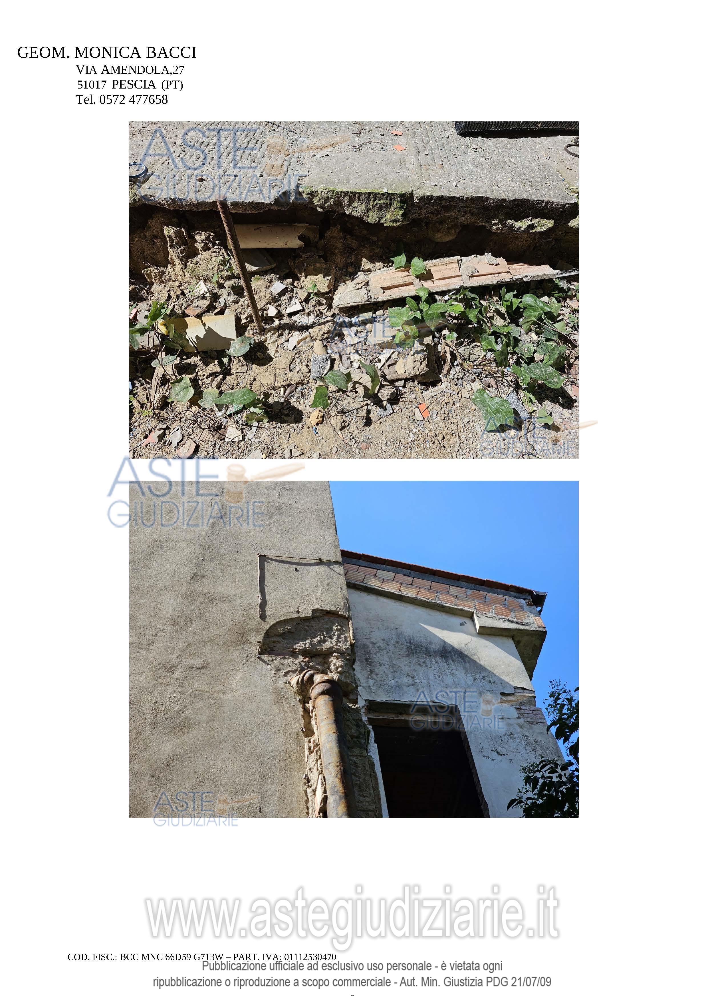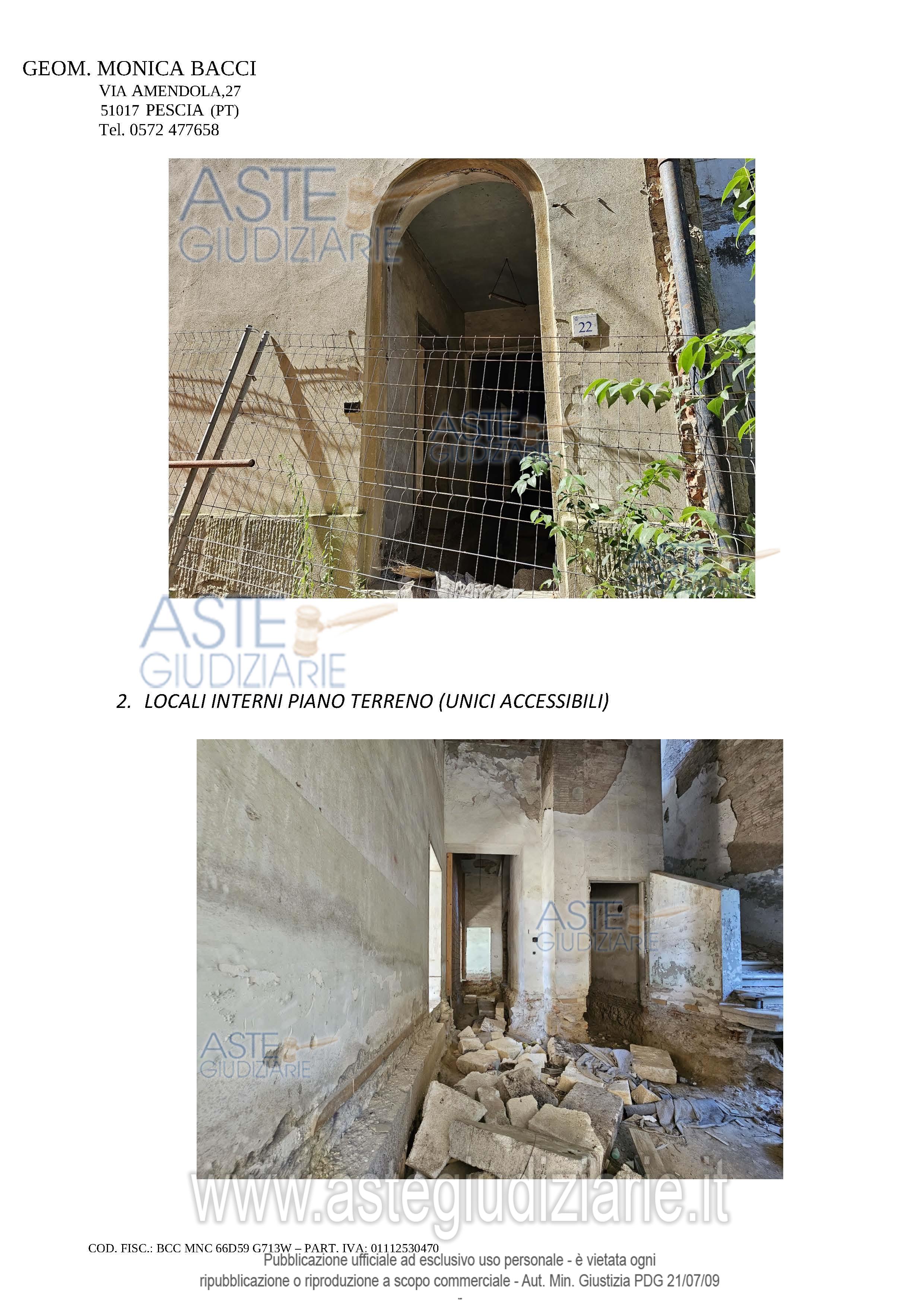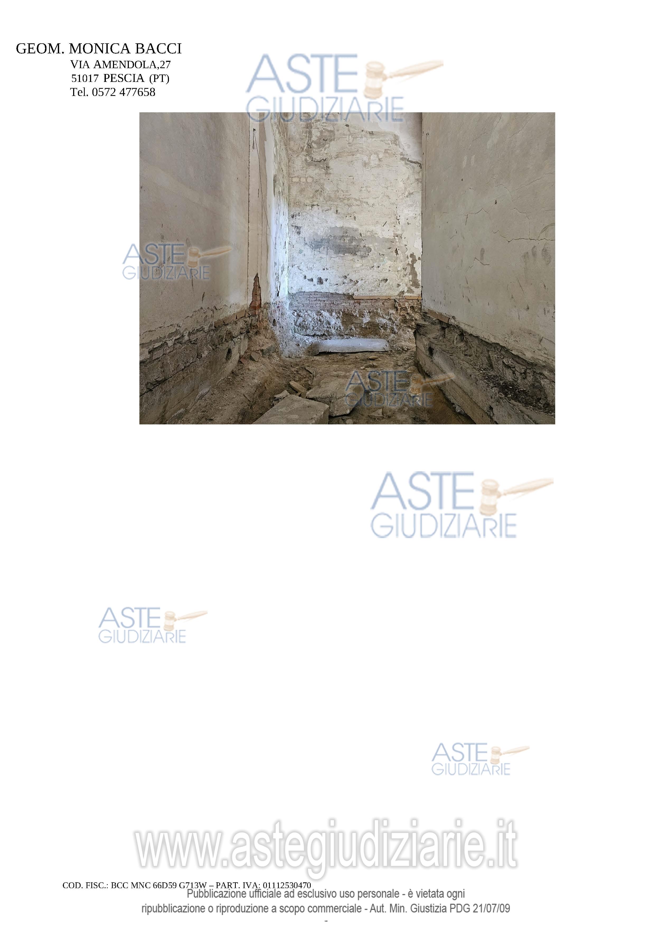Vendita all'asta Senza incanto, con gara telematica asincrona - LOTTO 14: DIRITTI DI PIENA PROPRIETA' 1/1 sopra fabbricato già ad uso didattico, da terra a tetto, elevato di quattro piani fuori terra, attualmente in stato di completo abbandono, in parte parzialmente crollato ed in precarie condizioni statiche e manutentive, parzialmente interessato da intervento di ristrutturazione mai ultimato, con annessa corte esclusiva tergale. Prezzo base € 111.500,00 (offerta minima € 83.625,00). Data inizio operazioni di vendita: 08/05/2026 ore 14:30. Professionista delegato alla vendita Avv. Martina Torracchi - Tel. 0573367724. Custode Giudiziario Istituto Vendite Giudiziarie Srl - Email "prenota.pt@isveg.it". Rif. Tribunale di Pistoia - Esecuzione immobiliare post legge 80 n. 127/2022