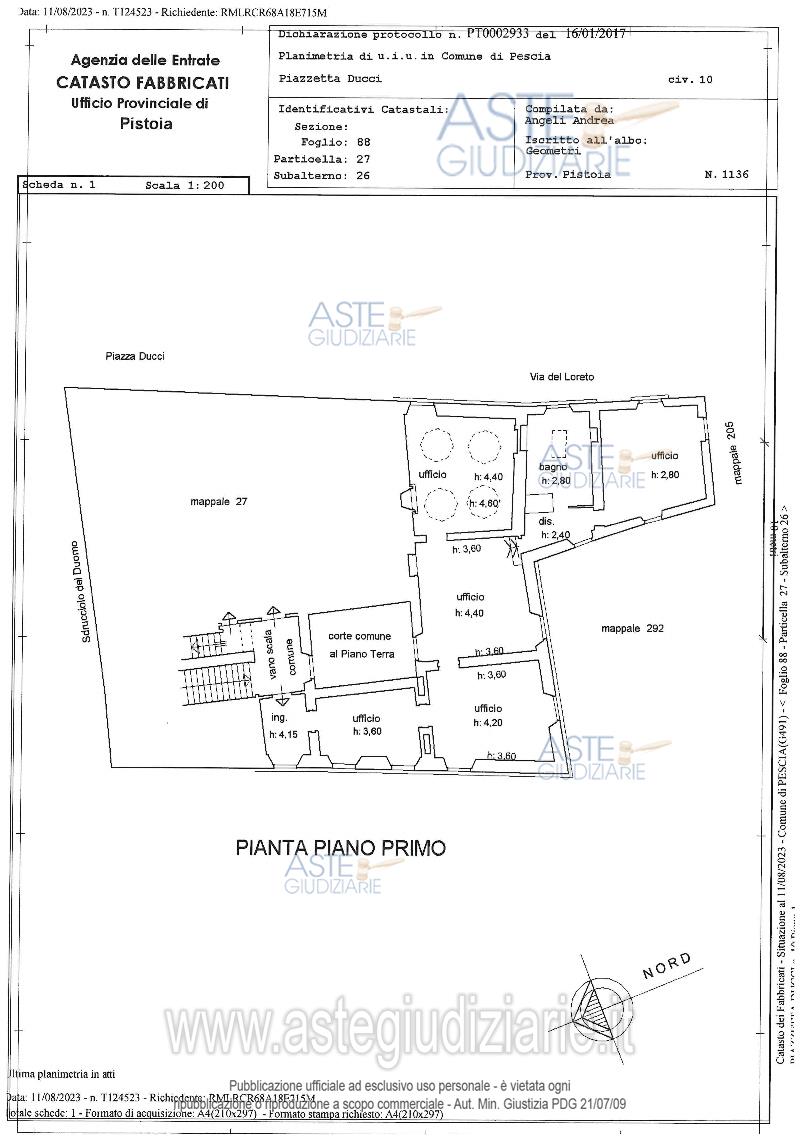 Vendita all'asta Senza incanto, con gara telematica asincrona - LOTTO 1: Porzioni di un più ampio ed antico palazzo a carattere condominiale ubicato nel centro storico cittadino di Pescia (PT), nei pressi del ponte del Duomo, sulla sinistra del fiume, edificio ricompreso tra lo sdrucciolo del Duomo, la piazzetta Ducci e la via del Loreto. Prezzo base € 341.000,00 (offerta minima € 341.000,00). Data inizio operazioni di vendita: 12/05/2026 ore 12:00. Rif. Tribunale di Pistoia - Concordato preventivo omologato(cci) n. 5/2025