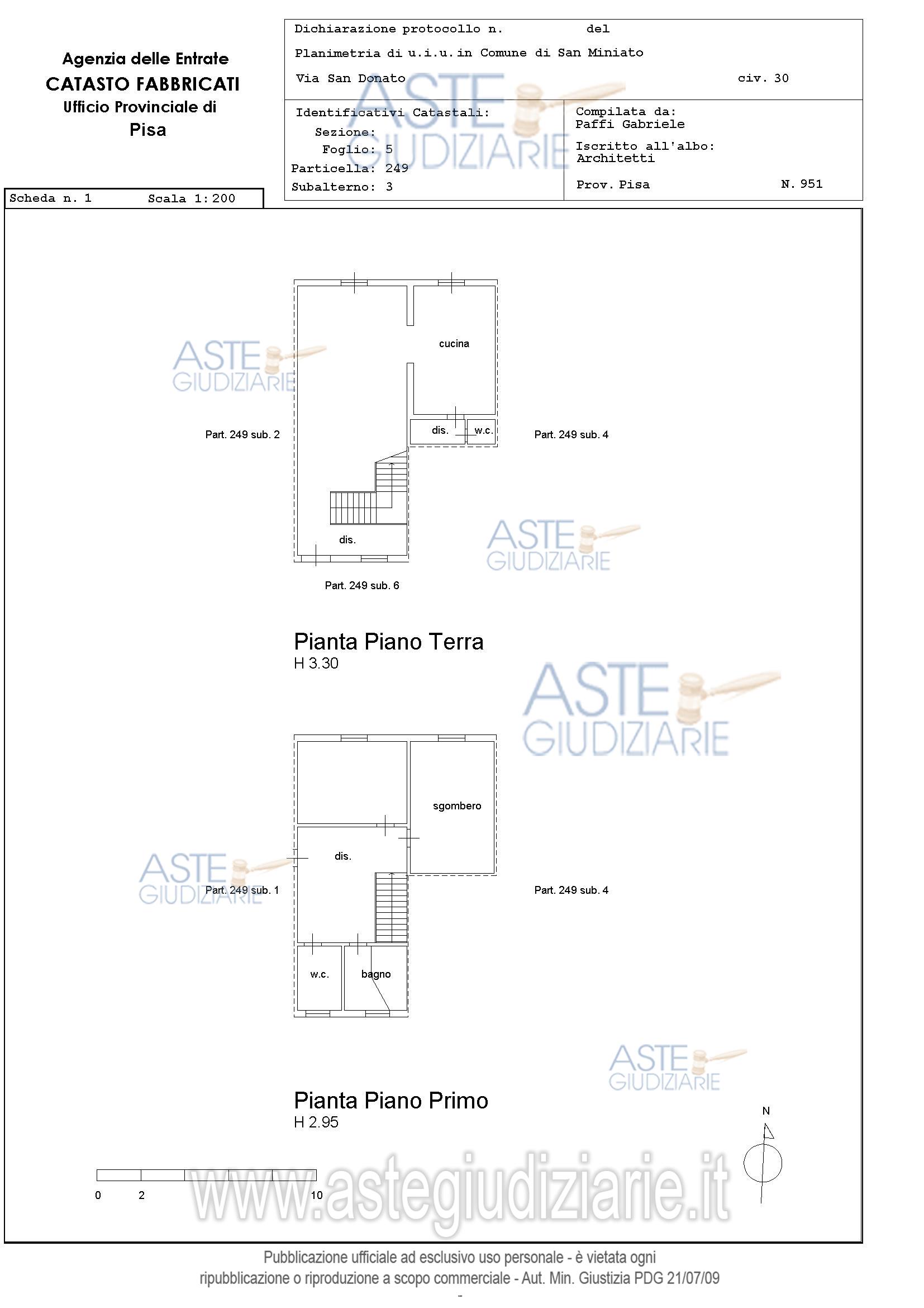 Vendita all'asta Senza incanto, con gara telematica sincrona mista - LOTTO 2: Terratetto ubicato a San Miniato (PI) - Via San Donato, n. 30 piano T-1. Prezzo base € 142.456,60 (offerta minima € 106.842,45). Data vendita 03/12/2025 ore 09:30. Giudice Zinna. Professionista delegato alla vendita Dott. Maurizio Rubbini - Email "m.rubbini@csadvisor.it". Custode Giudiziario Dott. Cosimo Erriquez - Email "prenotazionipisa@astagiudiziaria.com"; Tel. 050554790. Rif. Tribunale di Pisa - Esecuzione immobiliare post legge 80 n. 292/2014