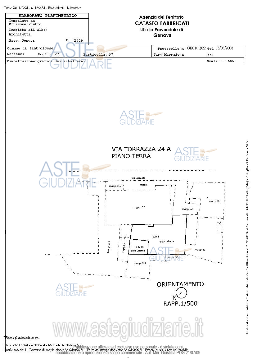 Vendita all'asta Senza incanto, con gara telematica sincrona mista - LOTTO UNICO: Complesso immobiliare costituito da numero 21 unità immobiliari ubicate nel comune di Sant’Olcese (GE), località Torrazza, via Torrazza, facenti parte di un immobile cielo-terra in fase di ristrutturazione, oltre a box, posti auto e area esterna. Prezzo base € 385.000,00 (offerta minima € 228.750,00). Data vendita 22/01/2026 ore 12:30. Curatore Dott. Luigi Figari - Email "figari@studiolf.it"; Tel. 010589597. Rif. Tribunale di Genova - Liquidazione giudiziale(cci) n. 68/2024