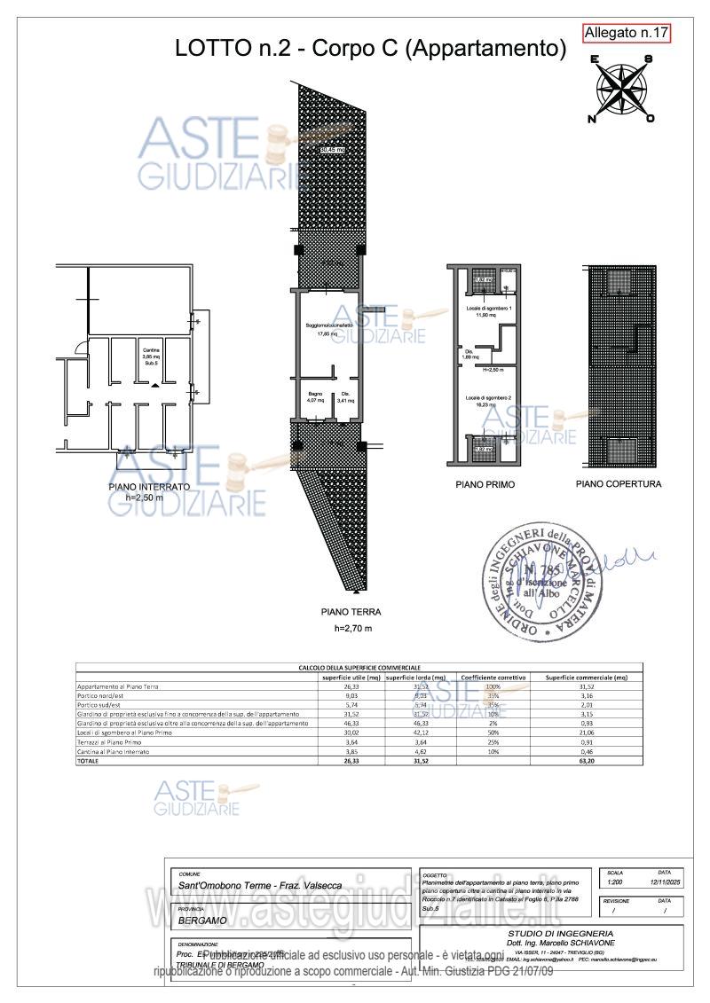 Vendita all'asta Senza incanto, con gara telematica asincrona - LOTTO 2: Piena proprietà 1/1 di appartamento in corso di costruzione con cantina e box siti in Via Roccolo, 7, Valsecca 24030 Sant’Omobono Terme. Prezzo base € 89.087,42 (offerta minima € 66.815,57). Data inizio operazioni di vendita: 28/04/2026 ore 10:00. Giudice Dott. Luca Verzeni. Professionista delegato alla vendita Rag. Alessandro Testa - Email "alessandro.testa@studioberlanda.it"; Tel. 035214556. Custode Giudiziario Rag. Alessandro Testa - Email "alessandro.testa@studioberlanda.it"; Tel. 035214556. Rif. Tribunale di Bergamo - Espropriazione immobiliare (cartabia) n. 288/2025