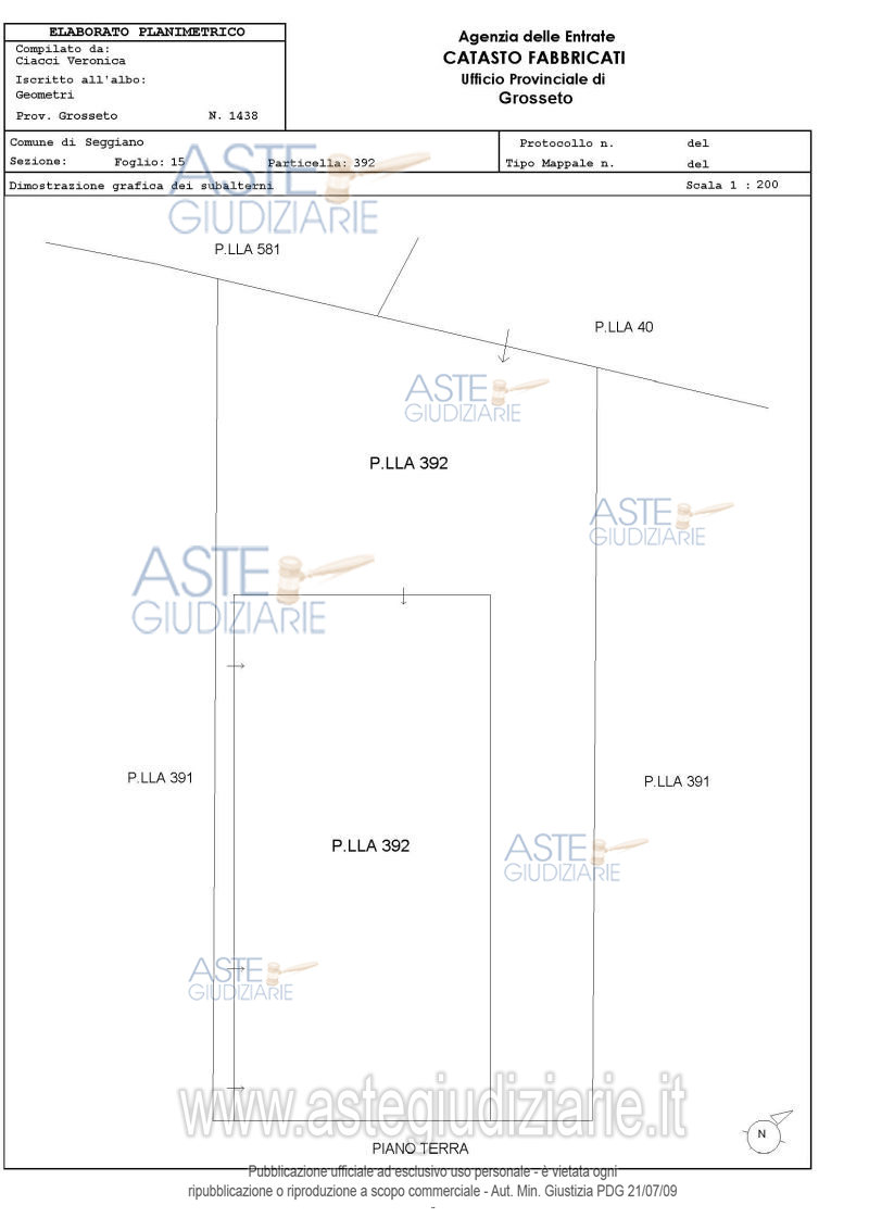 Vendita all'asta Senza incanto, con gara telematica sincrona mista - LOTTO 1: Piena proprietà di:A) Terreno posto nel Comune di Seggiano (GR), Loc. Poggio alle Bandite, censito al Catasto Terreni del Comune di Seggiano (GR) al Foglio 15, Particella 391, Qualità Bosco Alto, . Prezzo base € 32.376,00 (offerta minima € 24.282,00). Data vendita 27/01/2026 ore 08:30. Giudice Cristina Nicolò. Professionista delegato alla vendita Avv. Barbara Montomoli. Custode Giudiziario Avv. Barbara Montomoli - Email "bmontomoli@gmail.com"; Cell. 3392353321; Tel. 0564332146. Rif. Tribunale di Grosseto - Esecuzione immobiliare post legge 80 n. 112/2018