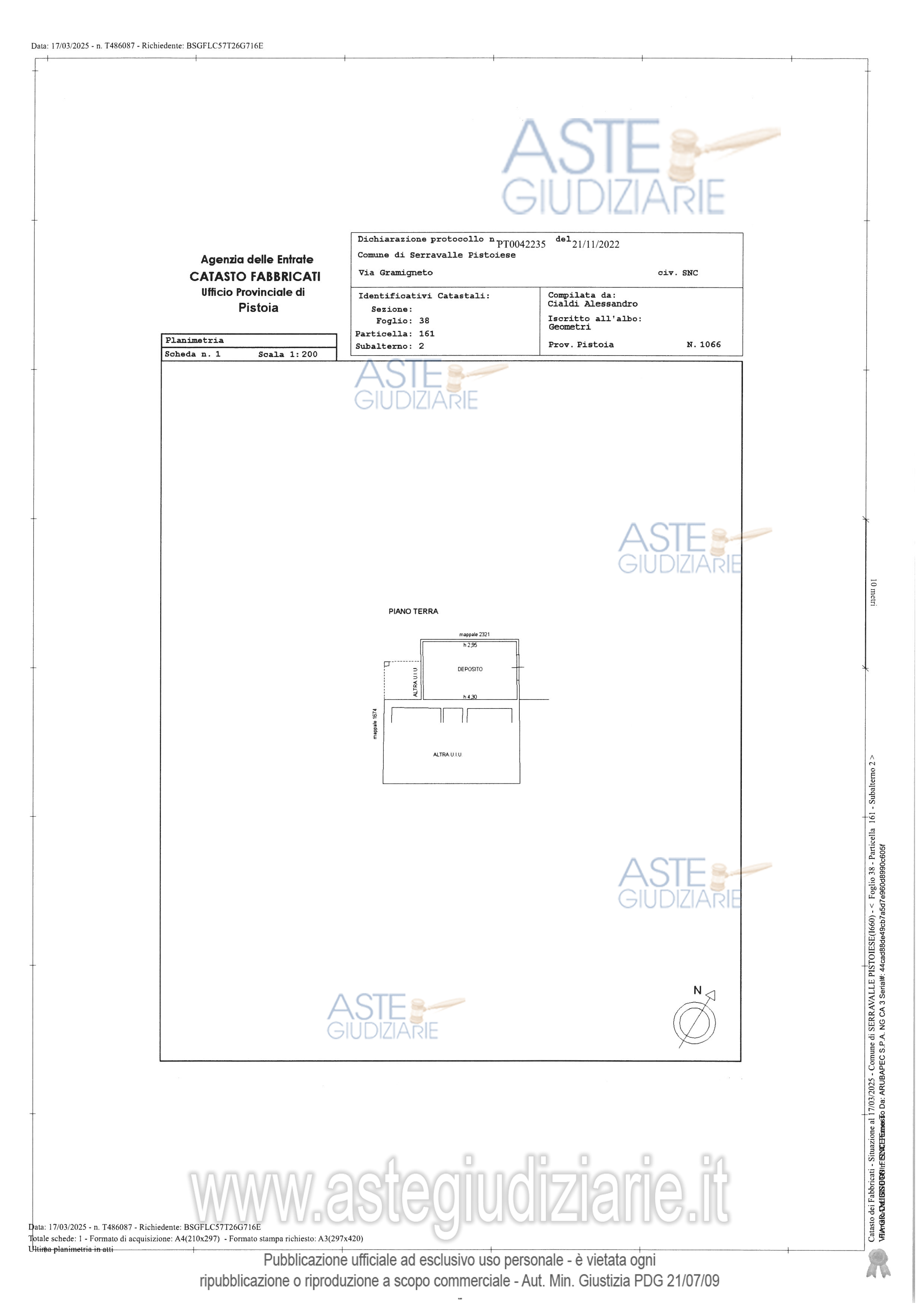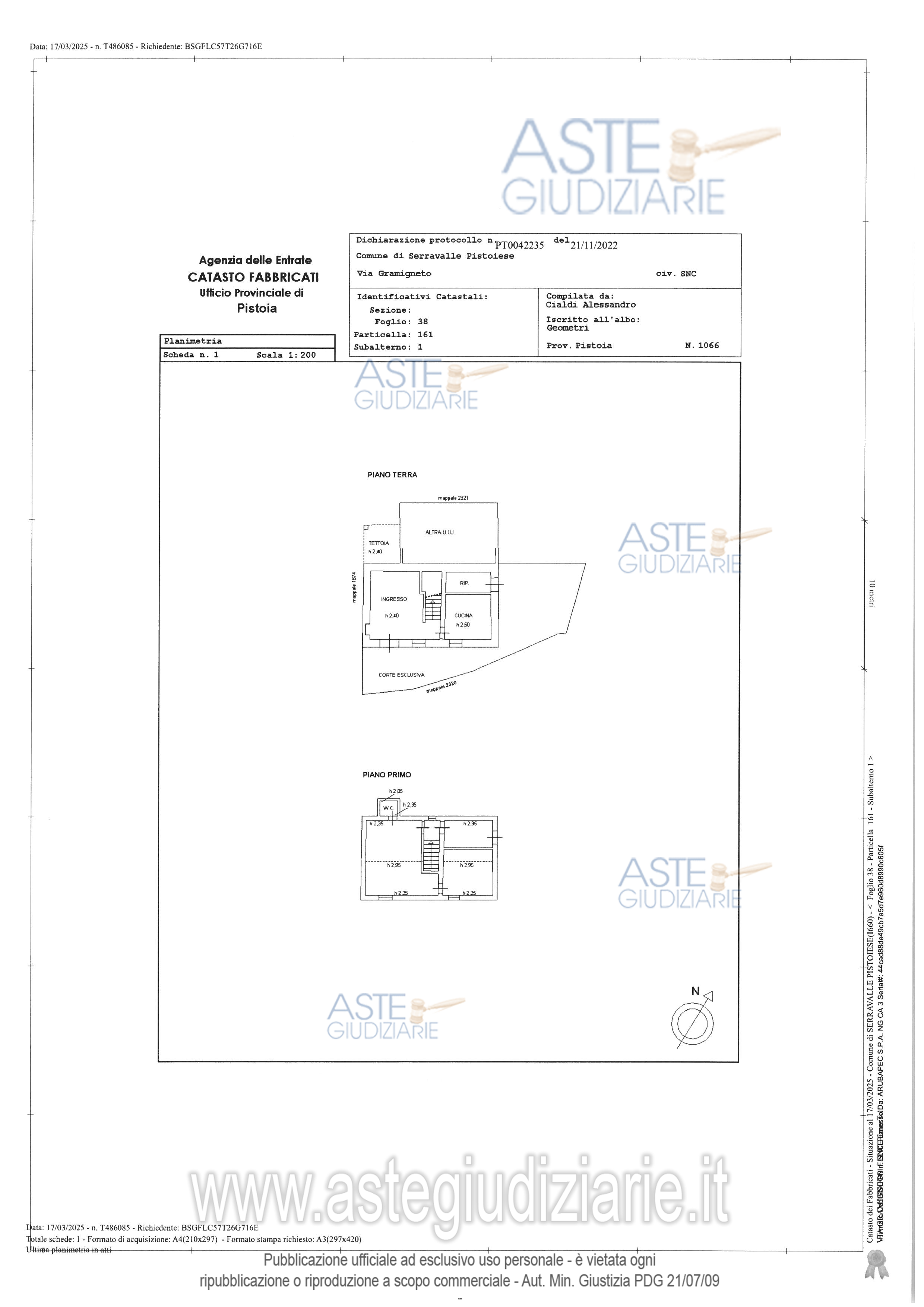 Vendita all'asta Senza incanto, con gara telematica asincrona - LOTTO 1: (Bene 1) - Unità collabente con annesso terreno;(Bene 2) -Terreno;(Bene 3) -Terreno. Prezzo base € 77.128,00 (offerta minima € 57.846,00). Data inizio operazioni di vendita: 05/11/2025 ore 10:00. Giudice Sergio Garofalo. Professionista delegato alla vendita Avv. Silvia Vignolini - Email "vignolinis@studiozogheri.it". Custode Giudiziario Isveg - Email "prenota.pt@isveg.it". Rif. Tribunale di Pistoia - Espropriazione immobiliare (cartabia) n. 21/2025