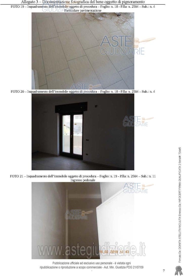 Vendita all'asta Senza incanto, con gara telematica asincrona - LOTTO 8: Piena proprietà di appartamento di tipo civile, con annesso locale garage, in fabbricato non ultimato. L'appartamento sito al primo piano è composto da soggiorno, cucina, due bagni e tre camere collegate per mezzo di un disimpegno centrale. Di pertinenza vi sono due balconi esterni. L'immobile è privo di certificato di collaudo statico e di impiantistica a norma. Prezzo base € 49.000,00 (offerta minima € 36.750,00). Data inizio operazioni di vendita: 24/06/2026 ore 09:30. Giudice: Dott. Giuseppina Valiante.