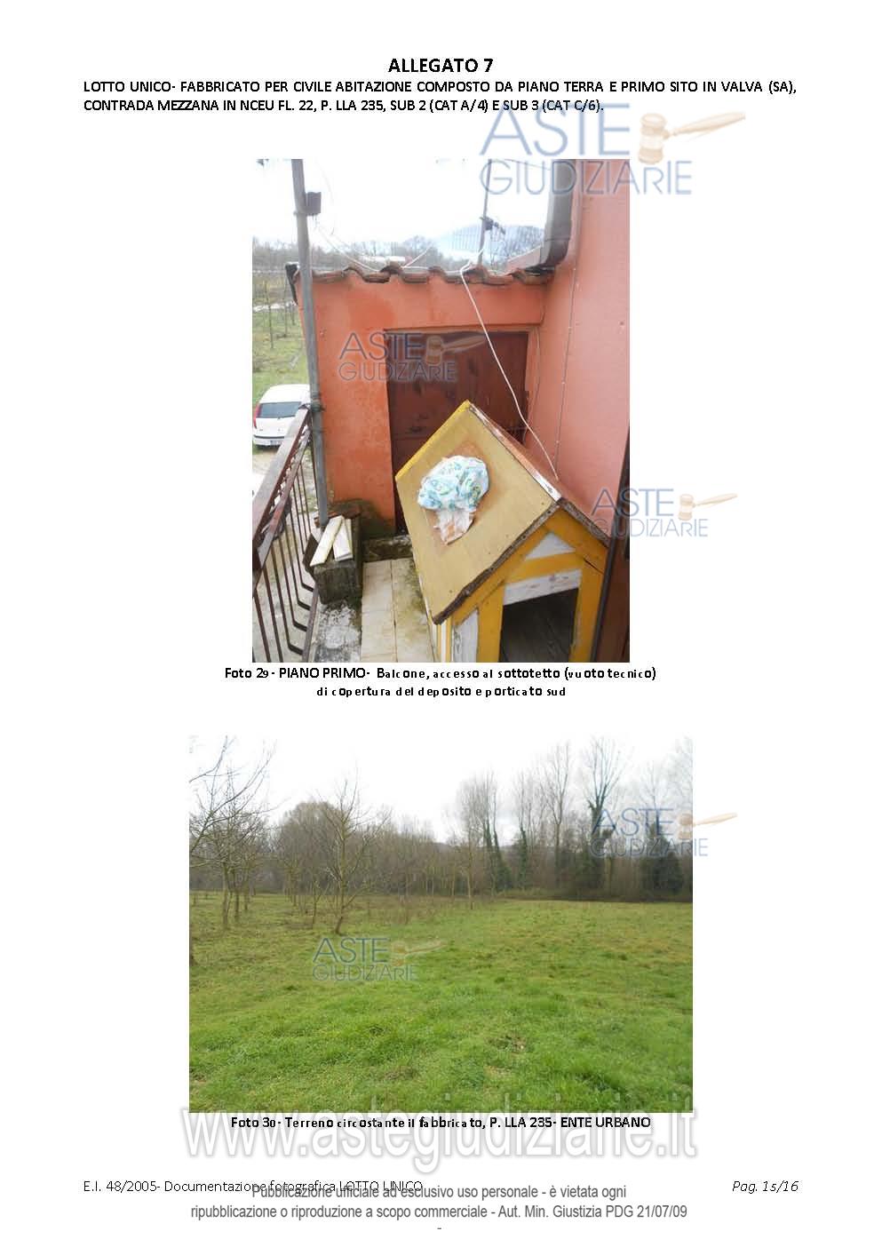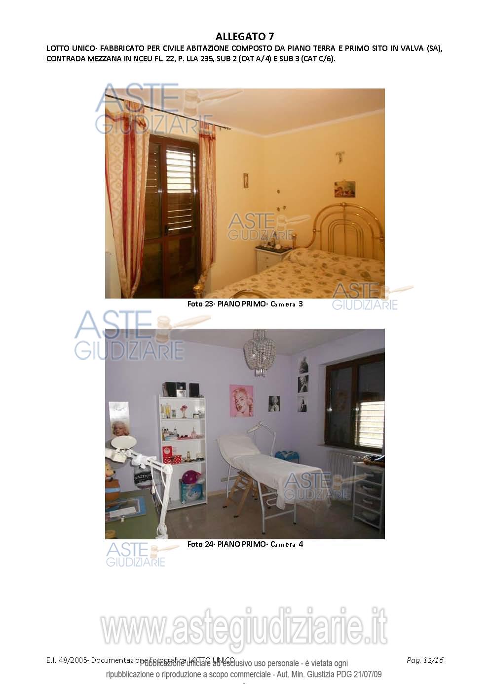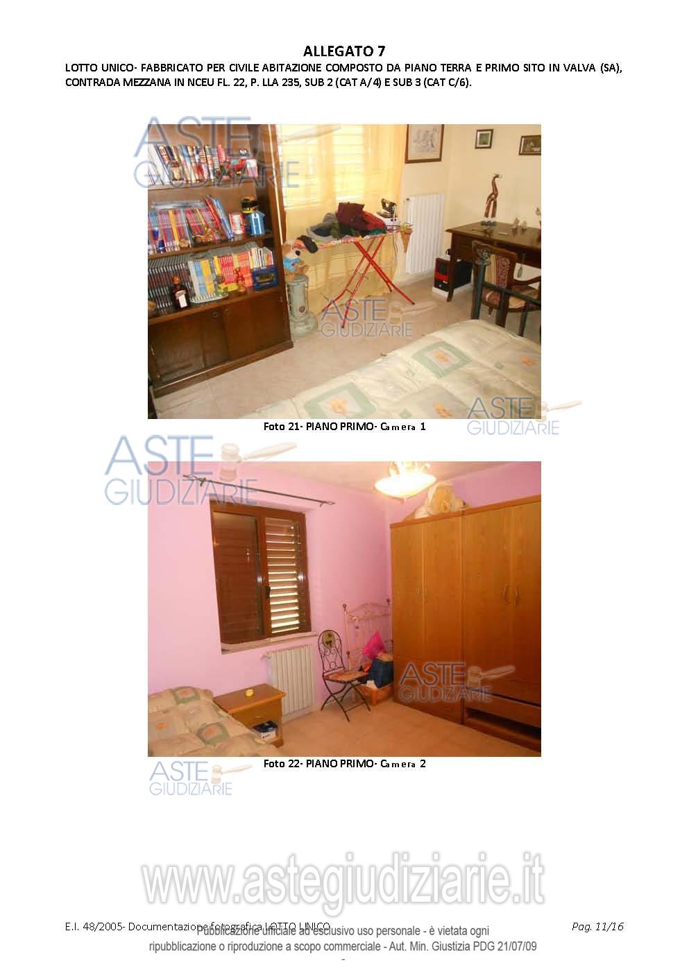 Vendita all'asta Senza incanto, con gara telematica asincrona - LOTTO UNICO: Fabbricato per civile abitazione composto da piano terra e primo piano. Prezzo base € 24.765,59 (offerta minima € 18.574,19). Data inizio operazioni di vendita: 14/04/2026 ore 17:00. Giudice Dott. Rosaria De Lucia. Professionista delegato alla vendita Avv. Rosa Maria Landi. Custode Giudiziario Avv. Rosa Maria Landi - Email "rosamarialandi@tiscali.it". Rif. Tribunale di Salerno - Esecuzione immobiliare post legge 80 n. 48/2005