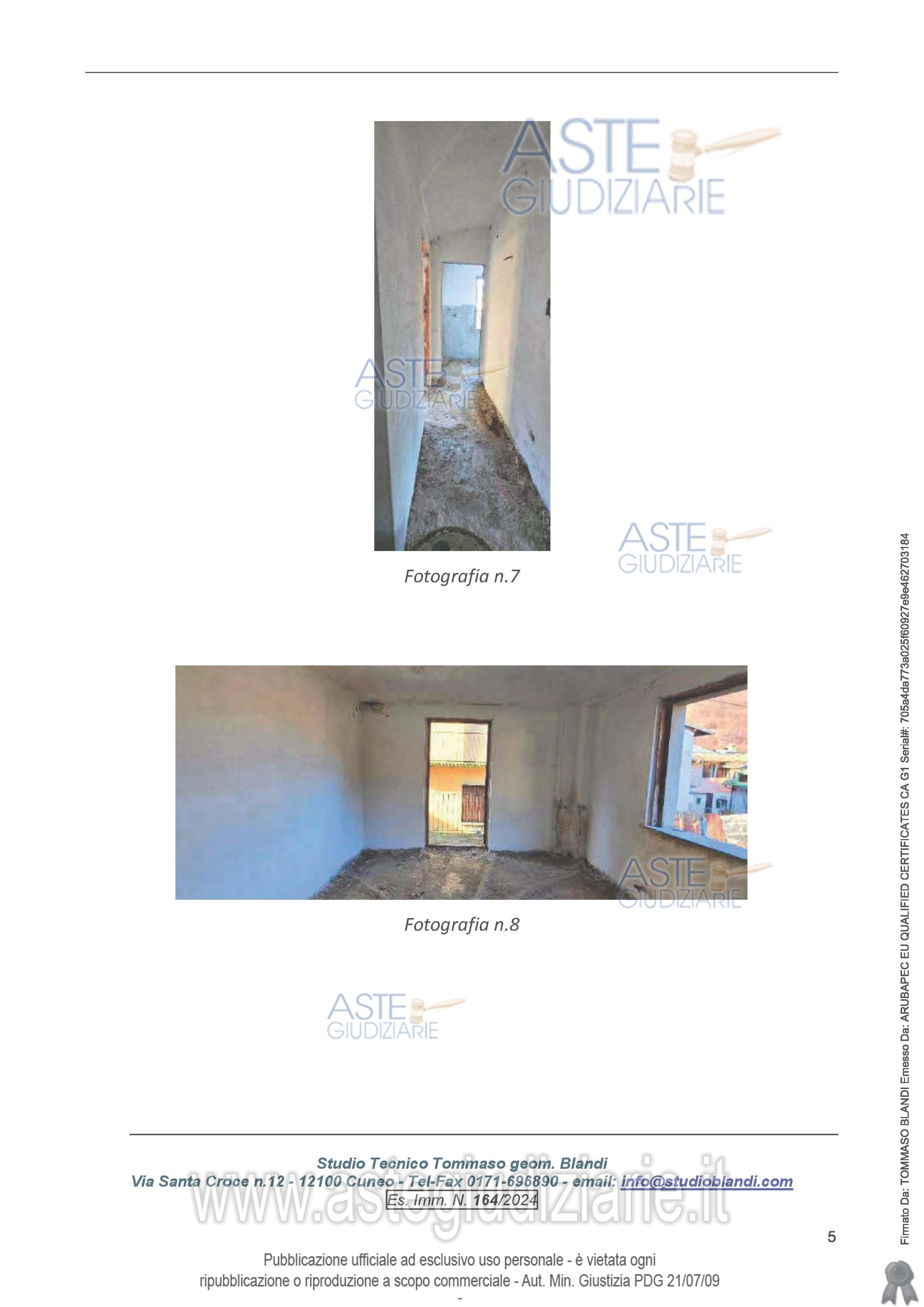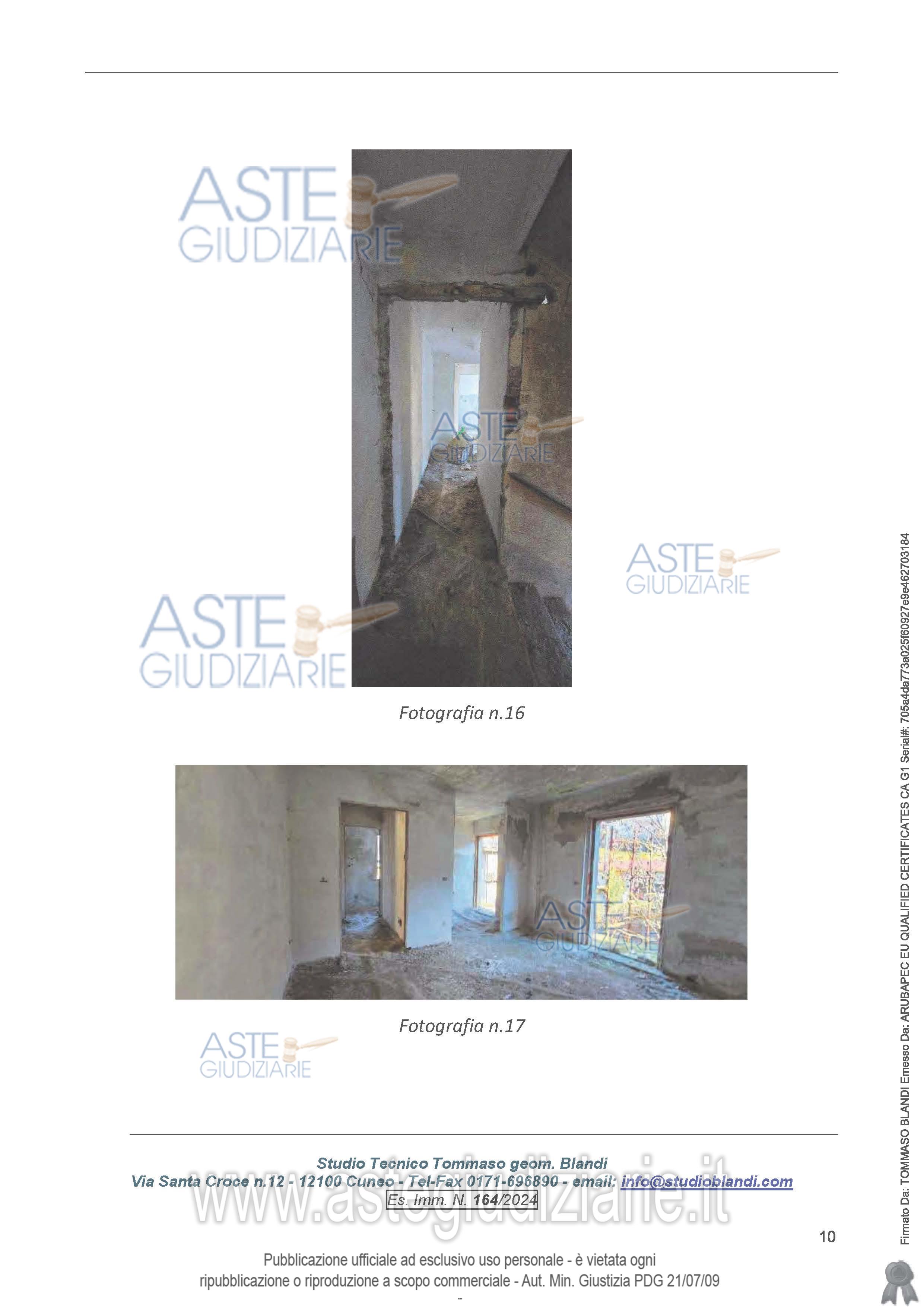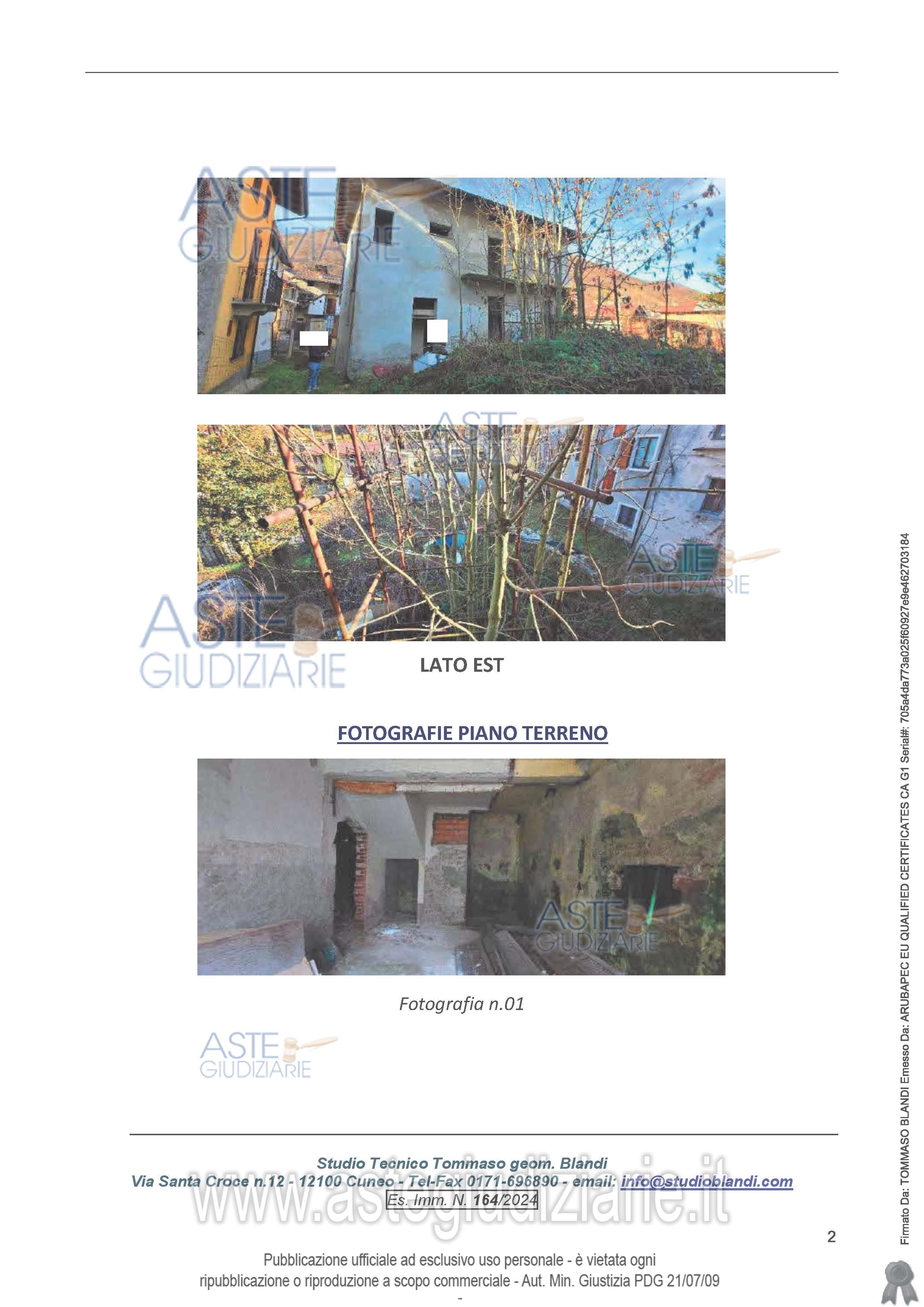 Vendita all'asta Senza incanto, con gara telematica asincrona - LOTTO UNICO: Fabbricato urbano da cielo a terra (piano terra, primo, secondo e solaio) con terreno adiacente, ubicato in Vernante (CN), Vicolo Giordanengo 5, in corso di ristrutturazione (il progetto prevedeva la realizzazione di più alloggi, i lavori sono iniziati ma non completati). Prezzo base € 41.000,00 (offerta minima € 30.750,00). Data inizio operazioni di vendita: 29/10/2025 ore 16:00. Giudice Drssa Roberta Bonaudi. Professionista delegato alla vendita Avv. Avv Elisabetta Agnello - Email "avvocatoagnello@gmail.com"; Tel. 3457051897. Custode Giudiziario Ifir Piemonte S.R.L., Istituto Vendite Giudiziarie - Email "richiestevisite.cuneo@ivgpiemonte.it"; Tel. 01711873923. Rif. Tribunale di Cuneo - Espropriazione immobiliare (cartabia) n. 164/2024