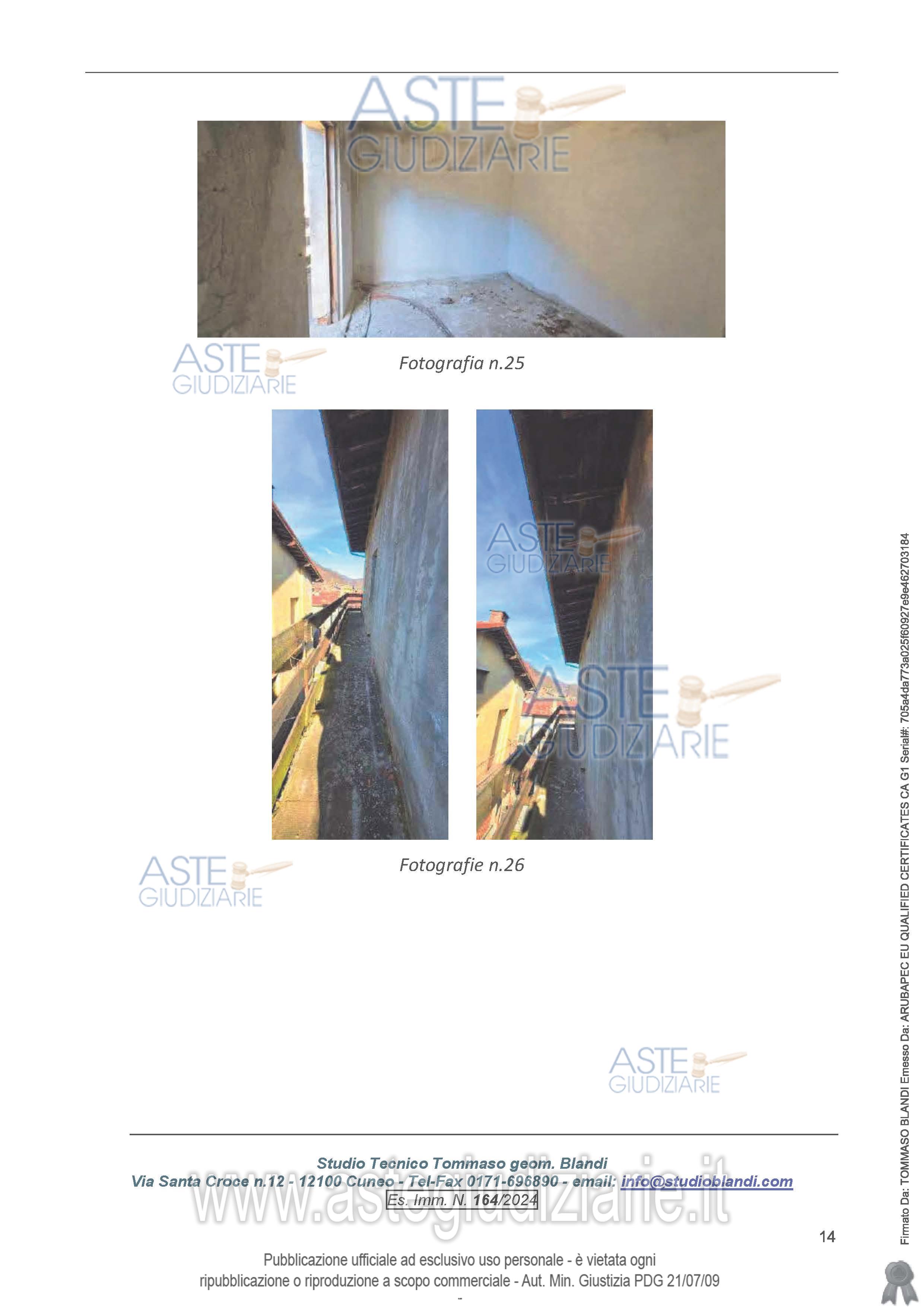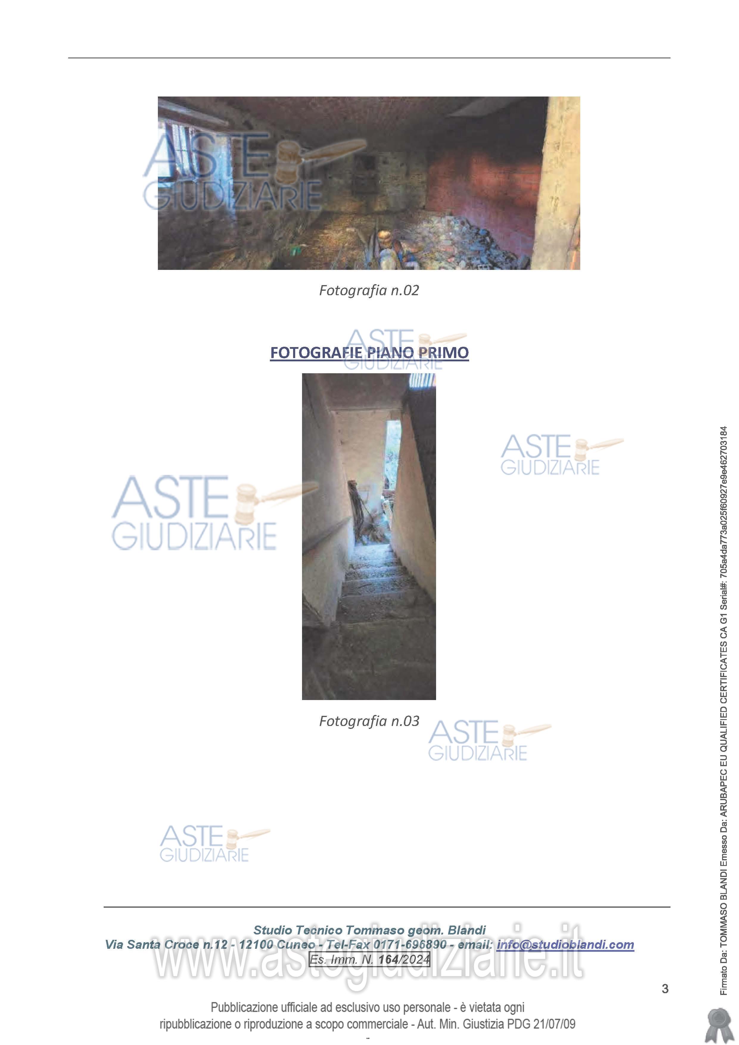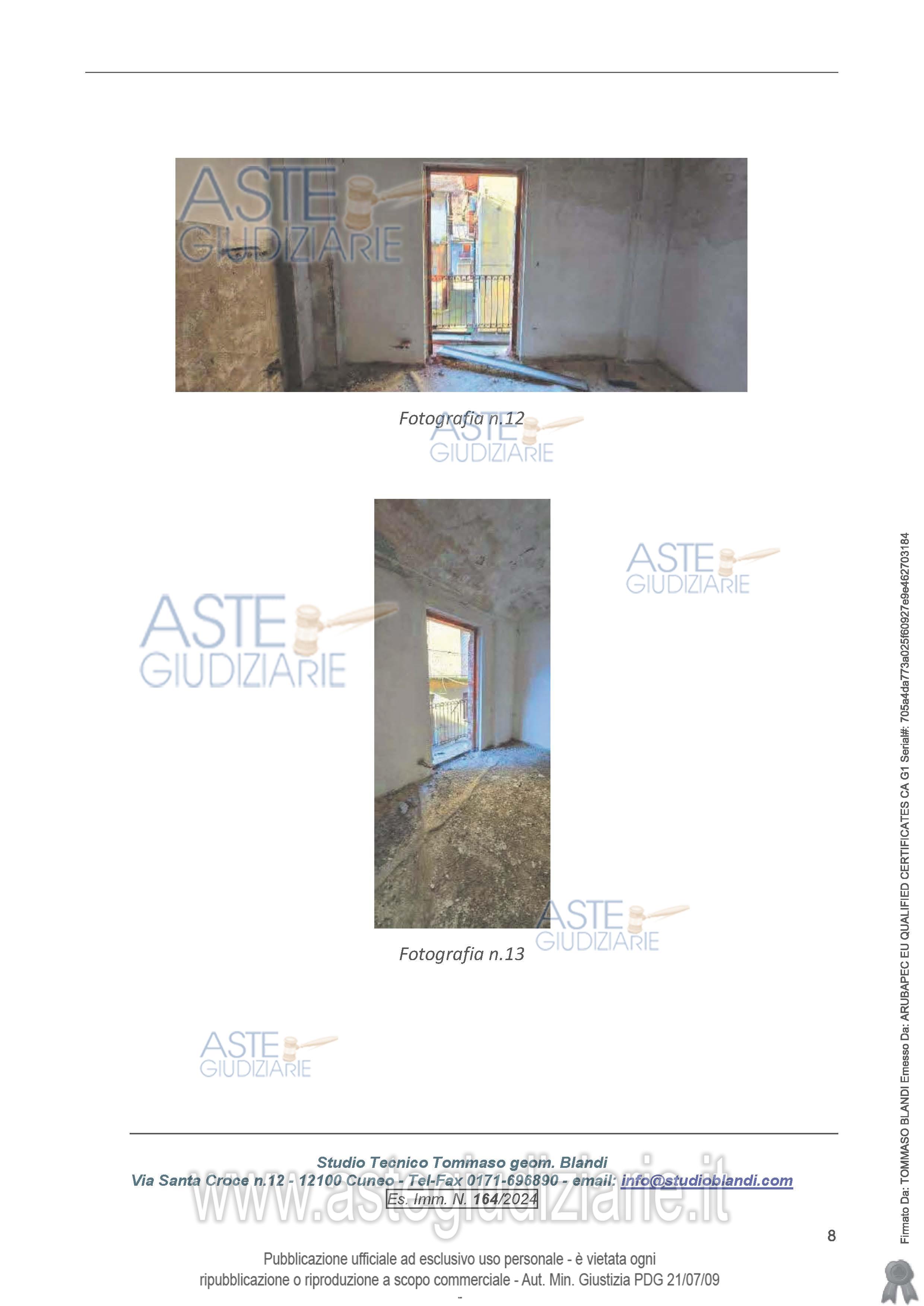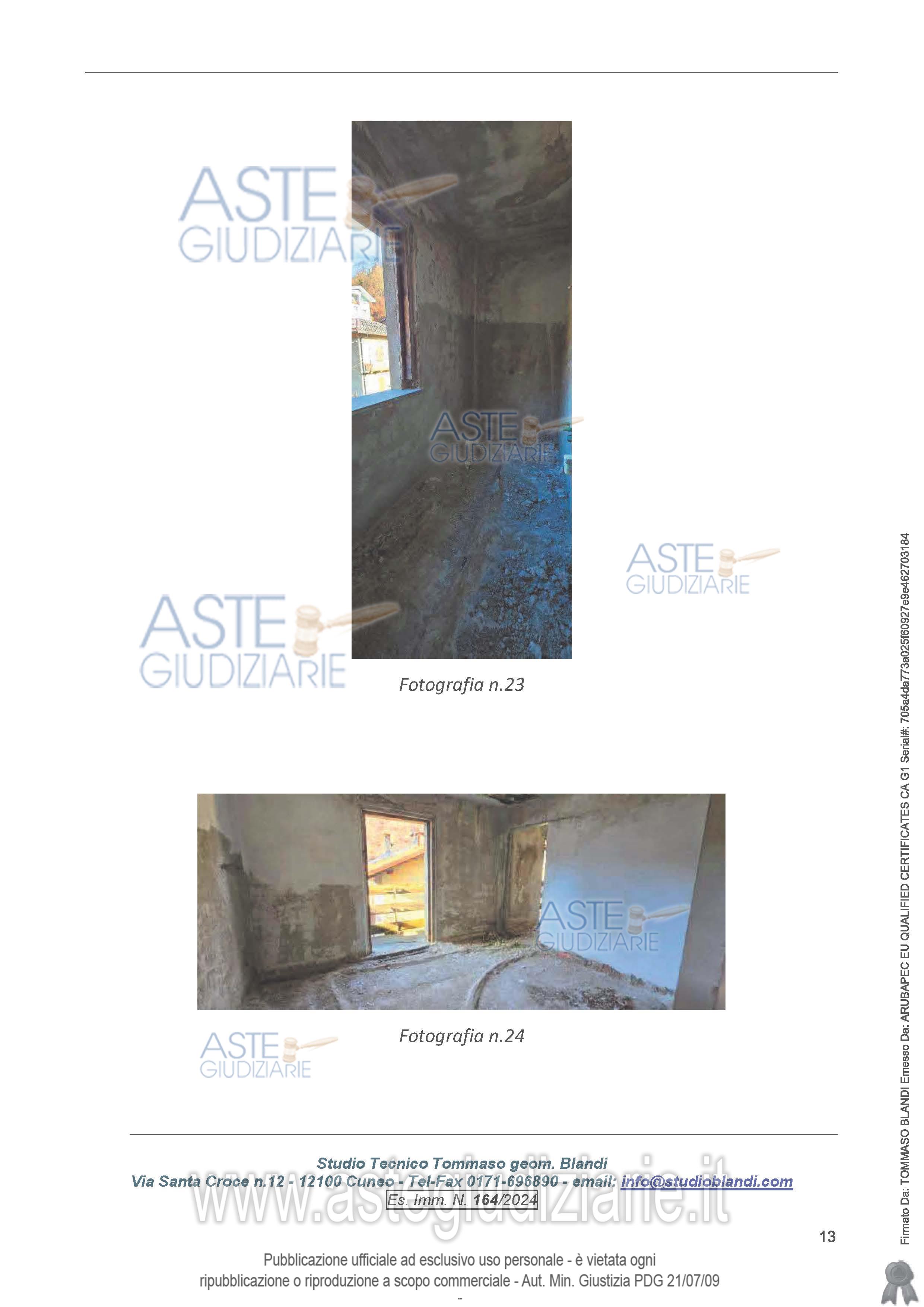 Vendita all'asta Senza incanto, con gara telematica asincrona - LOTTO UNICO: Fabbricato urbano da cielo a terra (piano terra, primo, secondo e solaio) con terreno adiacente, ubicato in Vernante (CN), Vicolo Giordanengo 5, in corso di ristrutturazione (il progetto prevedeva la realizzazione di più alloggi, i lavori sono iniziati ma non completati). Prezzo base € 41.000,00 (offerta minima € 30.750,00). Data inizio operazioni di vendita: 29/10/2025 ore 16:00. Giudice Drssa Roberta Bonaudi. Professionista delegato alla vendita Avv. Avv Elisabetta Agnello - Email "avvocatoagnello@gmail.com"; Tel. 3457051897. Custode Giudiziario Ifir Piemonte S.R.L., Istituto Vendite Giudiziarie - Email "richiestevisite.cuneo@ivgpiemonte.it"; Tel. 01711873923. Rif. Tribunale di Cuneo - Espropriazione immobiliare (cartabia) n. 164/2024
