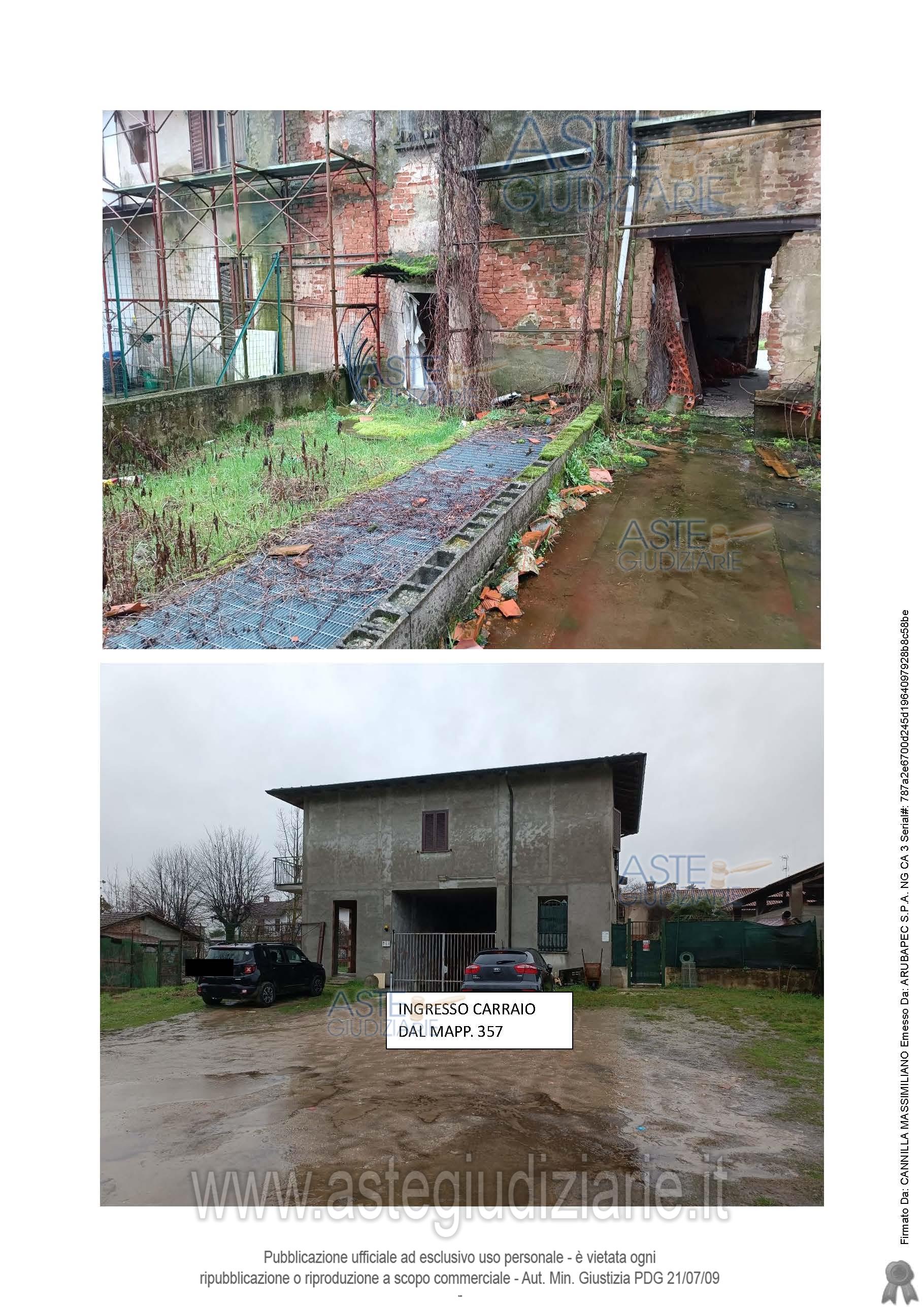 Vendita all'asta Senza incanto, con gara telematica asincrona - LOTTO 2: porzione di fabbricato collabente ai piani terra, primo e secondo, con tre autorimesse e una cantina poste al piano seminterrato di corpo di fabbrica più recente ed agibile e area esterna gravata da servitù di passaggio a vantaggio delle unità immobiliari al mappale 690 e proprietà limitrofe. Prezzo base € 15.060,94 (offerta minima € 11.295,71). Data inizio operazioni di vendita: 26/05/2026 ore 10:00. Giudice Francesca Paola Claris Appiani. Professionista delegato alla vendita Not. Luisa Cellerino - Email "lcellerino@notariato.it". Custode Giudiziario Istituto Vendite Giudiziarie Di Vigevano - Email "immobiliarivigevano@ifir.it"; Tel. 0381691137. Rif. Tribunale di Pavia - Espropriazione immobiliare (cartabia) n. 278/2023