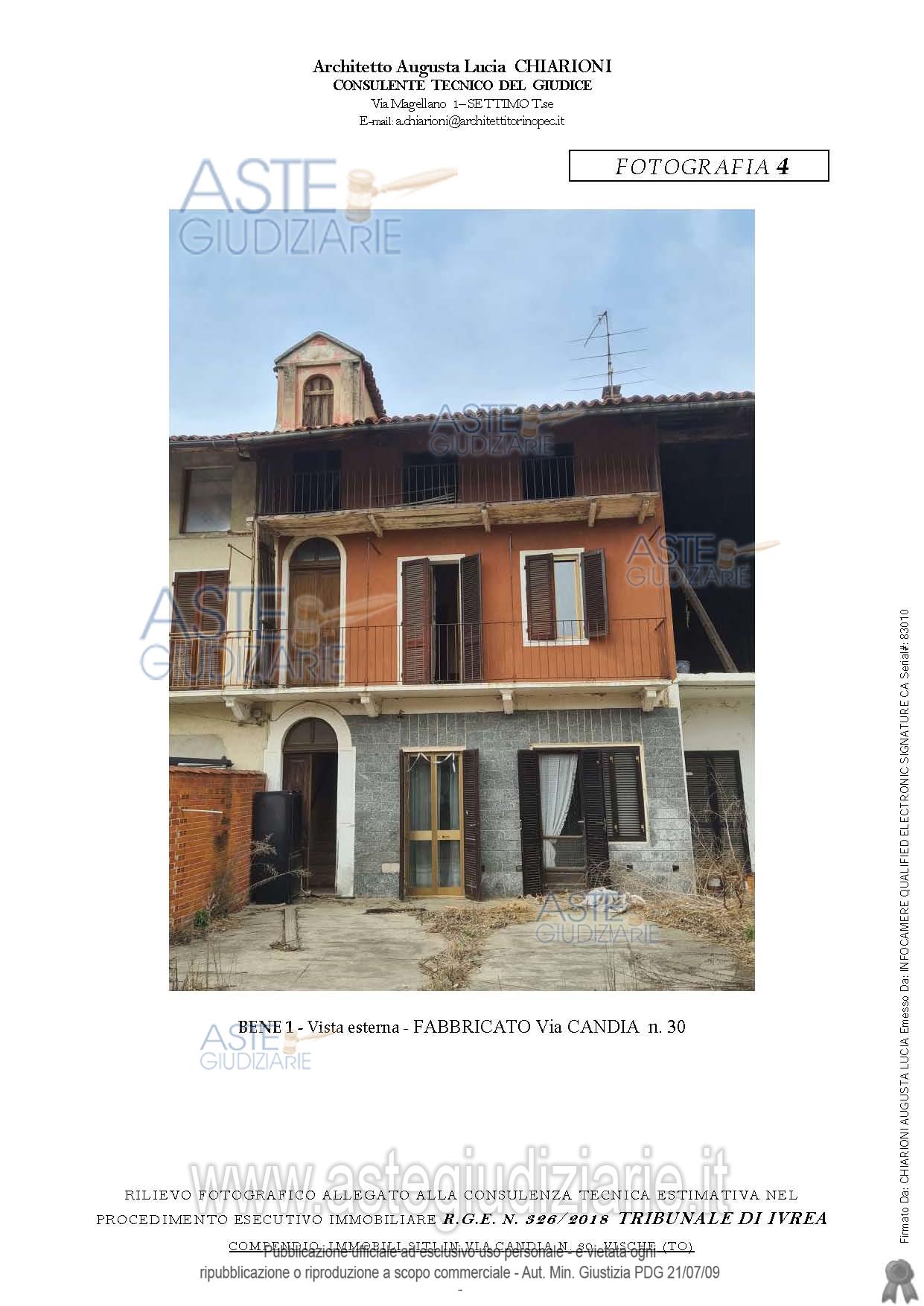 Vendita all'asta Senza incanto, con gara telematica asincrona - LOTTO UNICO: Piena proprietà di porzione di fabbricato, elevato a due piani fuori terra, di tipica cascina delcanavese a corte chiusa, comprensivo di giardino sul retro, pertinenze e tettoie ed appezzamento di terreno ubicato a Vische (TO), Lungo via Cascine Pratoferro. Prezzo base € 22.467,00 (offerta minima € 16.850,25). Data inizio operazioni di vendita: 10/06/2026 ore 09:30. Professionista delegato alla vendita Avv. Monica Defilippi. Custode Giudiziario Avv. Monica Defilippi - Email "avvmonicadefilippi@gmail.com"; Cell. 3388947609. Rif. Tribunale di Ivrea - Contenzioso civile n. 2487/2023