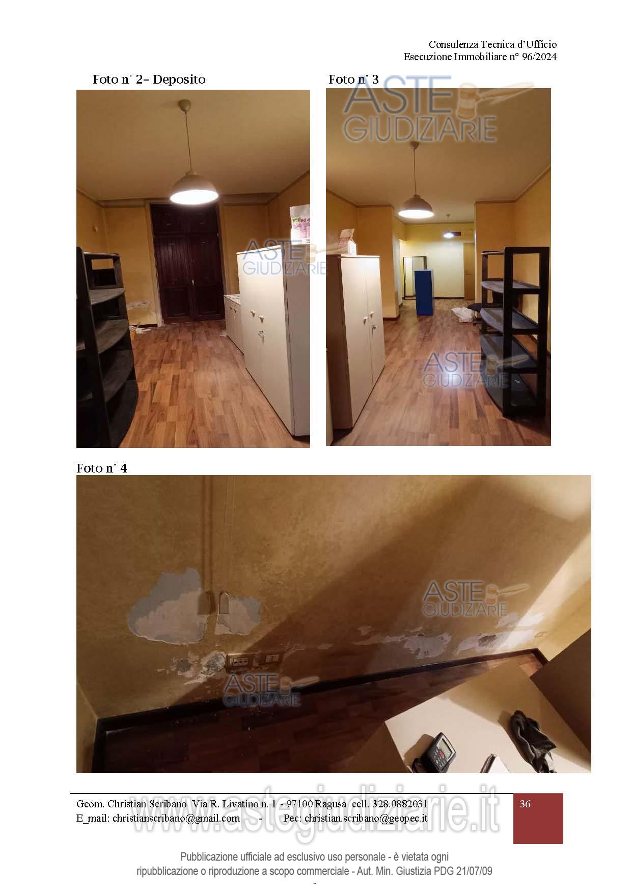 Vendita all'asta Senza incanto, con gara telematica sincrona mista - LOTTO 2: LOTTO 2Diritto di proprietà deposito (urbanisticamente abitazione) ubicato in Vittoria (RG), via Generale Cascino n. 6/B, distintoal Catasto Fabbricati del Comune di Vittoria al foglio 206, particella 10174 sub 3, piano T (zona censuaria 1, categ. A/3,classe 3, cons. 6 vani, sup. cat mq. 131, R.C. € 325,37). Prezzo base € 48.836,00 (offerta minima € 36.627,00). Data vendita 02/07/2026 ore 17:15. Professionista delegato alla vendita: Avv. Silvia Distefano.