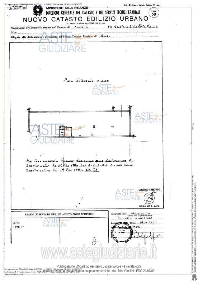Vendita all'asta Senza incanto, con gara telematica asincrona - LOTTO UNICO: Vollständiges Eigentumsrecht an 4 Immobilien-Einheiten im Untergeschoss des größten Gebäudes mit Zugang sowohl von der Via Velletri Nr. 2 als auch von der Via Porta Pia Nr. 2, davon zwei als Labor und zwei als Geschäftseinheit genutzt. . Prezzo base € 296.400,00 (offerta minima € 222.300,00). Data inizio operazioni di vendita: 04/06/2026 ore 12:00. Giudice Antonio Lacatena. Curatore Dott. Giuseppe Tammaccaro. Rif. Tribunale di Trani - Fallimentare (nuovo rito) n. 1/2020