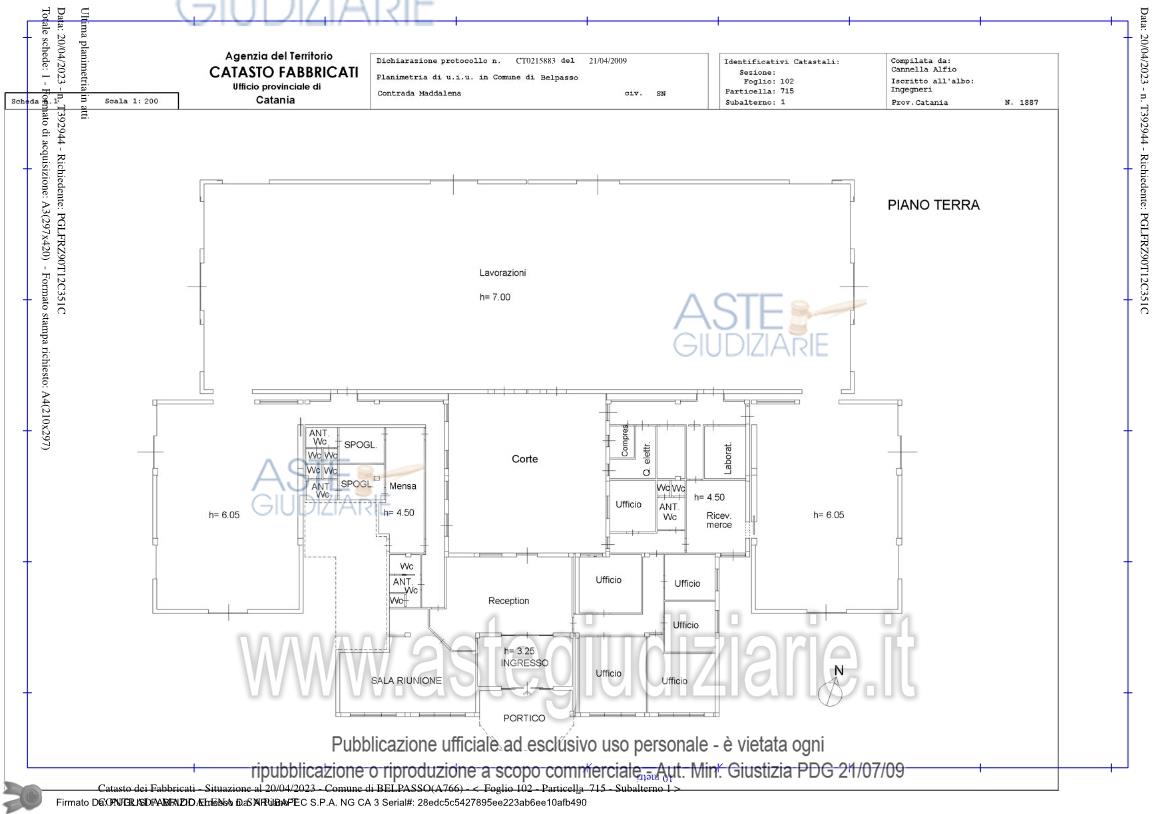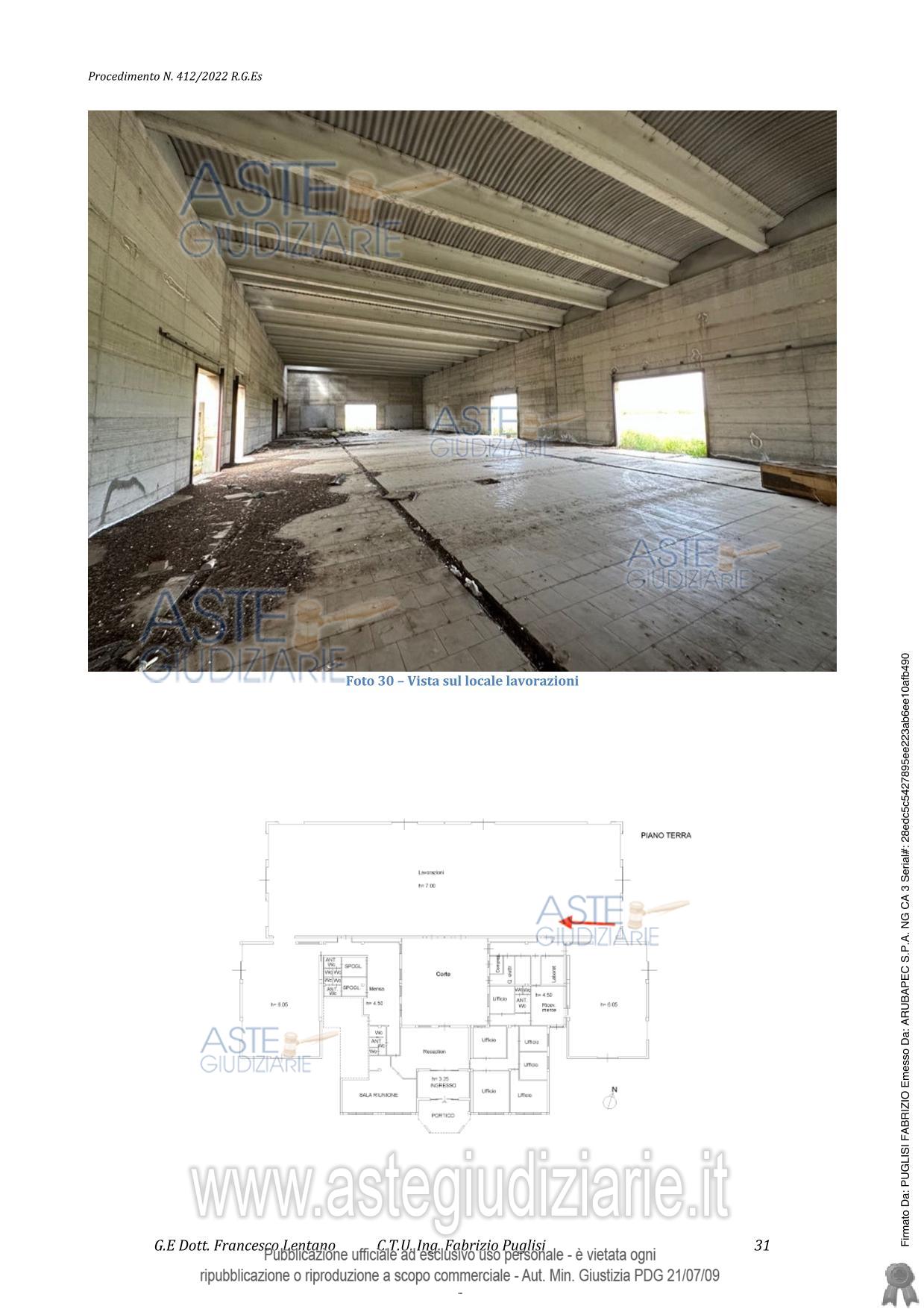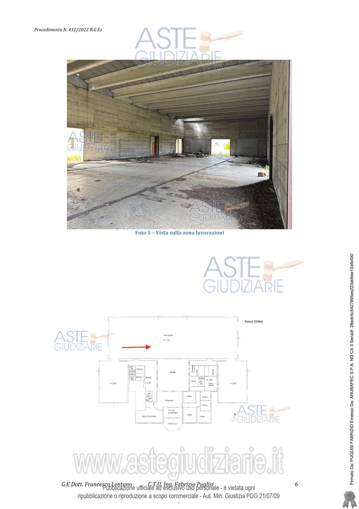 Vendita all'asta Senza incanto, con gara telematica sincrona mista - LOTTO UNICO: capannone con superficie commerciale di circa 1.801,00 m2, dotato di servizi, con relativa corte ed appartamento per il custode costituito da un ampio locale lavorazioni, due ampi magazzini, 8 bagni con relativi antibagni, locale mensa, due spogliatoi, reception, ingresso, portico, 4 disimpegno, locali compressore caldaia, lavoratorio, 6 uffici, zona ricezione merci e ripostiglio. Buona la luminosità. Scarse le condizioni di manutenzione, con gran parte degli ambienti da completare e rifinire. Prezzo base € 342.750,00 (offerta minima € 257.062,50). Data vendita 09/05/2026 ore 15:00. Professionista delegato alla vendita Avv. Pietro Rosso - Email "prosso@libero.it"; Cell. 3398111597; Tel. 3398111597. Custode Giudiziario Avv. Pietro Rosso - Email "prosso@libero.it"; Cell. 3398111597; Tel. 3398111597. Rif. Tribunale di Catania - Esecuzione immobiliare post legge 80 n. 412/2022
