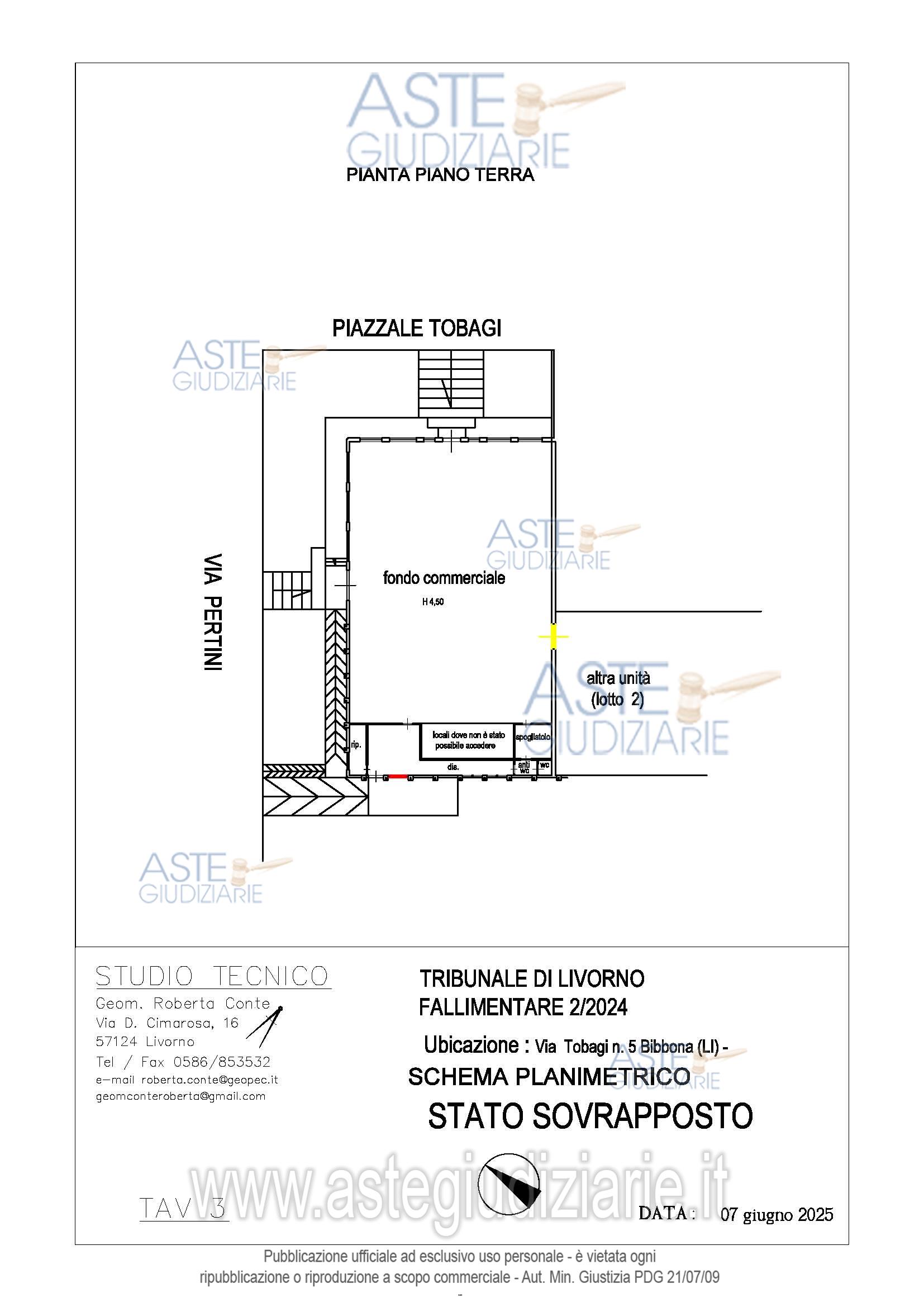 Vendita all'asta Senza incanto, con gara telematica asincrona - LOTTO 1: Capannone a destinazione commerciale oltre ad una area esterna. Prezzo base € 240.000,00 (offerta minima € 180.000,00). Data inizio operazioni di vendita: 04/03/2026 ore 10:00. Giudice Elisa Pinna. Custode Giudiziario Dott. Michele Lorenzini - Email "michele@lorenziniboni.it"; Tel. 0586684721. Curatore Dott. Michele Lorenzini - Email "michele@lorenziniboni.it". Rif. Tribunale di Livorno - Fallimentare (nuovo rito) n. 2/2024