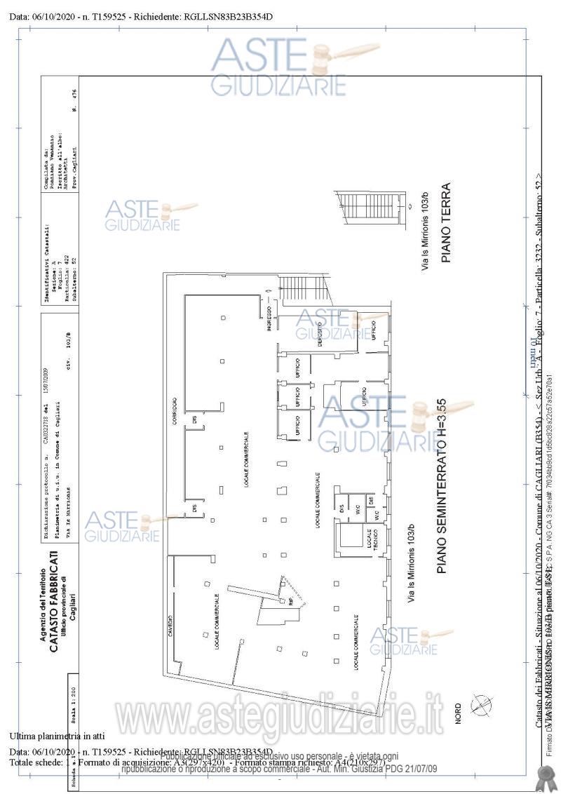 Vendita all'asta Senza incanto, con gara telematica asincrona - LOTTO UNICO: immobile sito in via Is Mirrionis 103: piano terra e seminterrato definito come bene comune non censibile subalterno 3 e Imobile sito in Via Is Mirrionis 103/b destinato a locale commerciale subalterno 52 ,. Prezzo base € 95.510,02 (offerta minima € 71.632,51). Data inizio operazioni di vendita: 12/05/2026 ore 15:30. Professionista delegato alla vendita Dott. Giuseppe Palomba - Email "gpalomba@tiscali.it"; Tel. 07044093. Custode Giudiziario Ivg Cagliari - Email "ivg.visiteimmobili@tiscali.it"; Tel. 0702299036. Rif. Tribunale di Cagliari - Esecuzione immobiliare post legge 80 n. 202/2018