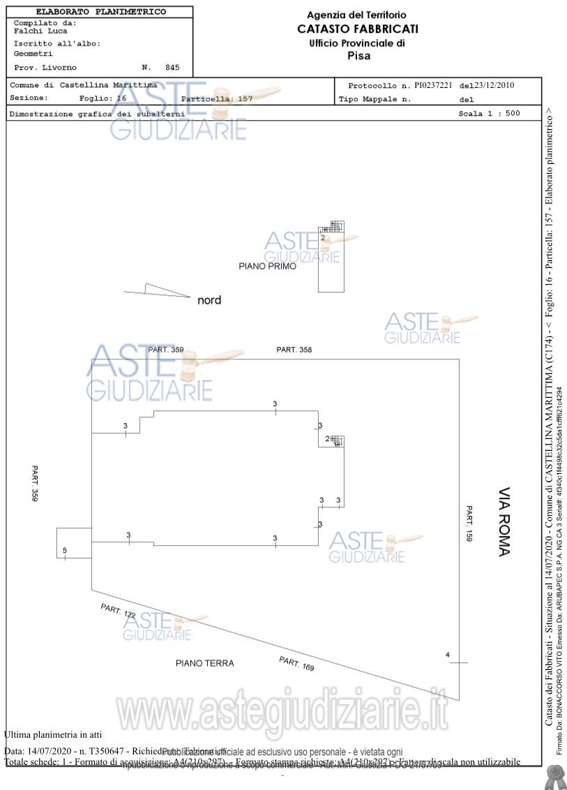 Vendita in attesa dell'emissione del nuovo bando d'asta. LOTTO UNICO: Piena ed esclusiva proprietà dell'intero di un fabbricato per attività commerciale, un appartamento ad uso abitazione, un locale ad uso deposito, una ampia corte comune alle tre predette unità immobiliari, oltre ad impianto fotovoltaico, siti nel Comune di Castellina Marittima (PI), Località Le Badie, Via Roma n. 97 -99. Ultimo prezzo base € 547.500,00 (offerta minima € 410.625,00). Giudice Dott. Simona Capurso. Professionista delegato alla vendita Not. Valentina Andreini - Email "vandreini@notariato.it"; Tel. 0586829830. Custode Giudiziario Dott. Maurizio Caschili - Email "m.caschili@studiocaschili.it"; Cell. 3335664941; Tel. 0586812499. Rif. Tribunale di Livorno - Esecuzione immobiliare post legge 80 n. 240/2019