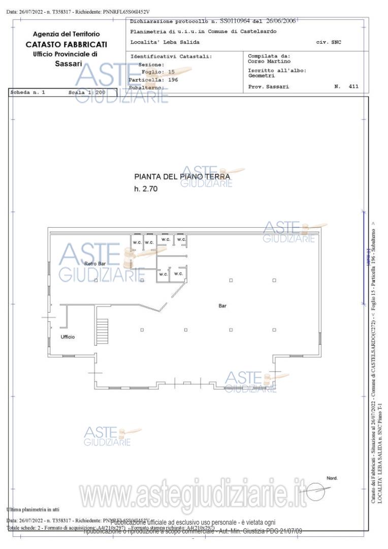 Vendita in attesa dell'emissione del nuovo bando d'asta. LOTTO UNICO: 1. Ristorante a Castelsardo (SS) Località L'Eba Salida S.P n 90 Castelsardo-Santa Teresa Gallura, piano T – 1 costituito da corpo di fabbrica su due livelli con destinazione d'uso commerciale F. 15 Map 196 2. Terreno ubicato a Castelsardo (SS) - Loc. L'Eba Salida costituito da due porzioni di terreno agricolo identificate al F. 15 Mappale 225 Porzione AA e AB, Porzione AA della superficie di mq. 7988 3. Terreno ubicato a Castelsardo (SS) - Loc. L'Eba Salida S.P. N 90 F. 15 Map 43 superficie mq. 54347 . Ultimo prezzo base € 341.066,41 (offerta minima € 255.799,80). Giudice Claudia Manconi. Professionista delegato alla vendita Avv. Riccardo Carmelita - Email "riccardocarmelita@gmail.com"; Cell. 3408085868. Custode Giudiziario Istituto Vendite Giudiziarie Sassari - Email "visitaivgsassari@gmail.com"; Tel. 079260228. Rif. Tribunale di Sassari - Esecuzione immobiliare post legge 80 n. 131/2021