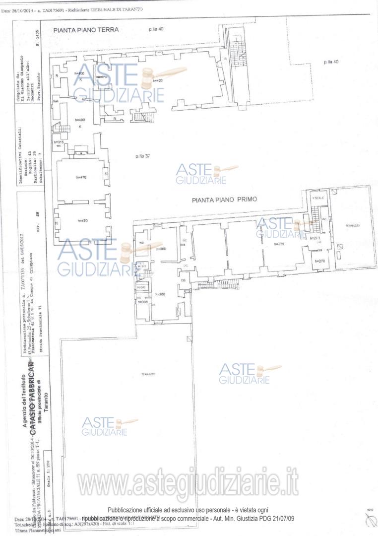 Vendita all'asta Senza incanto, con gara telematica asincrona - LOTTO 1: Piena proprietà di antico complesso immobiliare, risalente al XVI secolo, composto da masseria, che si sviluppa su due livelli, totalmente ristrutturata che, unitamente ad un corpo di fabbrica di più recente realizzazione, costituiscono il centro aziendale di una attività agricola orientata alla coltivazione di vigneti, ciliegeti, oliveti, seminativi e pascoli arborati (macchia mediterranea). Prezzo base € 901.757,81 (offerta minima € 676.318,35). Data inizio operazioni di vendita: 14/04/2026 ore 16:00. Giudice Paiano. Professionista delegato alla vendita Avv. Sara Gisonda - Email "avvsaragisonda@gmail.com"; Cell. 3204672569; Tel. 0999941003. Custode Giudiziario Ivg Taranto - Email "ivgta.visiteimmobili@gmail.com". Rif. Tribunale di Taranto - Esecuzione immobiliare post legge 80 n. 53/2014