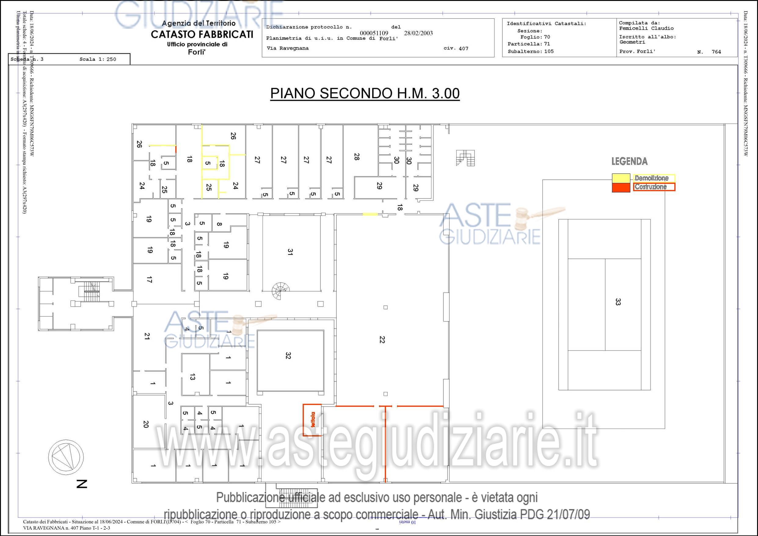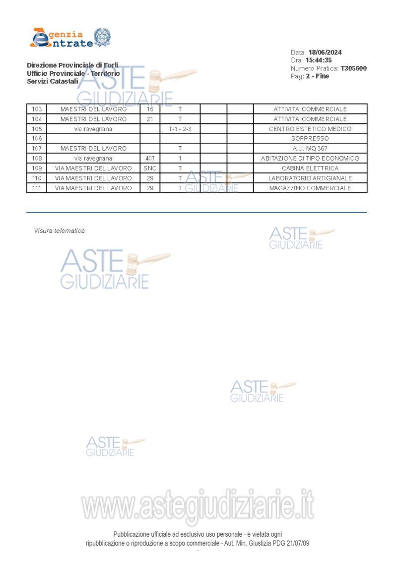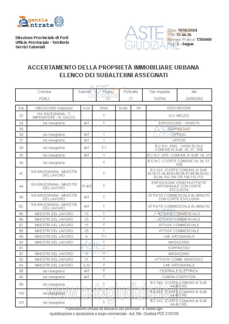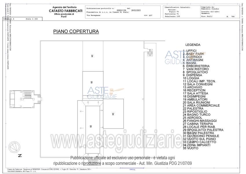 Vendita all'asta Senza incanto, con gara telematica asincrona - LOTTO UNICO: 1/1 di porzione di fabbricato ad uso commerciale costituita da unità immobiliare (centro estetico medico, con palestra e servizi, zona ristoro, sala convegni, uffici e servizi) che si sviluppa su quattro livelli fuori terra, con distribuzione dei locali ai piani primo e secondo, ingresso al piano terra e zona impianti al piano terzo/copertura, oltre la proporzionale quota di comproprietà sulle parti comuni ai sensi di legge. Superficie commerciale tot. mq. 4050 ca. Libero, nella disponibilità del Custode. Prezzo base € 941.625,00 (offerta minima € 706.218,75). Data inizio operazioni di vendita: 03/03/2026 ore 11:30. Giudice Fabio Santoro. Professionista delegato alla vendita Not. Roberto Scotto Di Clemente - Email "esecuzioninotai@gmail.com"; Tel. 054320059. Custode Giudiziario Ivg Forli’ Srl - Email "ivg.forli@gmail.com"; Tel. 0543473480. Rif. Tribunale di Forlì - Espropriazione immobiliare (cartabia) n. 100/2023