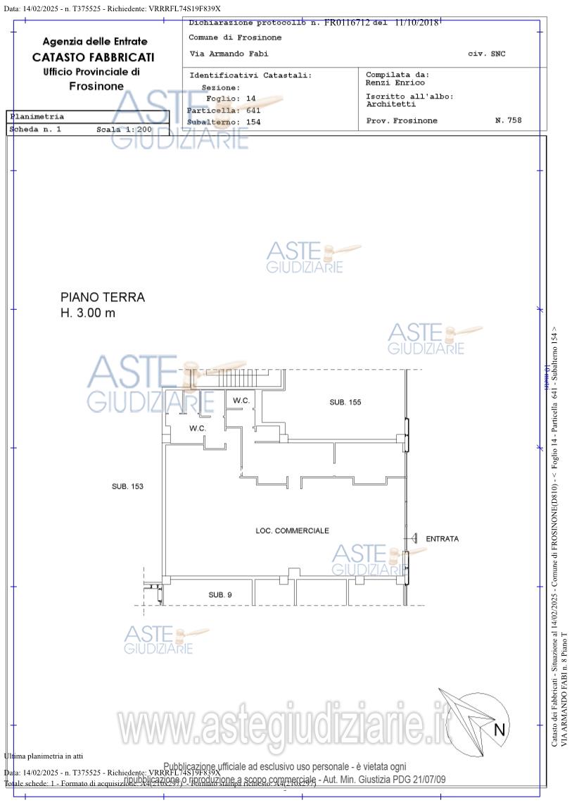 Vendita all'asta Senza incanto, con gara telematica asincrona - LOTTO 3: Negozio ubicato a Frosinone (FR) - Via Armando Fabi L'unità immobiliare foglio 14 part.641 sub.154, fa parte di uno stabile sito in zona Aeroporto del Comune di Frosinone nelle vicinanze si trova anche il nuovo ospedale. L'unità immobiliare ha destinazione d'uso commerciale e al suo interno ospita un ristorante. Immobile locato con contratto opponibile (vedi relazione CTU).
