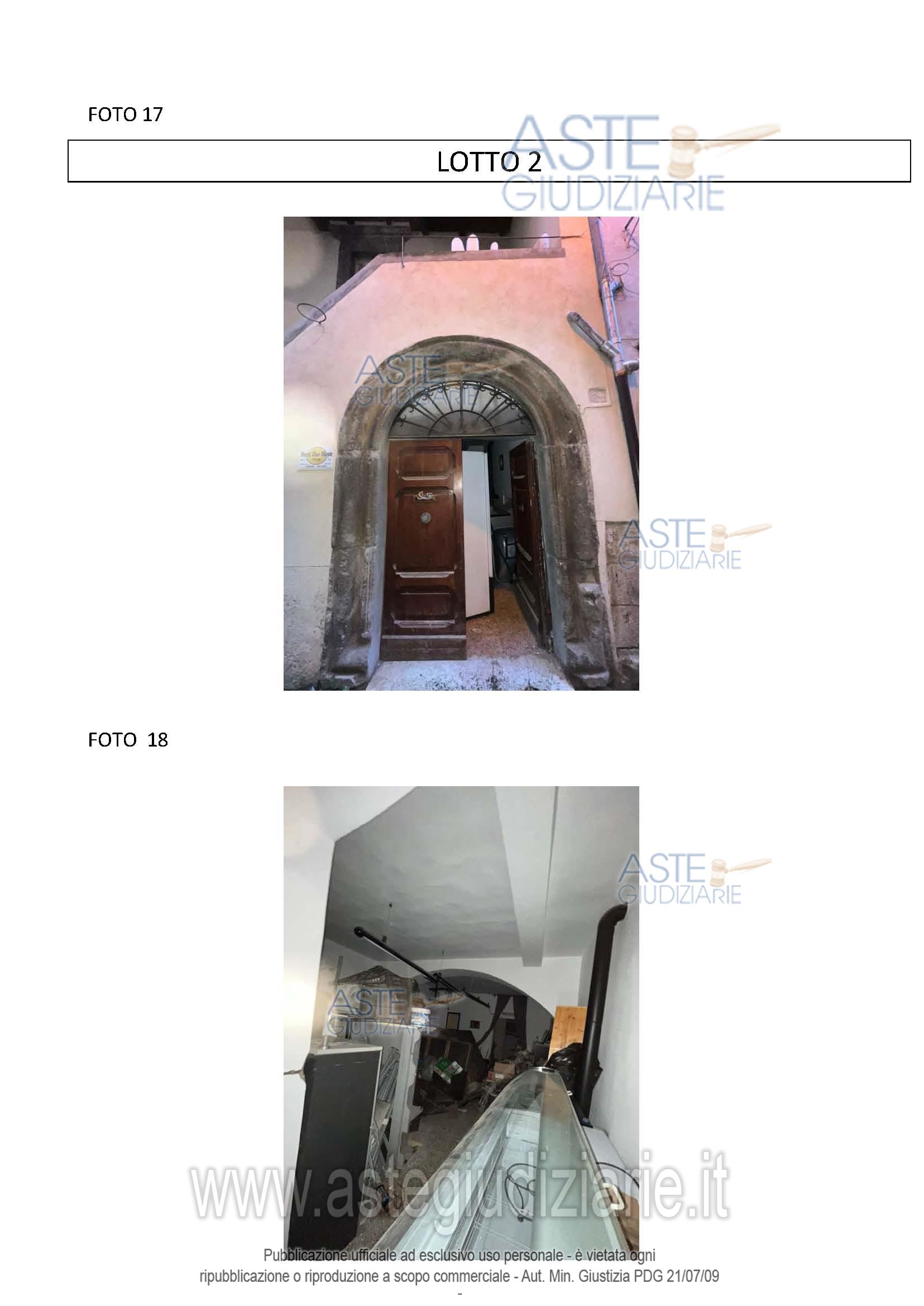 Vendita all'asta Senza incanto, con gara telematica asincrona - LOTTO 2: Diritti di piena proprietà pari a 1/1: Locale comm.le di sup.totale utile di mq 53.75 per un'altezza utile interna media di 3.55 m con annessa cantina posta al piano S1 e S2 per una sup.totale utile di mq 45.17. Al piano terra è presente un w.c. e un vano ad uso commerciale e un magazzino, al piano seminterrato è presente un locale cantina. NCEU Comune di Gallese, Via Cavour n. 3 : fg 15, p.lla 850, sub. 1, cat.C/1, cl.2, cons. 49 mq, r.c. € 432,74. Per maggiori dettagli si rimanda alla perizia del tecnico. Prezzo base € 15.075,00 (offerta minima € 11.306,25). Data inizio operazioni di vendita: 26/11/2025 ore 11:00. Giudice Dott. Federico Bonato. Professionista delegato alla vendita Dott. Roberto Migliorati. Custode Giudiziario Dott. Roberto Migliorati - Email "studio_migliorati@libero.it". Rif. Tribunale di Viterbo - Esecuzione immobiliare post legge 80 n. 189/2022