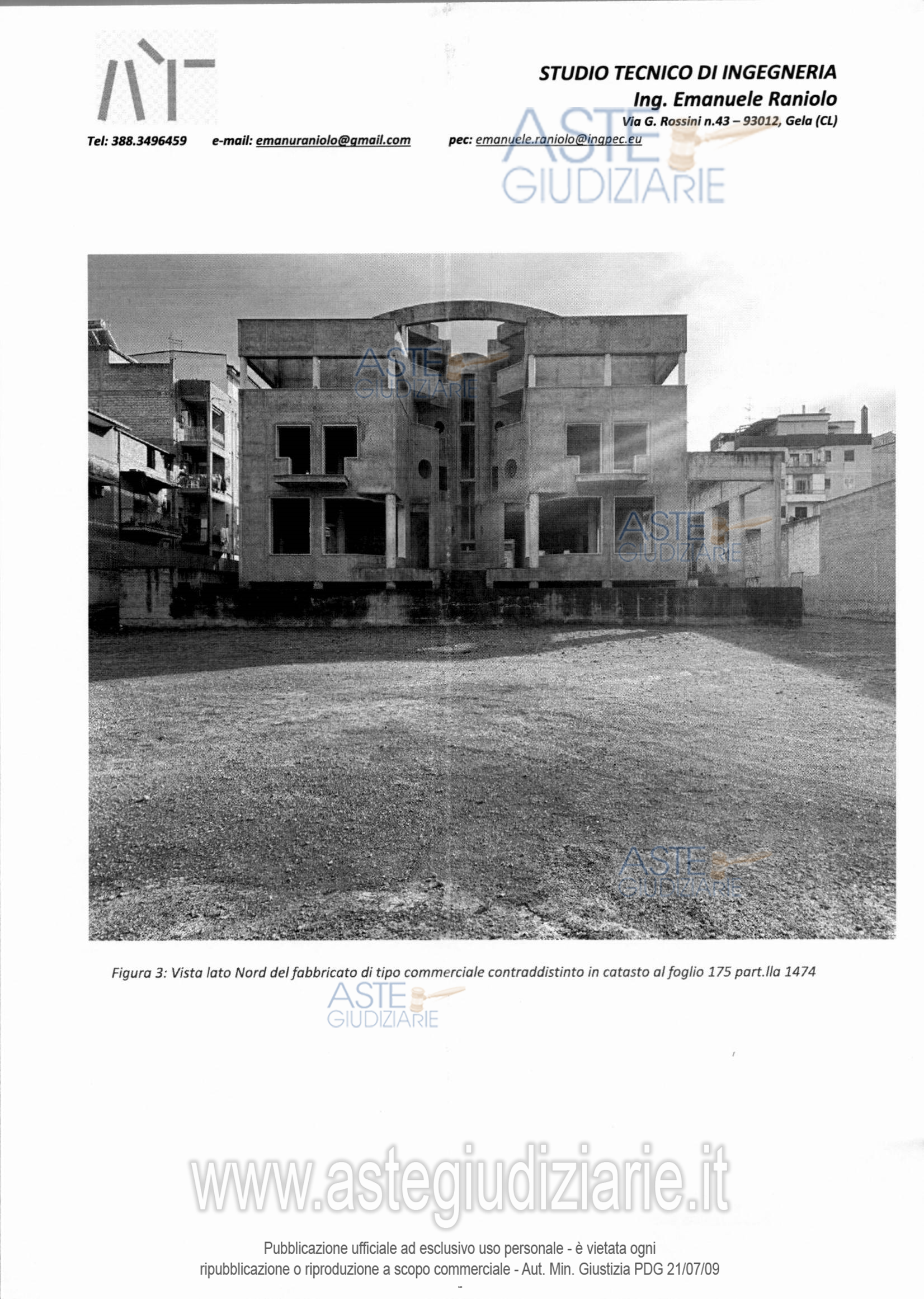 Vendita all'asta Senza incanto, con gara telematica sincrona mista - LOTTO 1: Edificio allo stato grezzo adibito ad attività commerciale per un totale di mq 3.031 , sito nel comune di Gela, via Butera, composto da piano seminterrato per uso parcheggi, piano terra attività commerciale e piano primo e secondo , uffici. Prezzo base € 1.363.950,00 (offerta minima € 1.022.962,50). Data vendita 05/05/2026 ore 15:00. Professionista delegato alla vendita Avv. Margherita Giurato - Email "studiogiurato01@gmail.com"; Tel. 3669708052. Custode Giudiziario Avv. Margherita Giurato - Email "studiogiurato01@gmail.com"; Tel. 3669708052. Rif. Tribunale di Gela - Espropriazione immobiliare (cartabia) n. 49/2023