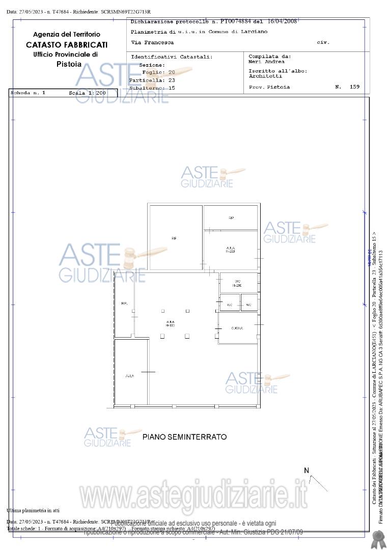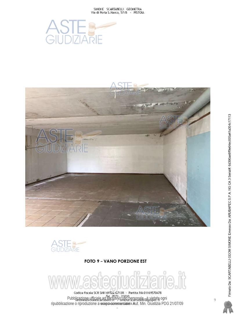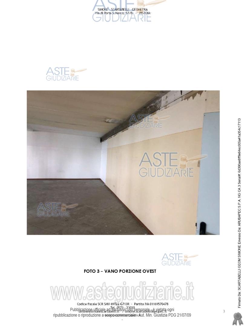 Vendita all'asta Senza incanto, con gara telematica asincrona - LOTTO 5: Fondo a destinazione commerciale posto al piano seminterrato. Prezzo base € 71.000,00 (offerta minima € 53.250,00). Data inizio operazioni di vendita: 04/02/2026 ore 11:00. Professionista delegato alla vendita Avv. Marianna Pugliese - Email "marianna_pugliese@yahoo.it"; Tel. 0573368960. Custode Giudiziario Isveg - Email "prenota.pt@isveg.it"; Tel. 0573308256. Rif. Tribunale di Pistoia - Esecuzione immobiliare post legge 80 n. 165/2022