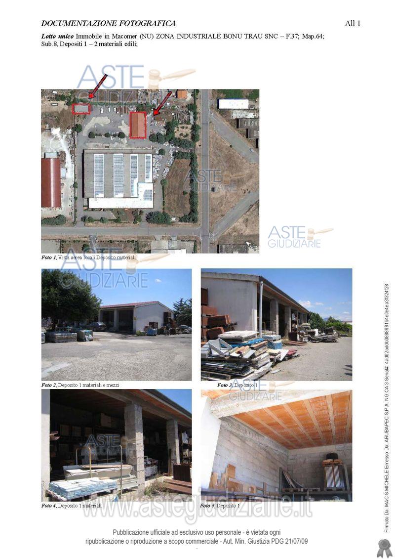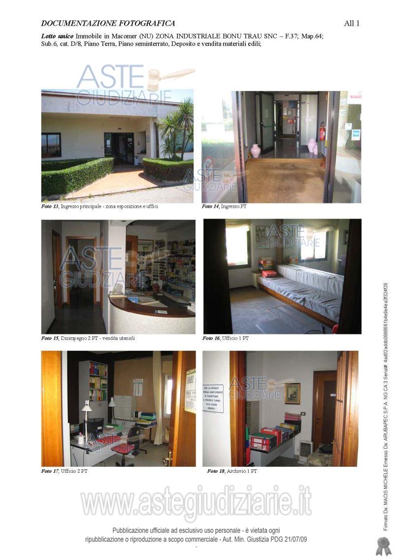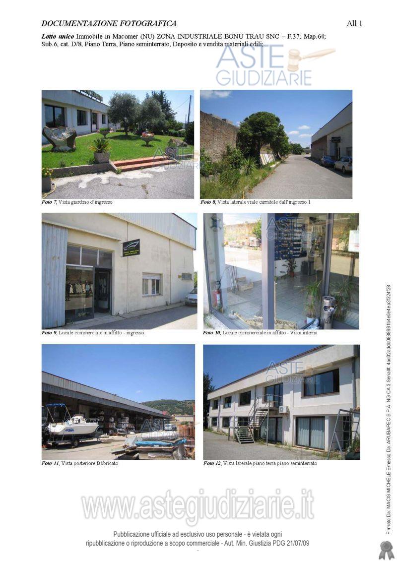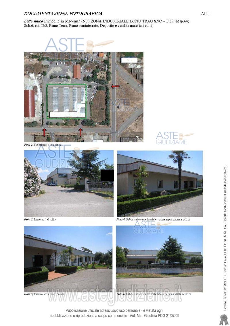Vendita all'asta Senza incanto, con gara telematica sincrona - LOTTO UNICO: lotto unico: a) piena proprietà degli immobili siti in Macomer, censiti nel N.C.E.U. al F. 37, part 64, sub 6, Cat. D/8, piano S1-T, sub 8 (derivante dal frazionamento del sub 7), Cat. D/8, piano T, sub 9 (derivante dal frazionamento del sub 7), Cat. D/1, piano T, sub 10 (derivante dal frazionamento del sub 7), bcnc, piano T; b) quota pari a 1/1 della nuda proprietà dell'immobile sito in Macomer, censito nel N.C.E.U. al F. 37, part 64, sub 12 (derivante dal frazionamento del sub 7), Cat. D/1, piano T-1. Prezzo base € 580.032,00 (offerta minima € 435.024,00). Data vendita 19/05/2026 ore 17:00. Professionista delegato alla vendita Avv. Enrico Damele - Email "enricodamele@gmail.com"; Tel. 3297474480. Custode Giudiziario Ivg Sardegna Fresi - Email "ivg.oristano@libero.it"; Tel. 079630505. Rif. Tribunale di Oristano - Esecuzione immobiliare post legge 80 n. 34/2017