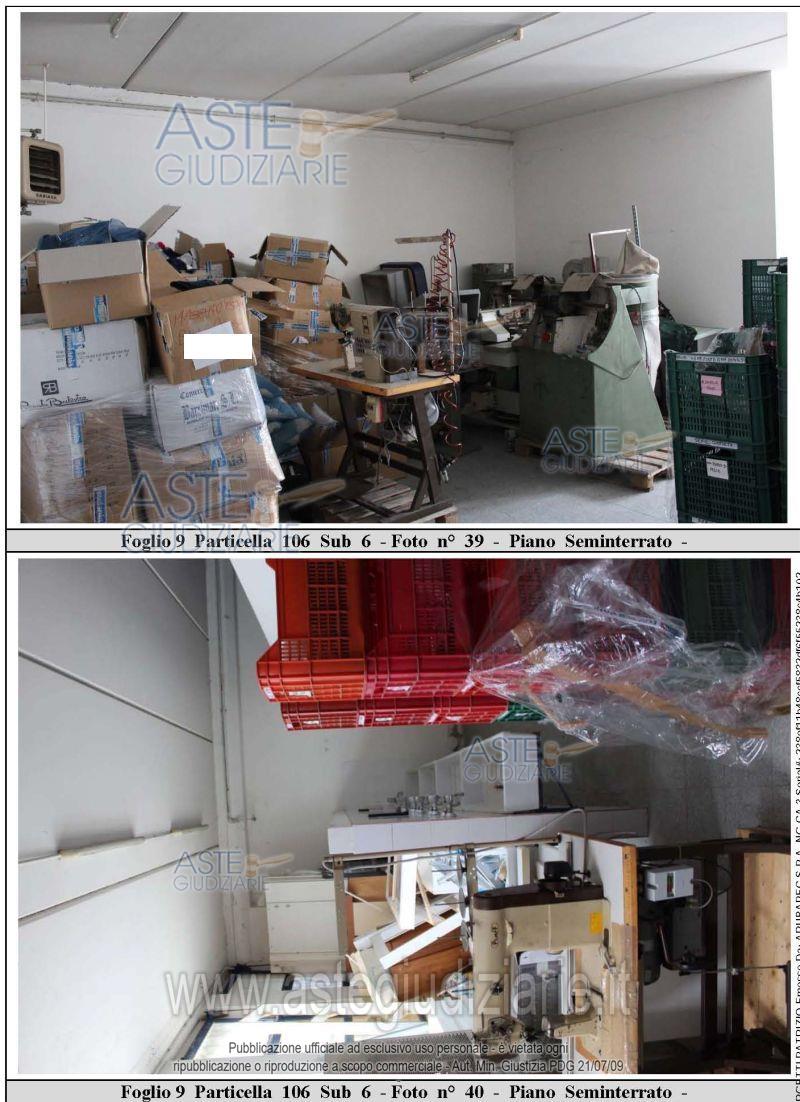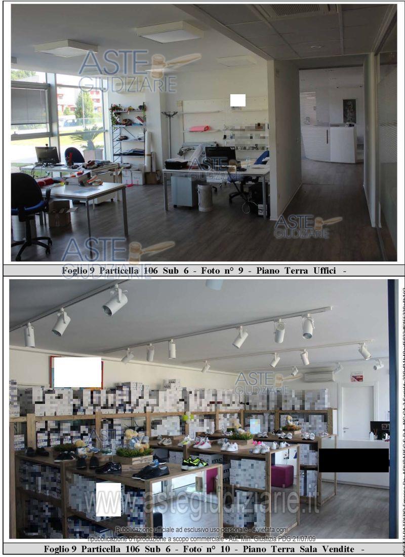 LOTTO UNICO: Vollständiges Eigentumsrecht an der Immobilie mit Zugang von der Via Enrico Fermi Nr. 1 bestehend aus: - WERKSTATT, bestehend aus einem Hauptgebäude mit zwei Obergeschossen und einem Untergeschoss sowie zwei Nebengebäuden, die als Lagerfläche von insgesamt 5.776,50 m² genutzt werden; genauer gesagt: Im Untergeschoss Flur, ein Raum für medizinische Untersuchungen mit WC, zwei Umkleideräume, ein Esszimmer, zwei Lager-/ Lagerhallen mit externem Zugang und einem Vordach für das Be- und Entladen; im Erdgeschoss drei Räume: Direktionsbereich unterteilt in Eingang mit Empfang, Ausstellungssaal, Speisesaal, Vertriebsbüro, Besprechungsraum, Arbeitsvorbereitungsbüro, Klassifizierungsbüro, Modelsaal, Lager und Toiletten, Direktverkaufszone mit entsprechendem Büro und Toiletten; Produktionsbereich mit großem Labor von 2.000 m² und Räumen für Toiletten und Umkleideräume; Lagerbereich mit zwei Hauptbereichen von ca. 562,30 m² und ca. 572,50 m², die miteinander durch zwei Brandschutztüren verbunden sind, sowie Räume für Toiletten und Umkleideräume, Zugangstreppe zum ersten Stock auf der Südseite und drei Abstellräume; im ersten Stock zwei deutlich voneinander abgegrenzte Blöcke; -WOHNUNG / HAUSMEISTERWOHNUNG im Untergeschoss mit eigenem Eingang, bestehend aus Eingangsloggia, Eingang, Wohnküche, Flur, zwei Schlafzimmern und einem fensterlosen Bad; -DACHTERRASSE als Deckung des Teils, der als Labor, Toiletten und Direktion dient; -GEMEINSAMER INNENHOF für die oben genannten Werkstatt-, Hausmeisterwohnungs- und Dachterrasen-Einheiten; -LANDSTREIFEN von 30 m², dessen städtebauliche Bestimmung in Verkehrsflächen fällt, Teil der Straße und des Gehwegs entlang der Südseite der Parzelle 106. Ultimo prezzo base € 1.518.732,00 (offerta minima € 1.139.049,00). Vendita in attesa dell'emissione del nuovo bando d'asta. Giudice Dott. Francesca Calagna. Curatore Dott. Carlo Sansonetti. Rif. Tribunale di Ascoli Piceno - Fallimentare (nuovo rito) n. 16/2021