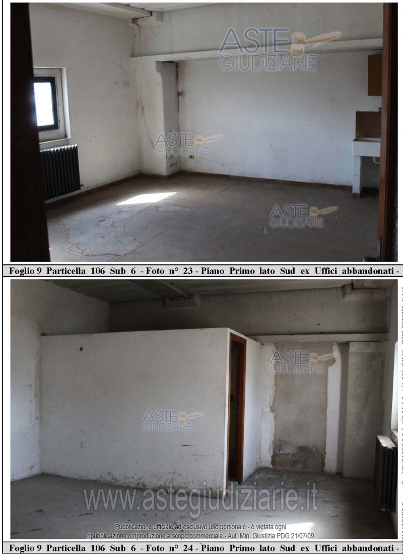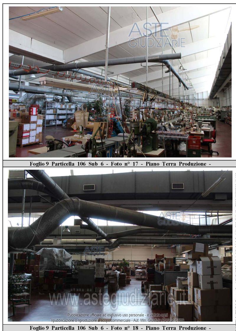 LOTTO UNICO: Plein droit de propriété sur l'unité immobilière accessible depuis Via Enrico Fermi n°1, composée de : - USINE composée d'un bâtiment principal sur deux étages hors-sol et un sous-sol, ainsi que de deux annexes utilisées comme entrepôts pour une surface totale de 5 776,50 mètres carrés, plus précisément composée comme suit : au sous-sol, un dégagement, une salle pour les visites médicales avec WC, deux vestiaires, une salle de restauration et deux dépôts/magasins avec accès extérieur et un porche pour le chargement et le déchargement ; au rez-de-chaussée, trois pièces : une zone directionnelle divisée en un hall avec réception, une salle d'exposition pour les modèles, une salle de restauration, un bureau commercial, une salle de réunion, un bureau d'industrialisation, un bureau de classification, une salle de modelage, un magasin et des toilettes, un point de vente direct avec son bureau et ses toilettes ; une zone de production composée d'un grand atelier de 2000 mètres carrés et de locaux utilisés comme services sanitaires et vestiaires ; une zone d'entrepôt composée de deux pièces principales d'environ 562,30 mètres carrés pour l'une et 572,50 mètres carrés pour l'autre, communiquant entre elles par deux portes coupe-feu, ainsi que des locaux utilisés comme services sanitaires et vestiaires, un escalie, un local pour accéder au premier étage du côté sud et trois débarras ; au premier étage, de deux blocs distincts l'un de l'autre ; - APPARTEMENT/MAISON DE GARDIEN au sous-sol avec entrée indépendante composé d'un porche d'entrée, d'une entrée, d'un séjour-cuisine, d'un dégagement, de deux chambres et d'une salle de bain aveugle ; - TOIT TERRASSE constituant la couverture de la partie utilisée comme atelier, toilettes et partie directionnelle ; - COUR commune aux unités susmentionnées, usine, maison de gardien, toit-terrasse ; - MORCEAU DE TERRAIN de 30 mètres carrés dont la destination urbanistique semble correspondre aux zones destinées à la circulation routière, faisant partie de la rue et du trottoir qui longent la zone sud de la parcelle 106. Ultimo prezzo base € 1.518.732,00 (offerta minima € 1.139.049,00). Vente en attente de l’émission d’un avis nouveau. Giudice Dott. Francesca Calagna. Curatore Dott. Carlo Sansonetti. Rif. Tribunale di Ascoli Piceno - Fallimentare (nuovo rito) n. 16/2021
