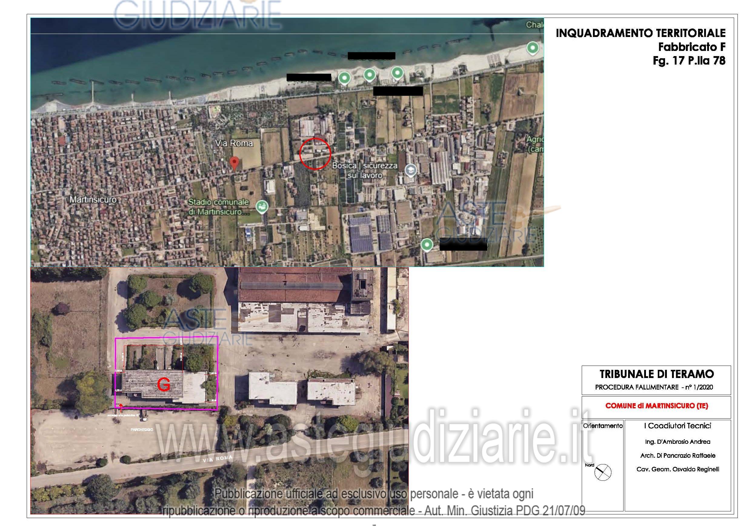 Vendita all'asta Senza incanto, con gara telematica asincrona - LOTTO 9: Fabbricato da cielo a terra composto da un piano seminterrato e due piani fuori terra con area pertinenziale della superficie di 11.860,00 mq fra coperto e scoperto.ubicato a Martinsicuro (TE) - Via Roma n. 391. Prezzo base € 1.400.000,00 (offerta minima € 1.400.000,00). Data inizio operazioni di vendita: 01/07/2026 ore 15:00. Custode Giudiziario: Geom. Osvaldo Reginelli - Email "prenotazionivisite@reginelliandpartners.com"; Cell. 339/8575170.