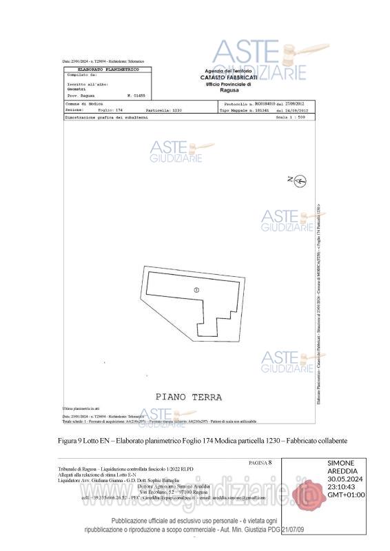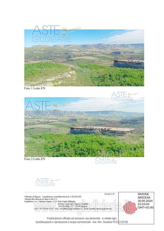 Vendita all'asta Senza incanto, con gara telematica asincrona - LOTTO 5: LOTTO 5 (E-N)-IN COMUNE DI MODICA (RG), C.da Montesano-Diritto di proprietà per la quota pari all’intero su fabbricato collabente con appezzamento di terreno della superficie catastale di mq.56549. Prezzo base € 10.726,18 (offerta minima € 10.726,18). Data inizio operazioni di vendita: 09/04/2026 ore 12:00. Giudice Dott. Sophie Battaglia. Rif. Tribunale di Ragusa - Liquidazione controllata(cci) n. 1/2022