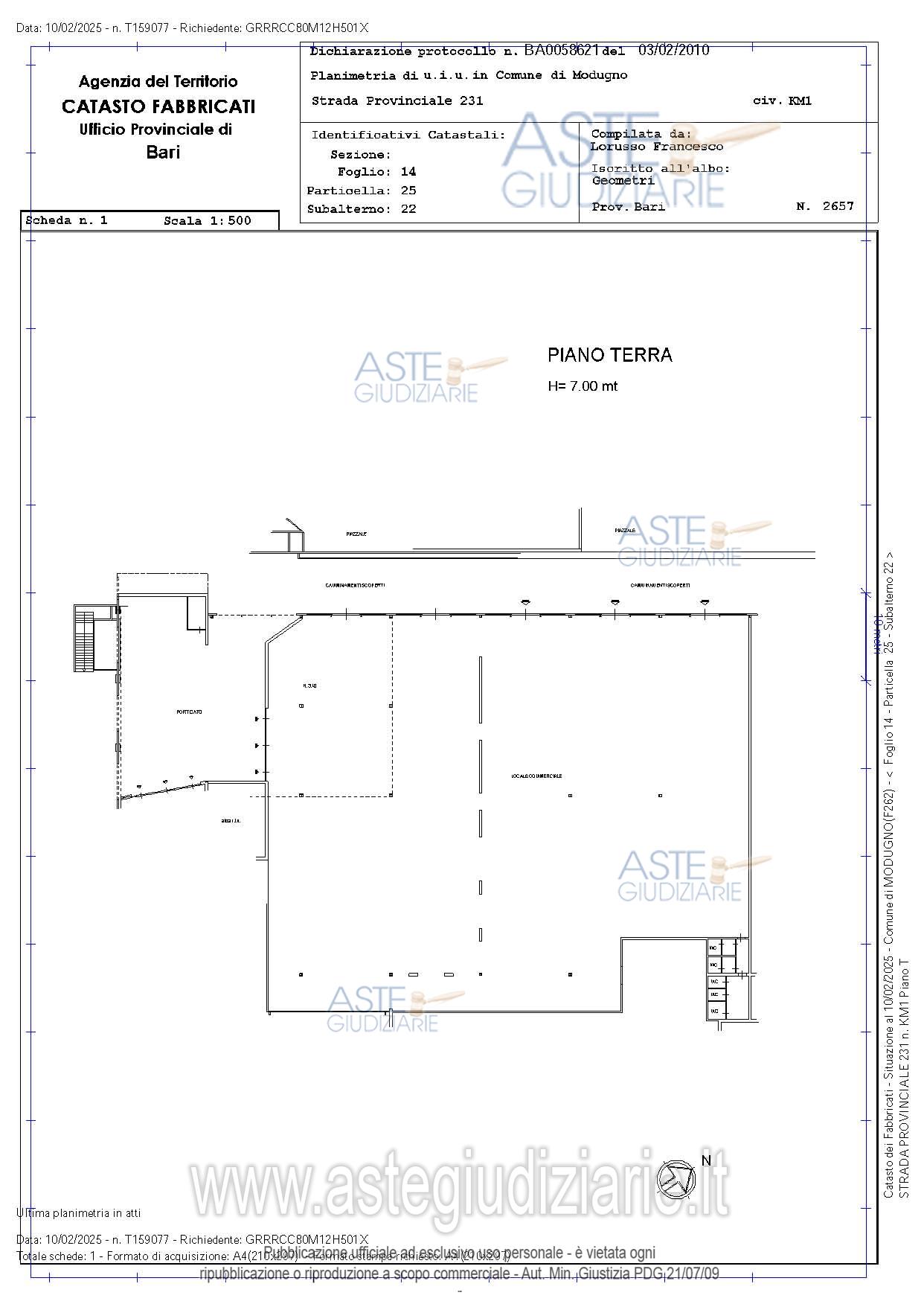Vendita all'asta Senza incanto, con gara telematica asincrona - LOTTO UNICO: Lotto che si articola in un grande complesso commerciale (piano interrato, pianto terra) con palazzina autonoma adiacente (piano terra, piano primo), un fabbricato retrostante che funge da parcheggio multipiano su tre livelli più il parcheggio sul lastrico solare. Il lotto è circondato da un’area scoperta con viabilità con estensione complessiva di circa mq. 36.400 e una superficie massima coperta di circa mq. 13.900. Prezzo base € 4.164.750,00 (offerta minima € 3.123.563,00). Data inizio operazioni di vendita: 10/07/2026 ore 10:00. Giudice Dott. Antonio Ruffino. Professionista delegato alla vendita Avv. Francesco Converti - Email "francescoconverti@libero.it". Custode Giudiziario Avv. Francesco Converti - Email "francescoconverti@libero.it". Rif. Tribunale di Bari - Espropriazione immobiliare (cartabia) n. 436/2024