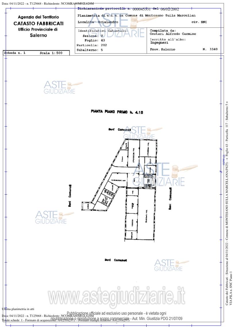 Vendita all'asta Senza incanto, con gara telematica asincrona - LOTTO UNICO: L’unità immobiliare oggetto della presente esecuzione immobiliare costituisce un complesso abbandonato da anni precedentemente adibito ad attività casearia denominato “Scialandro”. Detta struttura dista circa un chilometro e mezzo dal centro cittadino di Montesano sulla Marcellana ed è facilmente raggiungibile mediante una strada in parte asfaltata e in parte sterrata. L’intero complesso si sviluppa su di una superficie complessiva di 6.478,00 mq (di cui5.315,00 mq corte perimetrale). Prezzo base € 275.000,00 (offerta minima € 206.250,00). Data inizio operazioni di vendita: 14/04/2026 ore 12:00. Giudice Dott. Aniello Maria De Piano. Professionista delegato alla vendita Avv. Paolo Alfano - Email "paolo.alfano@gmail.com"; Cell. 3475175268. Custode Giudiziario Avv. Paolo Alfano - Email "paolo.alfano@gmail.com"; Cell. 3475175268. Rif. Tribunale di Lagonegro ex Tribunale di Sala Consilina - Esecuzione immobiliare post legge 80 n. 78/2007