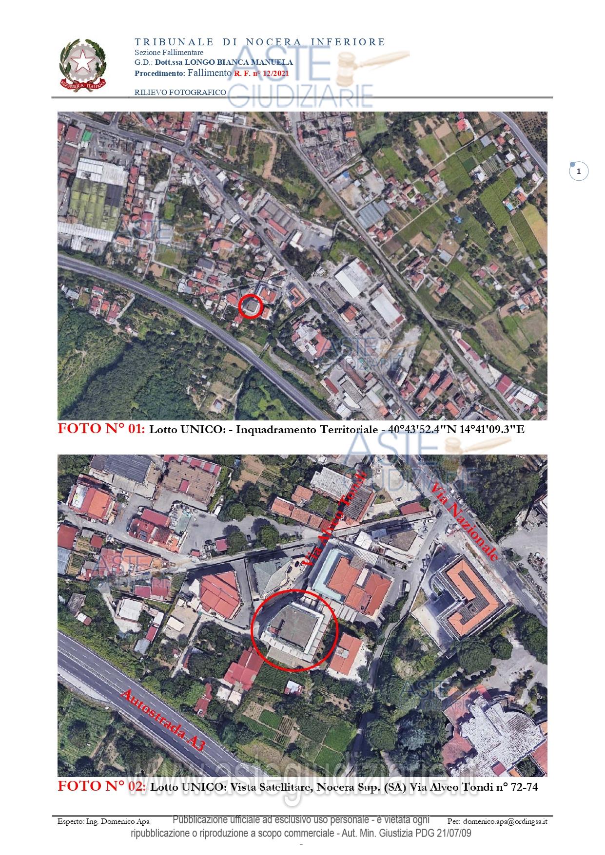 Vendita all'asta Competitiva, con gara telematica asincrona - LOTTO UNICO: Diritto di “piena ed esclusiva proprietà” su Fabbricato costruito e/o adattato per le speciali esigenze di un’attività commerciale e non suscettibile di destinazione diversa senza radicali trasformazioni sito nel Comune di Nocera Superiore (Sa), alla Via Alveo Tondi, nn. 72-74, piani S-T-1°-2°-3°. Prezzo base € 445.500,00 (offerta minima € 334.125,00). Data inizio operazioni di vendita: 11/12/2025 ore 16:00. Curatore Avv. Salvatore Carratu' - Email "studiocarratu@yahoo.it"; Tel. 089443787. Rif. Tribunale di Nocera Inferiore - Fallimentare (nuovo rito) n. 12/2021