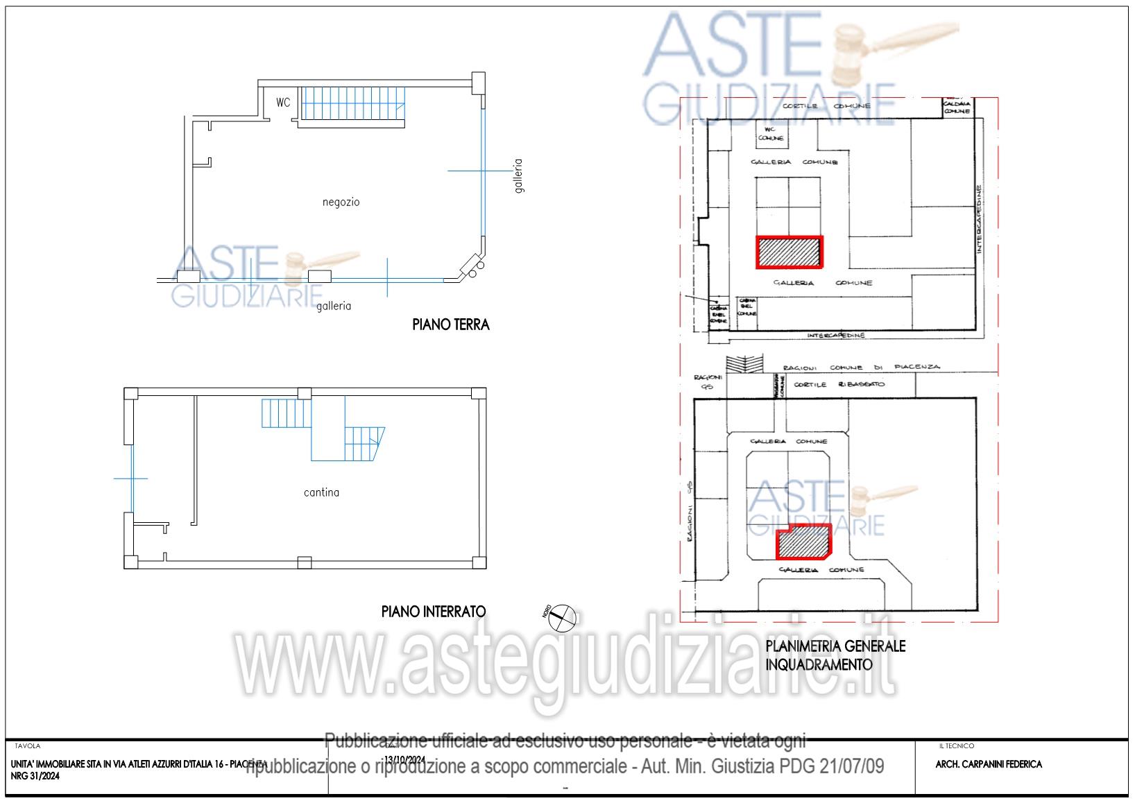 Vendita all'asta Senza incanto, con gara telematica asincrona - LOTTO UNICO: Negozio quartiere Infrangibile per la quota di 1/1 di piena proprietà. Prezzo base € 58.320,00 (offerta minima € 43.740,00). Data inizio operazioni di vendita: 16/04/2026 ore 15:00. Giudice Maria Rosaria Sciurpa. Professionista delegato alla vendita Avv. Sara Artivi - Email "sara.artivi@gmail.com". Custode Giudiziario Avv. Ilaria Rossi - Email "ilariarossi2004@libero.it"; Tel. 3207177945. Rif. Tribunale di Piacenza - Espropriazione immobiliare (cartabia) n. 31/2024