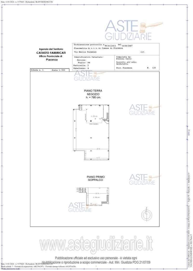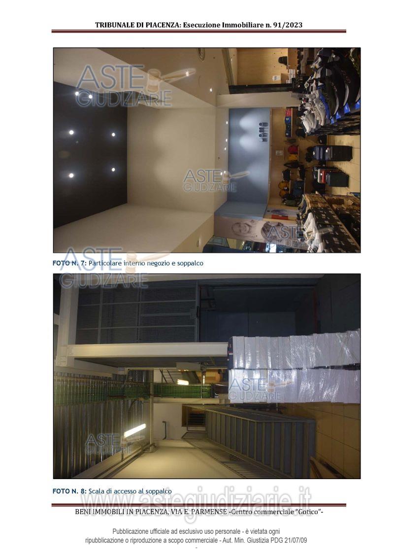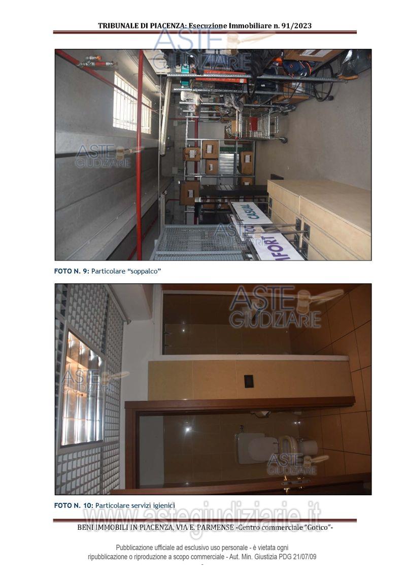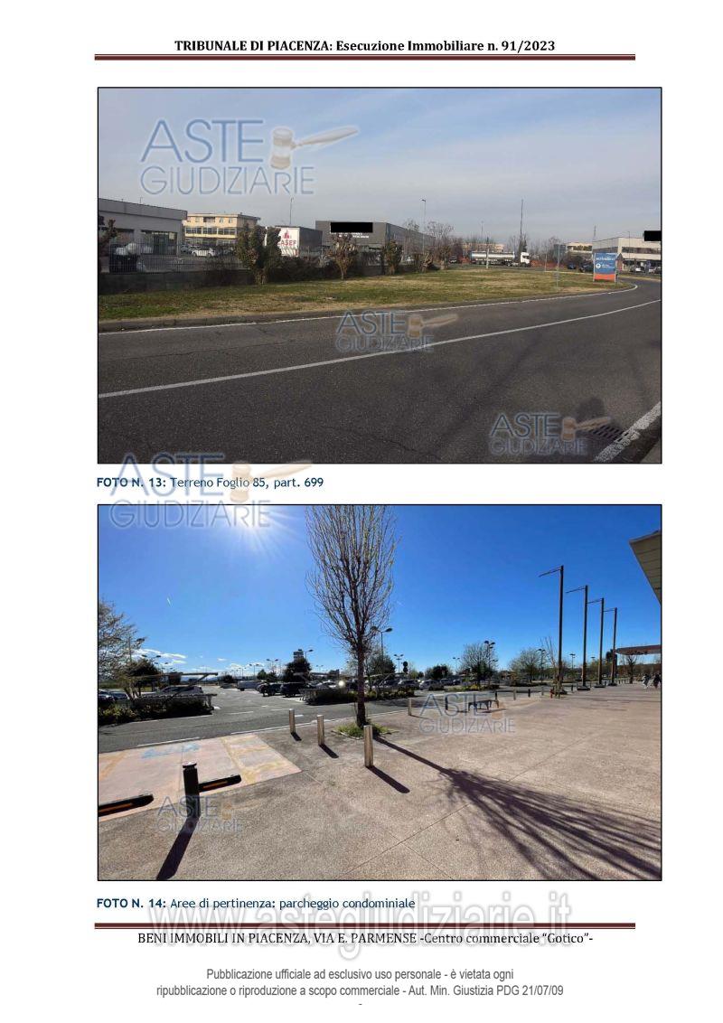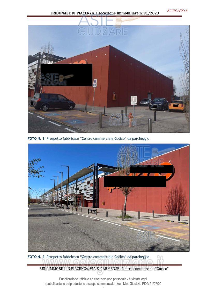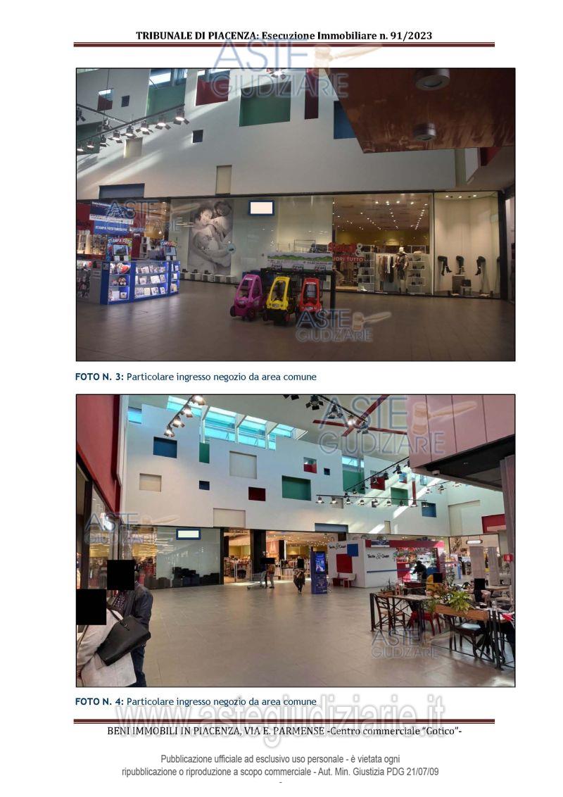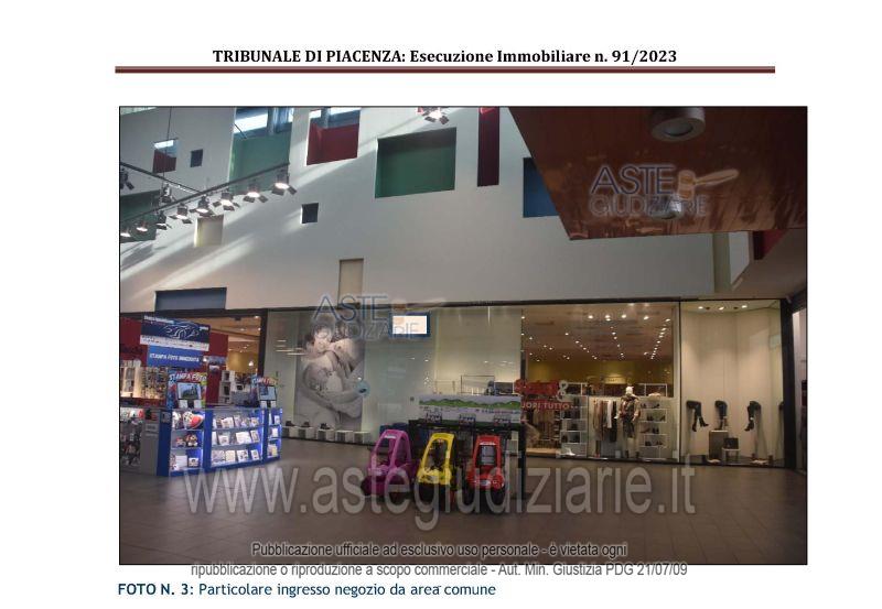 Vendita in attesa dell'emissione del nuovo bando d'asta. LOTTO 1: All'interno del Centro Commerciale Gotico: - piena proprietà di unità immobiliare ad uso negozio al piano terra con soppalco; - quota di comproprietà di 50,67/1.000 di unità ad uso ufficio a disposizione della direzione del "Centro Commerciale Gotico"; - quota di comproprietà di 50,67/1.000 di area di pertinenza a verde risultante dalla realizzazione della viabilità interna del complesso. Ultimo prezzo base € 1.785.300,00 (offerta minima € 1.338.975,00). Giudice Esecuzione Giudice. Professionista delegato alla vendita Not. Silvia Bricchi - Email "sbricchi@notariato.it". Custode Giudiziario Dott. Istituto Vendite Giudiziarie Di Parma E Piacenza - Email "immobiliparma@ivgparma.it"; Tel. 0521273762. Rif. Tribunale di Piacenza - Espropriazione immobiliare (cartabia) n. 91/2023
