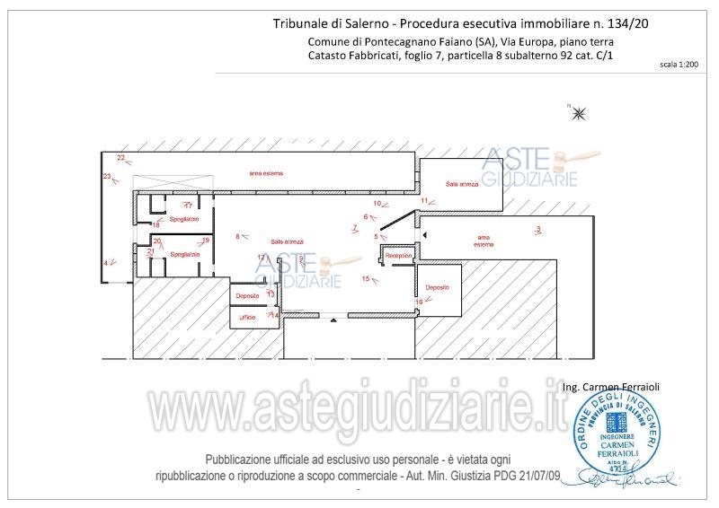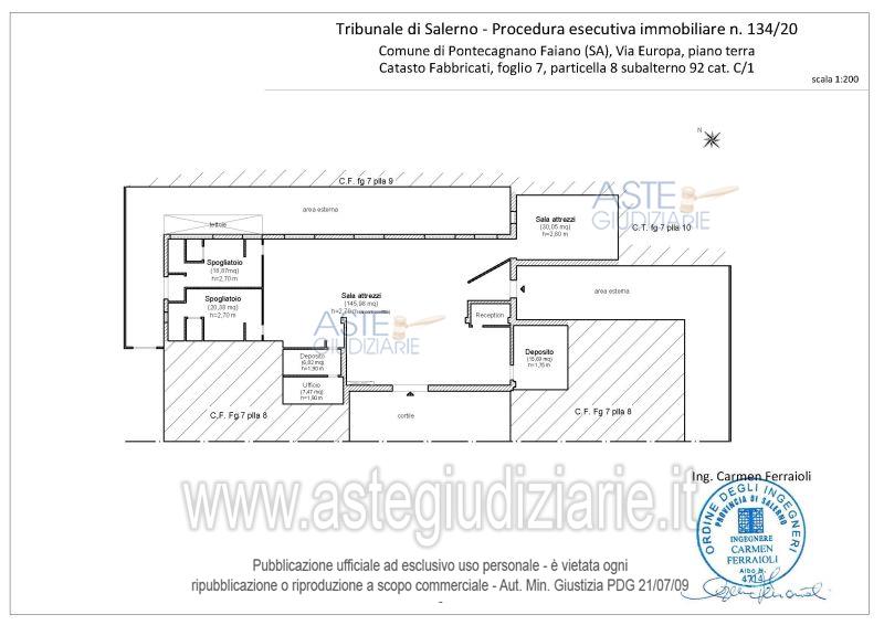Vendita all'asta Senza incanto, con gara telematica asincrona - LOTTO UNICO: Immobile adibito a palestra. Prezzo base € 183.000,00 (offerta minima € 137.250,00). Data inizio operazioni di vendita: 17/03/2026 ore 16:00. Professionista delegato alla vendita Avv. Andrea Rizzo. Custode Giudiziario Avv. Andrea Rizzo - Email "and.rizzo@virgilio.it". Rif. Tribunale di Salerno - Esecuzione immobiliare post legge 80 n. 134/2020