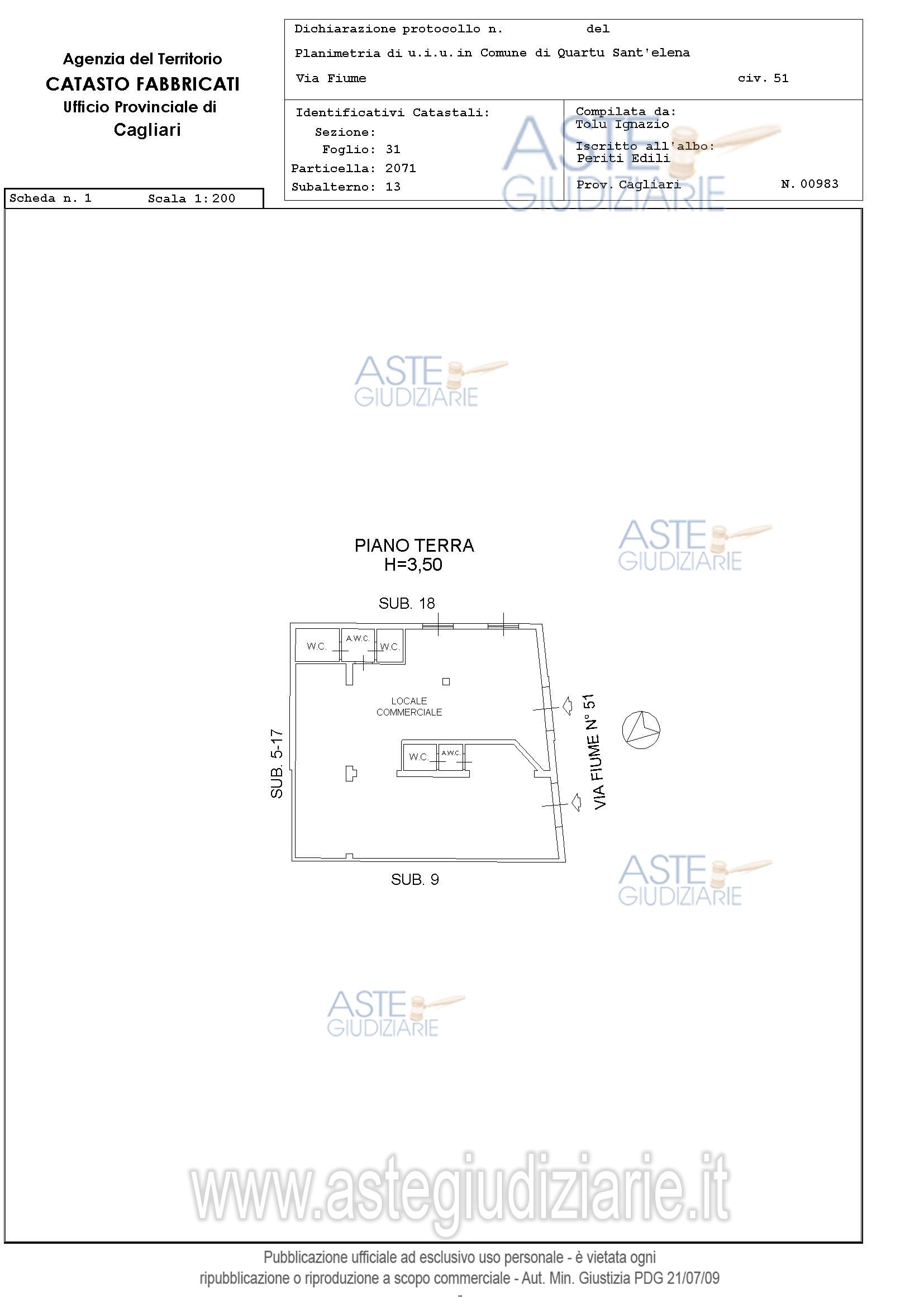 Vendita all'asta Senza incanto, con gara telematica asincrona - LOTTO 2: intero del diritto di proprietà del locale commerciale al piano terra del maggior fabbricato con accesso dalla Via Fiumen.51 e 53.composto da area principale, area bancone, servizi igienici, ripostiglio, oltre tre posti auto scoperti. Prezzo base € 117.504,00 (offerta minima € 88.128,00). Data inizio operazioni di vendita: 04/03/2026 ore 16:00. Giudice Valentina Frongia. Professionista delegato alla vendita Avv. Claudia Marras - Email "claudia.marras@tiscali.it"; Tel. 070656867. Custode Giudiziario Ivg Cagliari - Email "ivg.cagliari@tiscali.it"; Tel. 0702299036. Rif. Tribunale di Cagliari - Esecuzione immobiliare post legge 80 n. 319/2016