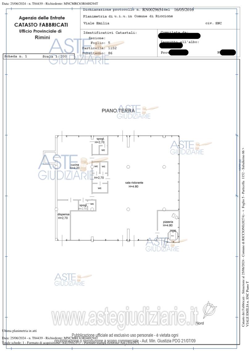 Vendita all'asta Senza incanto, con gara telematica asincrona - LOTTO 3: Piena proprietà su porzioni di fabbricato condominiale, denominato “Residenza Viale Emilia“, sito in RICCIONE, Viale Emilia angolo Viale Monte Rosa:RISTORANTE/PIZZERIA al piano terra, ai civici 1414/A 14/B, con montacarichi di comunicazione diretta con autorimessa al piano interrato,AUTORIMESSA al piano interrato con montacarichi di comunicazione diretta con il ristorante/pizzeria al piano terra,AUTORIMESSA al piano interrato, con ripostiglio/vano tecnico,POSTO AUTO scoperto al piano terra. Prezzo base € 1.271.000,00 (offerta minima € 953.250,00). Data inizio operazioni di vendita: 27/01/2026 ore 09:00. Giudice Dott. Letizia Bocchini. Professionista delegato alla vendita Not. Giorgia Dondi - Email "gdondi.2@notariato.it"; Tel. 054129305. Custode Giudiziario Not. Giorgia Dondi - Email "gdondi.2@notariato.it"; Tel. 054129305. Rif. Tribunale di Rimini - Espropriazione immobiliare (cartabia) n. 39/2024