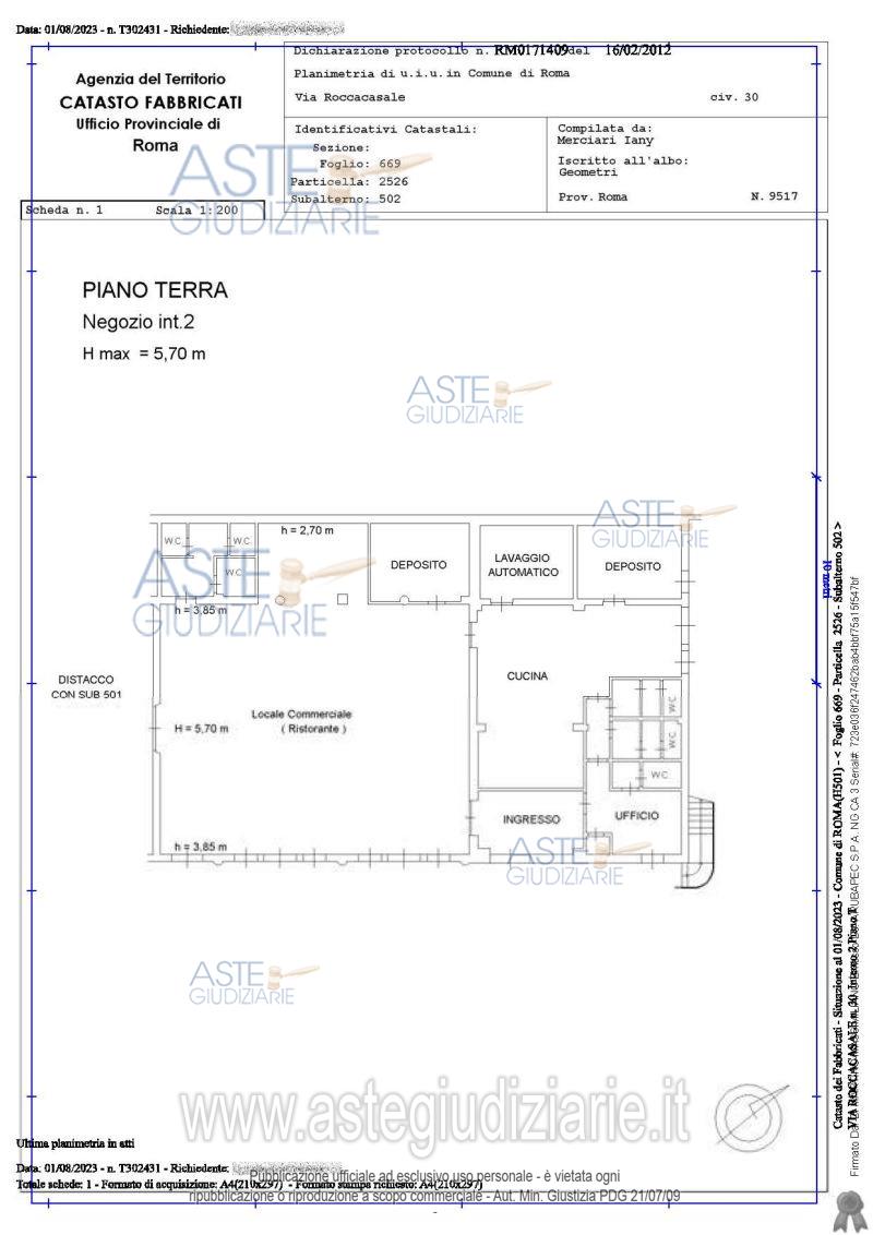Vendita all'asta Senza incanto, con gara telematica asincrona - LOTTO UNICO: BENE 1 - unità immobiliare, piano T censita al Catasto Fabbricati al foglio 669, part. 2526, sub. 501, cat. D/8; BENE 2 - unità immobiliare, piano T censita al Catasto Fabbricati al foglio 669, part. 2526, sub. 502, cat. D/8, rendita Euro 8.376,00; BENE 3 - unità immobiliare primo piano censita al foglio 669, particella 2526, sub. 510, cat. D/8 rendita Euro 2.948,00. Alle 3 unità immobiliari è compresa area antistante comune a tutti e tre i beni, BCNC censito al al CF al Fg 669 part 2526 sub. 509. Prezzo base € 560.000,00 (offerta minima € 420.000,00). Data inizio operazioni di vendita: 10/03/2026 ore 15:00. Giudice Bianca Maria Ferramosca. Professionista delegato alla vendita Avv. Rosina Aiello. Custode Giudiziario I.V.G Di Roma S.R.L. Istituto Vendite Giudiziarie - Email "pubblicita@ivgroma.it"; Tel. 06 83751500. Rif. Tribunale di Roma - Esecuzione immobiliare post legge 80 n. 781/2022