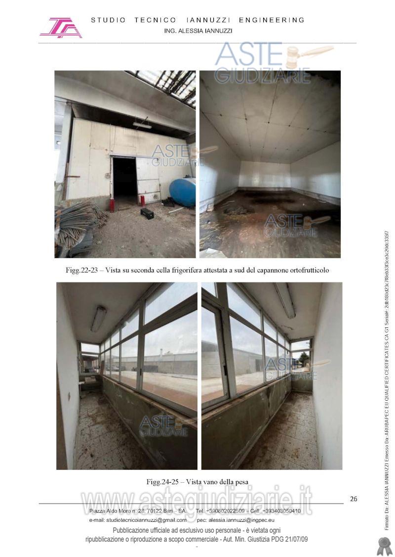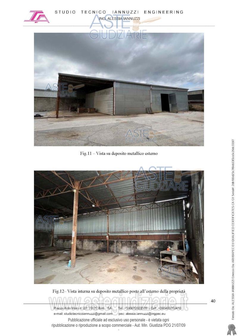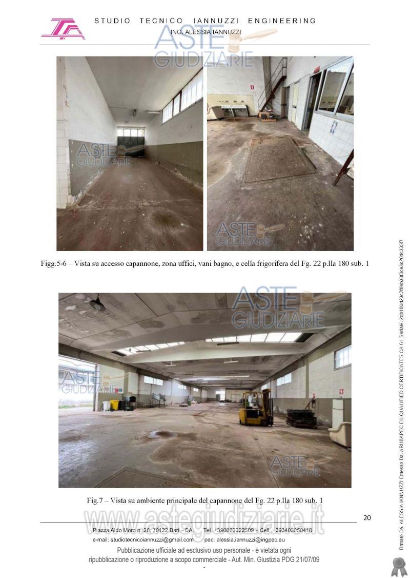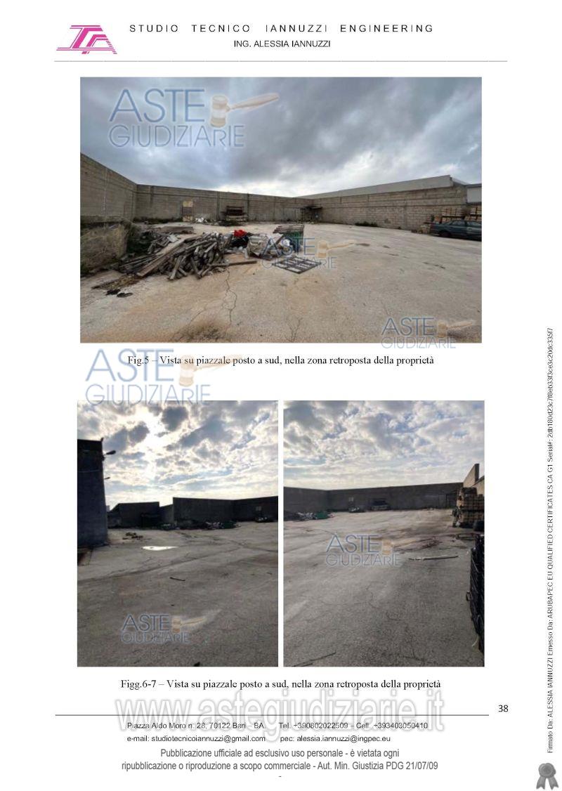 Vendita all'asta Senza incanto, con gara telematica asincrona - LOTTO 2: Piena proprietà del capannone artigianale per il commercio ortofrutticolo con annessi uffici ed abitazione e relative pertinenze coperte e scoperte, ricadente in zona PIP. Retrostante terreno ricadente in Zona "D2 Zona produttiva insediamenti di tipo artigianale, piccola e media impresa”, della superficie catastale di are quarantacinque e centiare cinquantadue circa. Prezzo base € 625.000,00 (offerta minima € 468.750,00). Data inizio operazioni di vendita: 20/05/2026 ore 11:00. Giudice Dott. Antonio Ruffino. Professionista delegato alla vendita Dott. Francesco Lanera - Email "francescolanera@studiolanera.it". Custode Giudiziario Dott. Francesco Lanera - Email "francescolanera@studiolanera.it". Rif. Tribunale di Bari - Espropriazione immobiliare (cartabia) n. 432/2024