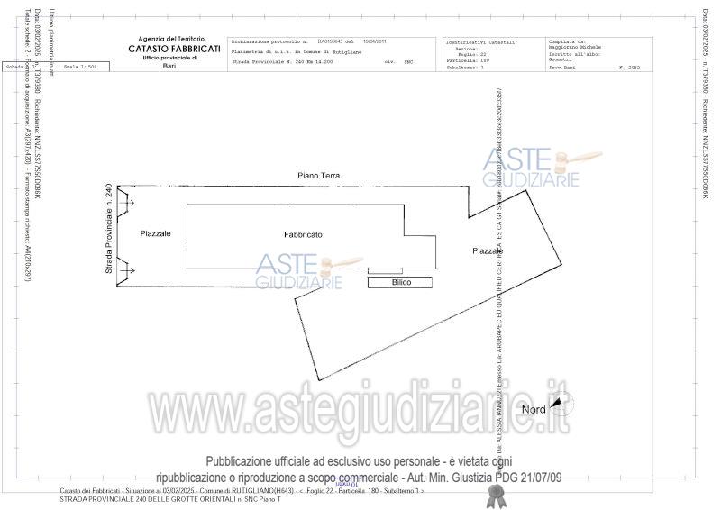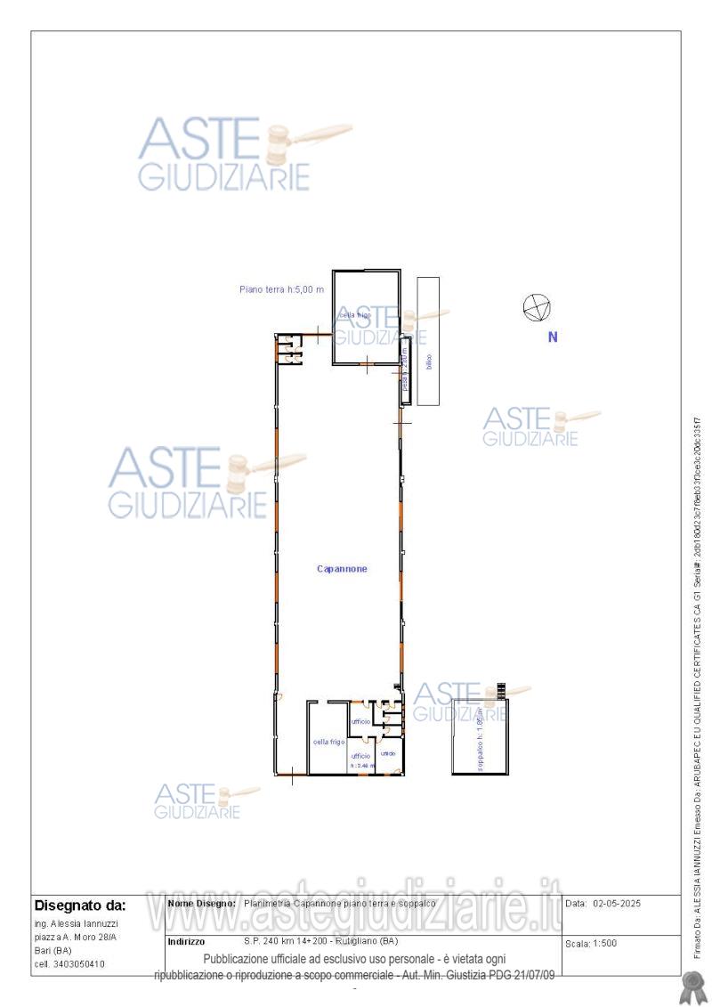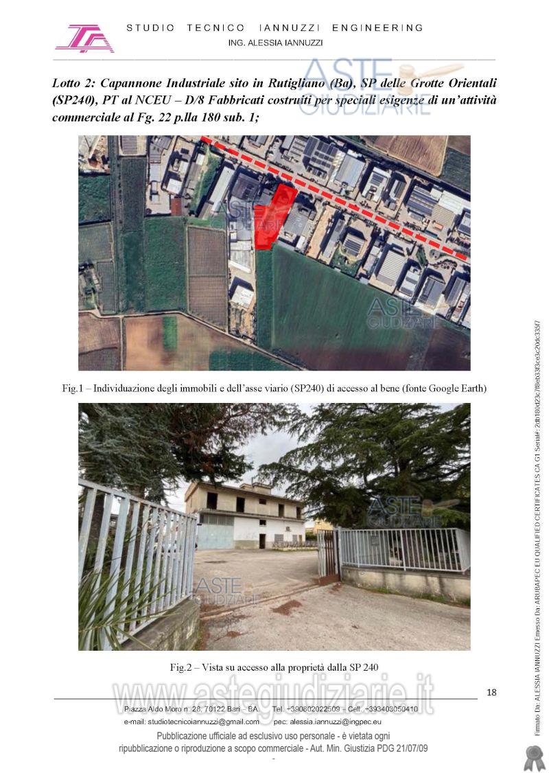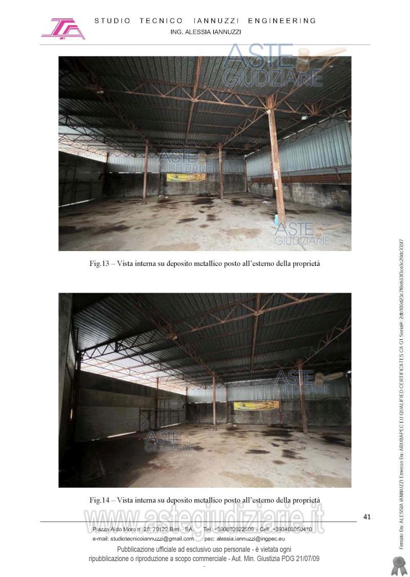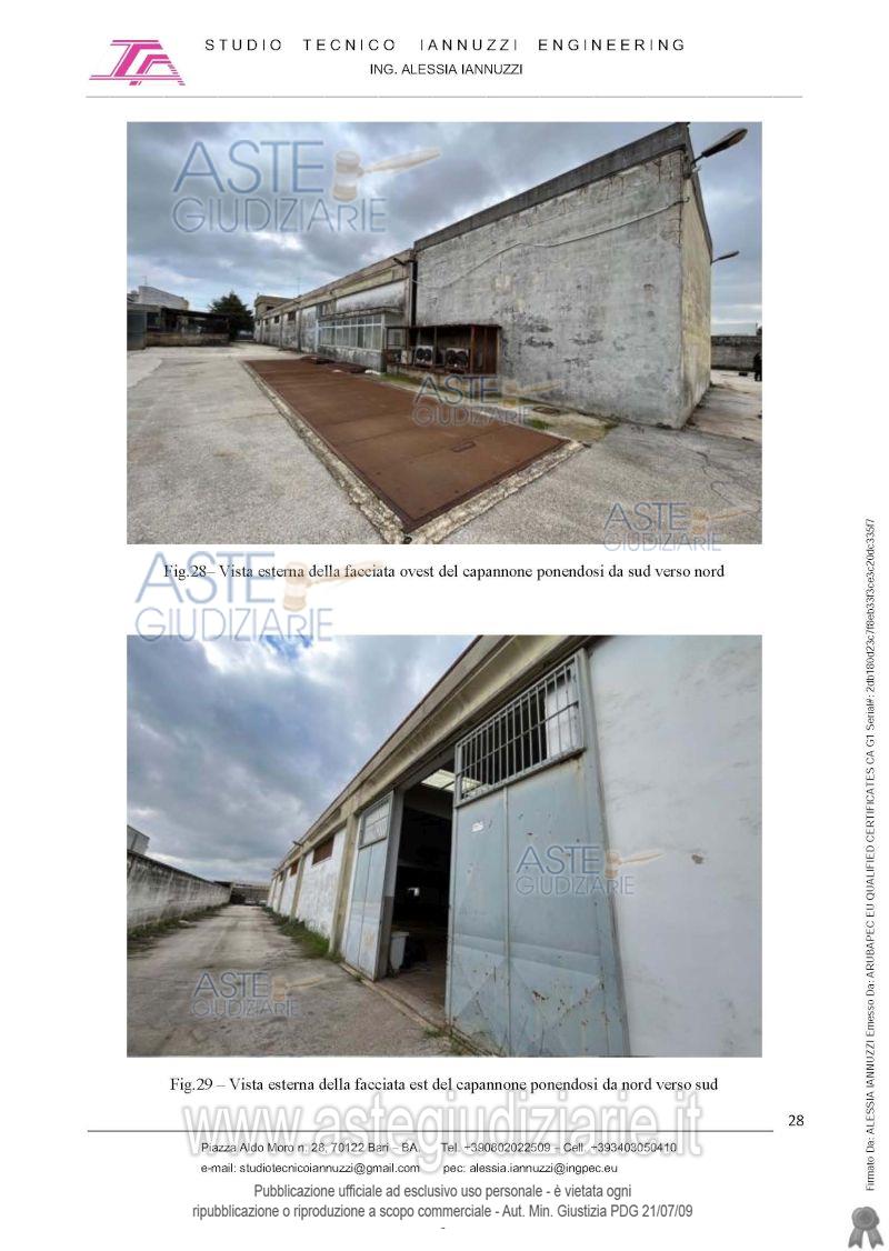 Vendita all'asta Senza incanto, con gara telematica asincrona - LOTTO 2: Piena proprietà del capannone artigianale per il commercio ortofrutticolo con annessi uffici ed abitazione e relative pertinenze coperte e scoperte, ricadente in zona PIP. Retrostante terreno ricadente in Zona "D2 Zona produttiva insediamenti di tipo artigianale, piccola e media impresa”, della superficie catastale di are quarantacinque e centiare cinquantadue circa. Prezzo base € 625.000,00 (offerta minima € 468.750,00). Data inizio operazioni di vendita: 20/05/2026 ore 11:00. Giudice Dott. Antonio Ruffino. Professionista delegato alla vendita Dott. Francesco Lanera - Email "francescolanera@studiolanera.it". Custode Giudiziario Dott. Francesco Lanera - Email "francescolanera@studiolanera.it". Rif. Tribunale di Bari - Espropriazione immobiliare (cartabia) n. 432/2024