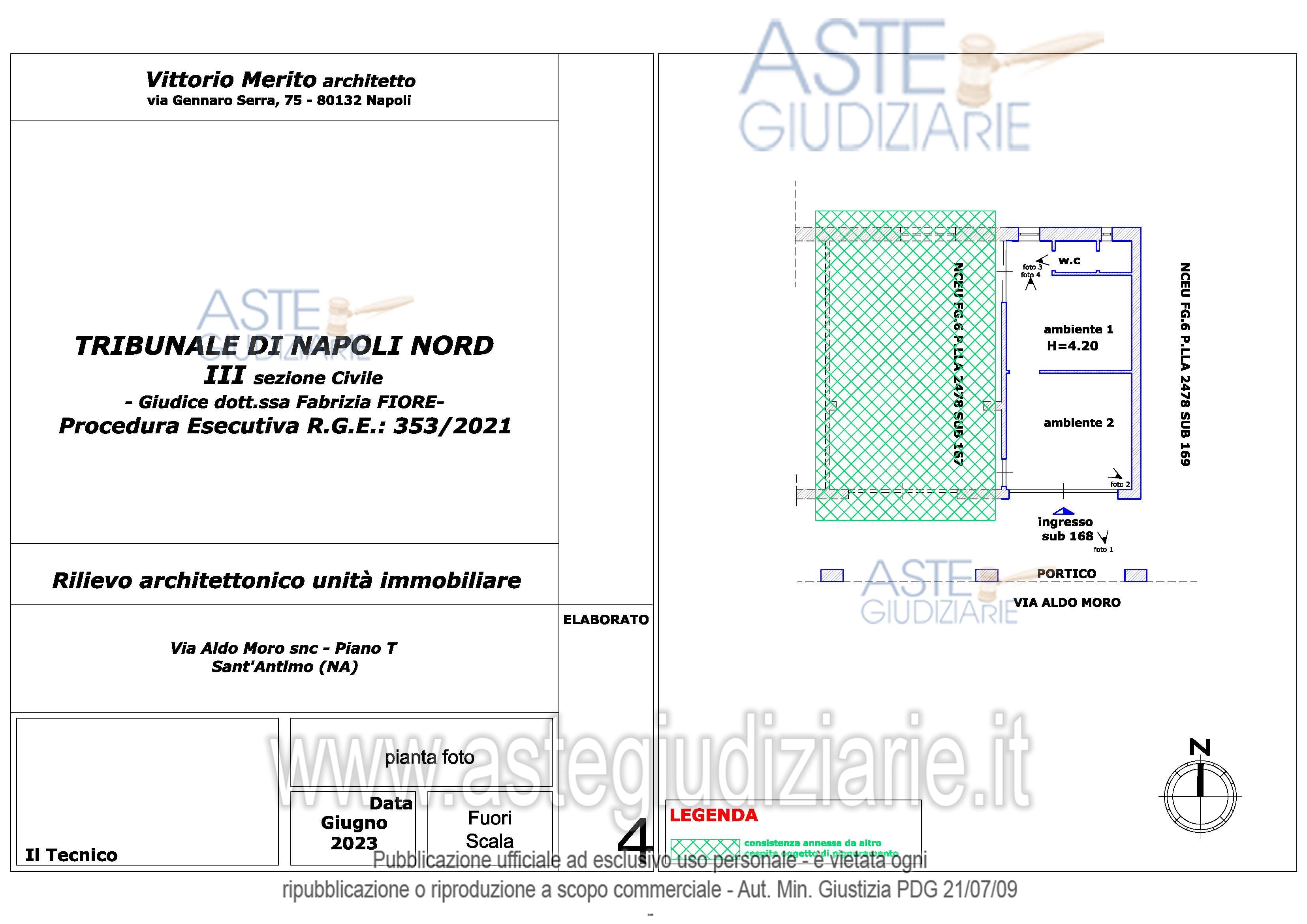 Vendita all'asta Senza incanto, con gara telematica asincrona - LOTTO 4: Locale commerciali (BENE 1 e Bene 2) , oggetto di pignoramento, sono ubicati nel Comune di Sant’Antimo (Na) a via Aldo Moro snc, piano T – “Parco Omissis”. Il suddetto bene confina a est con androne condominiale, a sud con via Aldo Moro e a ovest con bene censito al NCEU del Comune di Sant’Antimo al foglio 6 part. 2478 sub 168, a sud con portico su via Aldo Moro ea ovest con bene censito al NCEU del Comune di Sant’Antimo al foglio 6 part. 2478 sub 166 salvo altri, trattasi di due locali fusi. Prezzo base € 76.300,00 (offerta minima € 57.225,00). Data inizio operazioni di vendita: 27/11/2025 ore 16:00. Custode Giudiziario Dott. Francesco Russo - Email "studiocasillorusso@libero.it"; Tel. 0815404454. Rif. Tribunale di Napoli Nord - Esecuzione immobiliare post legge 80 n. 353/2021
